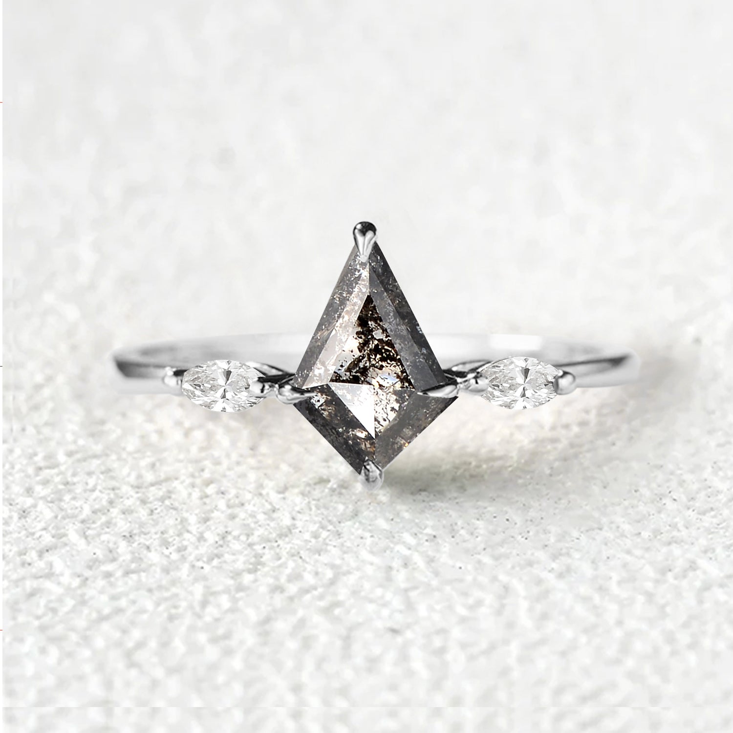 Salt and Pepper Diamonds & Marquise Moissanite Engagement Ring