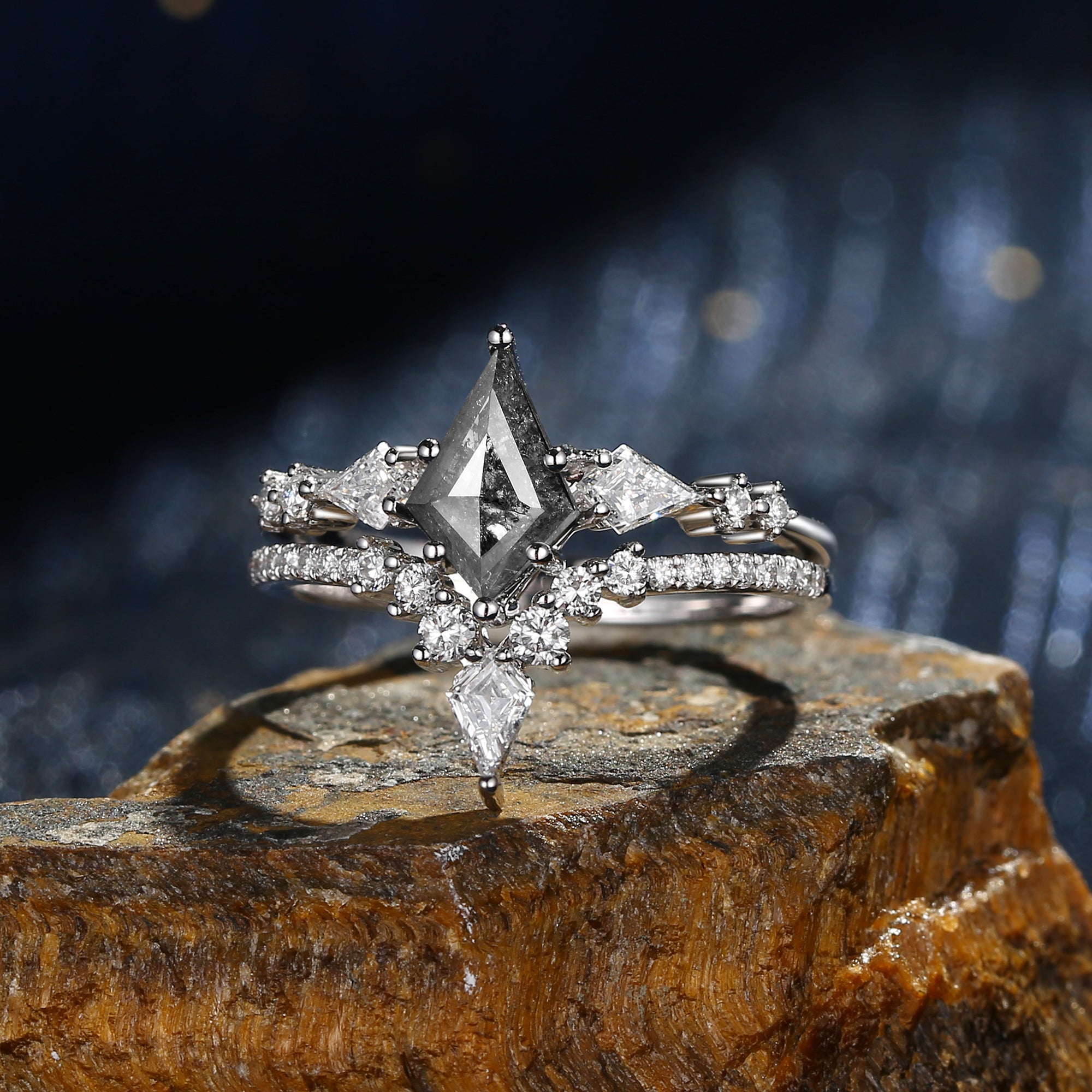 Twin Flames - Kite Salt and Pepper Diamonds Engagement Ring Set 2pcs - Zendaya