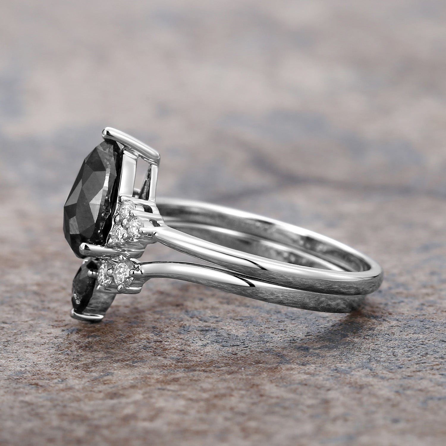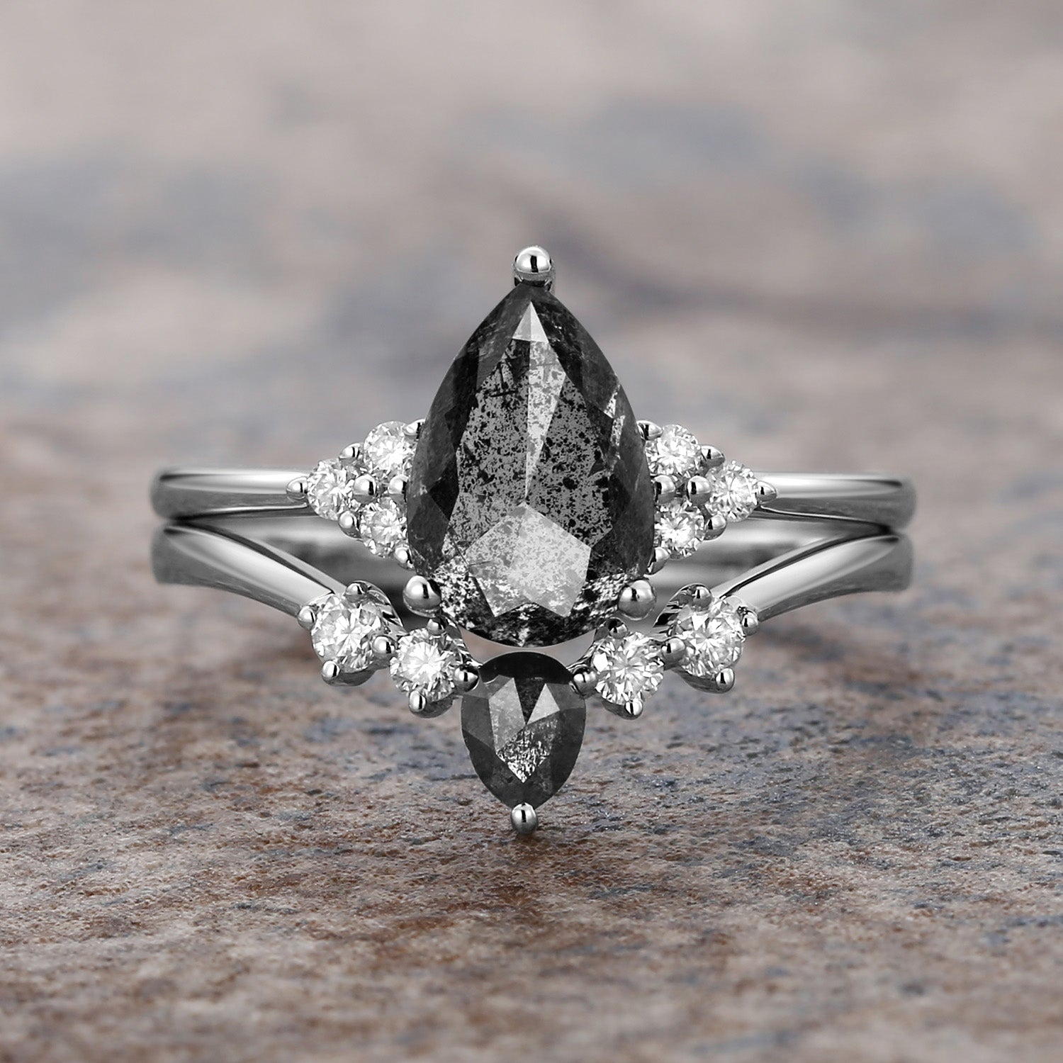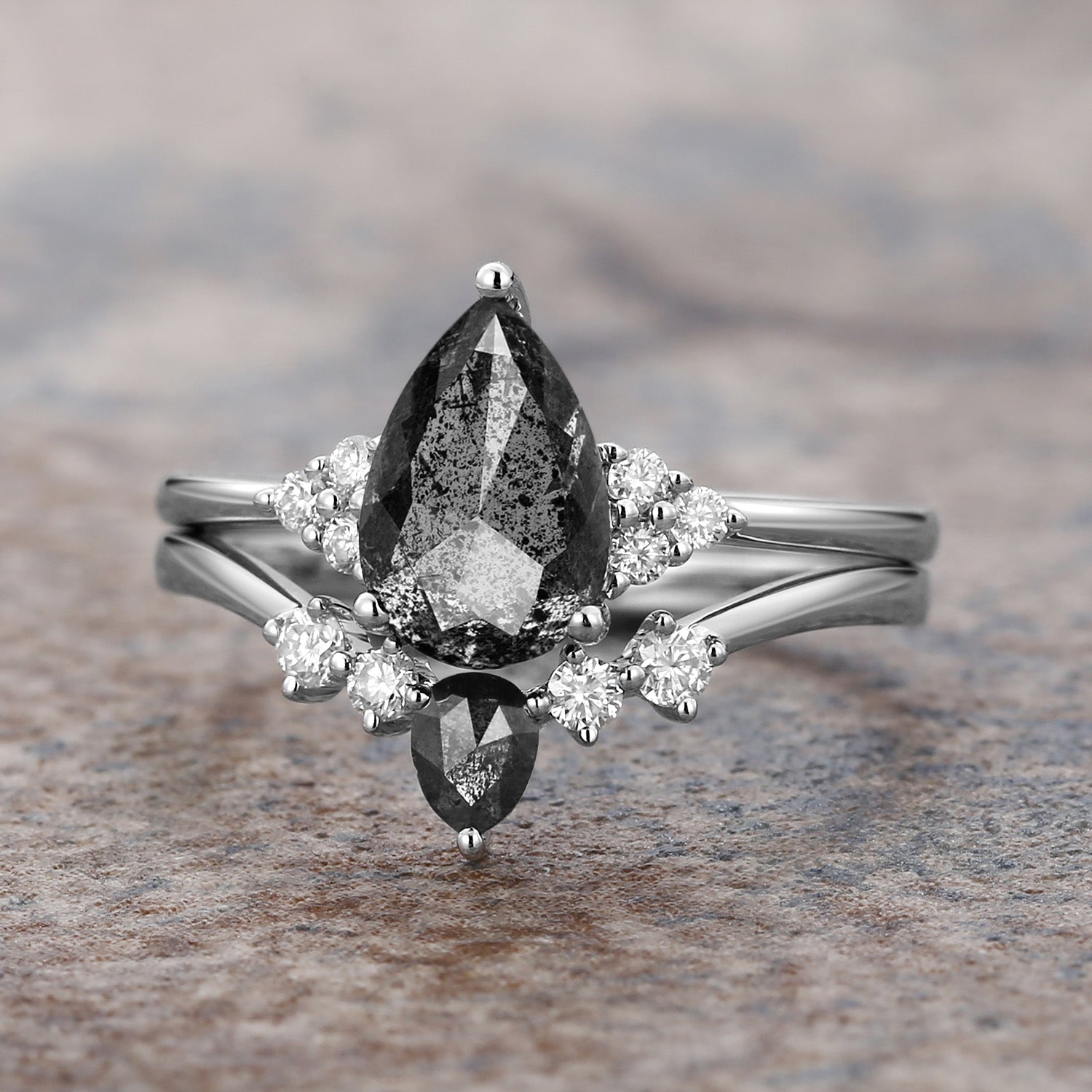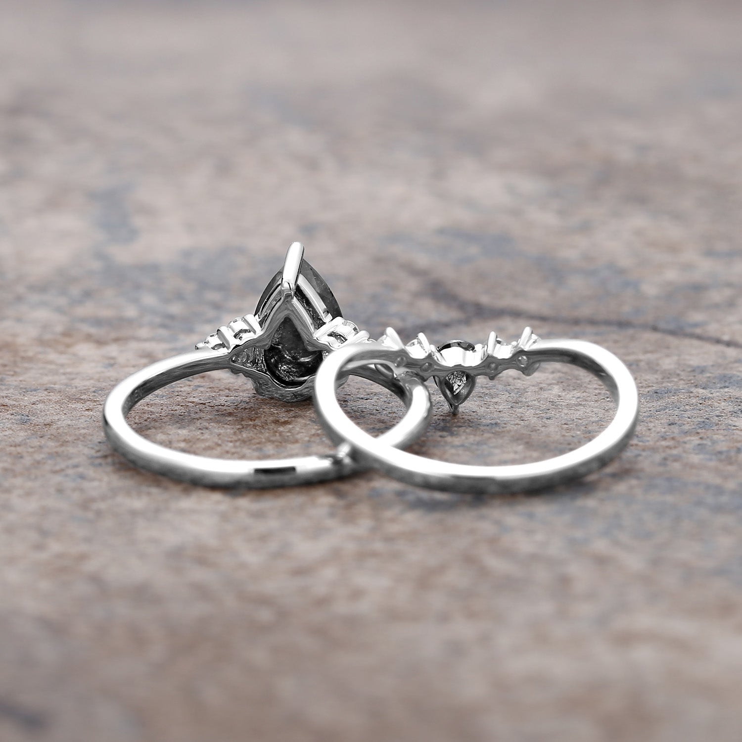 Twinning Pear Cut Salt and Pepper Diamonds Engagement Ring Sets 2pcs