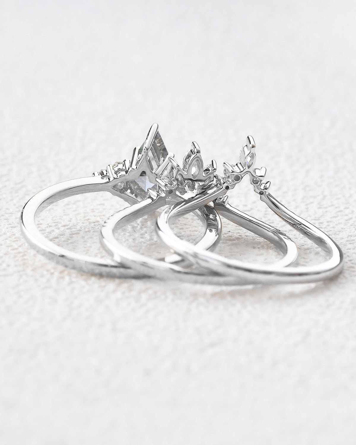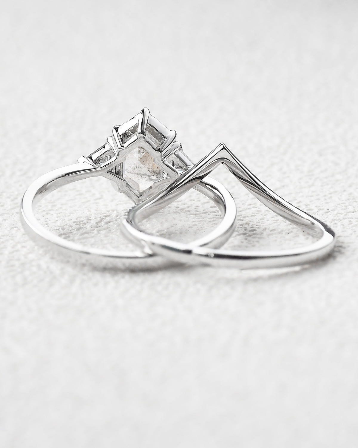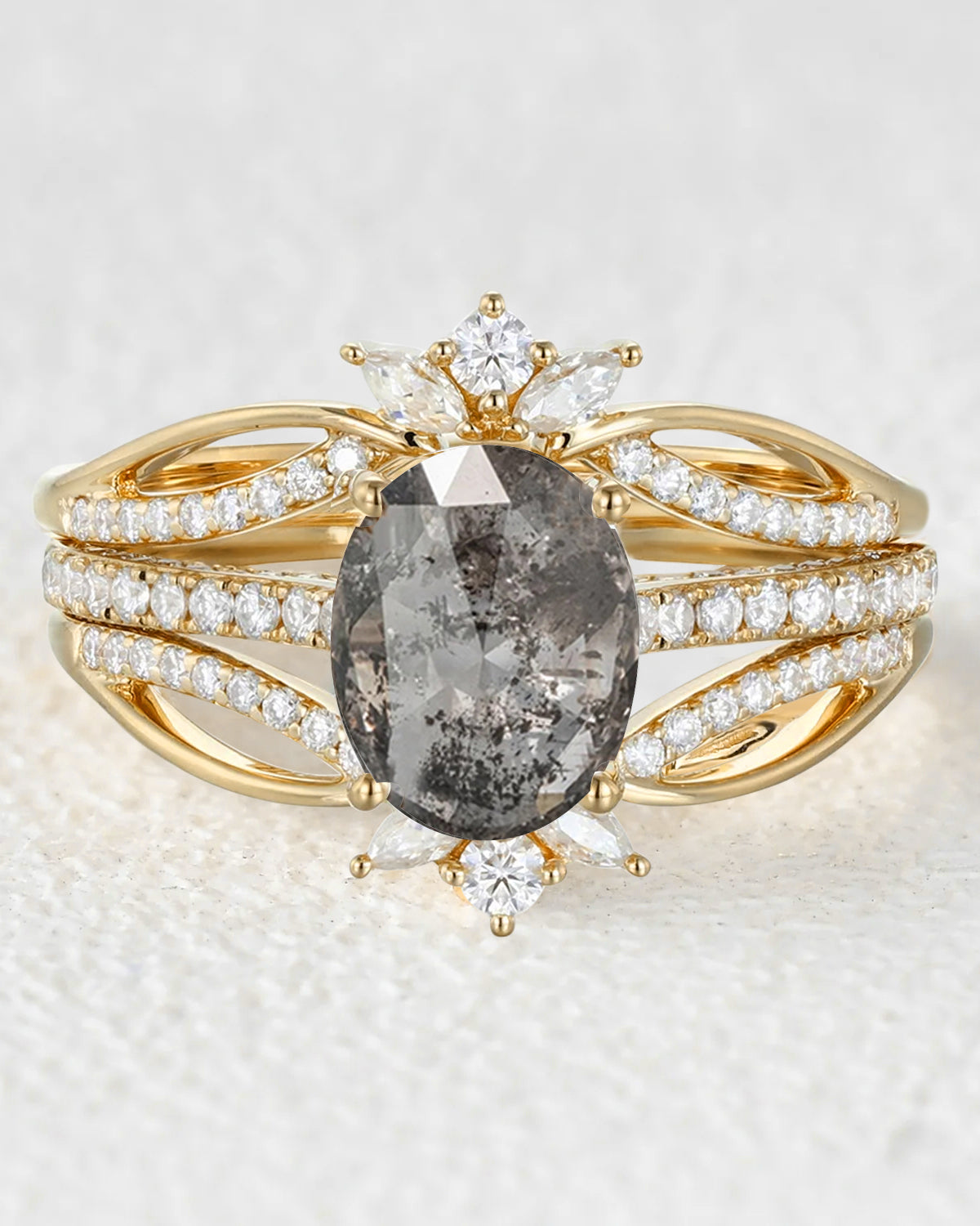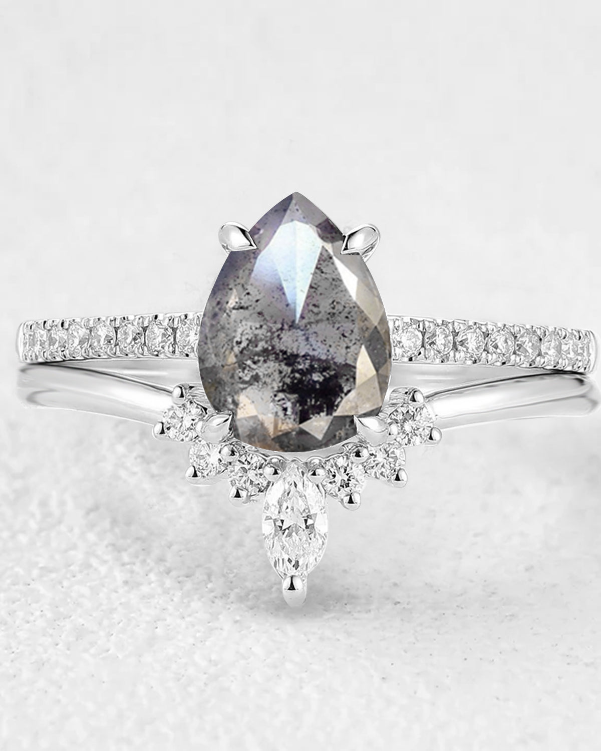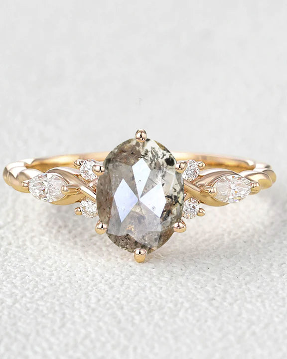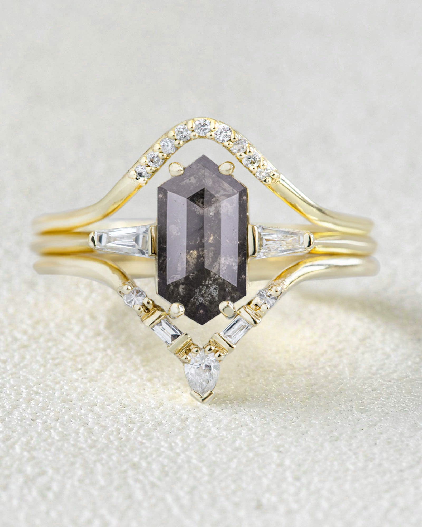 "Pepper" refers to black inclusions, while "salt" refers to white inclusions. Salt and Pepper Diamonds are typically earthy tones that go beyond pure black and white. The black inclusions inside diamonds are like the stars in the night sky. The exquisite, unique, and eclectic kite cut salt and pepper diamond engagement ring has both a vintage and modern feel. With these brilliant and special starry unique engagement rings from felicegals, you can capture the touching moments of your love and bravely pursue it.