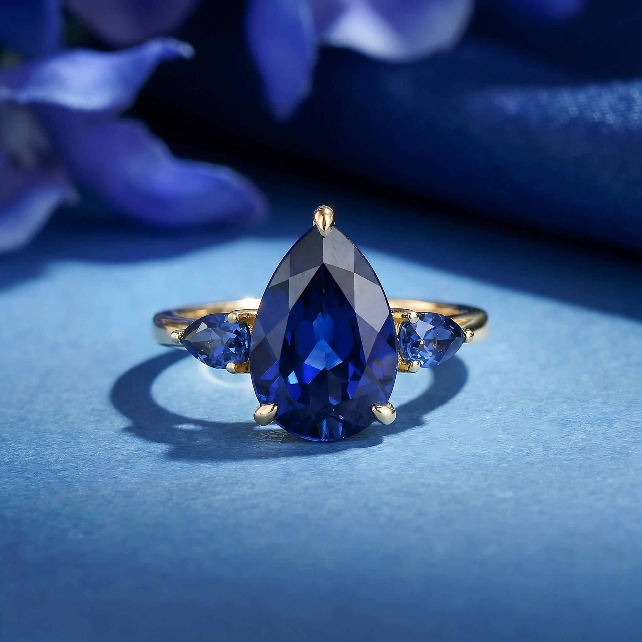 Felicegals Pear Shaped Sapphire Three-stone Ring Lab Sapphire Gold Ring Engagement Wedding Ring Anniversary Gift Birthstone Gemstones