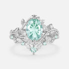 Firework Cut Oval Leafy Lab Green Sapphire Engagement Ring Set 2pcs - Lilac