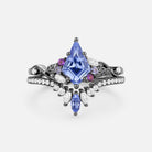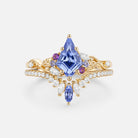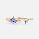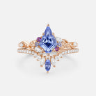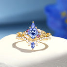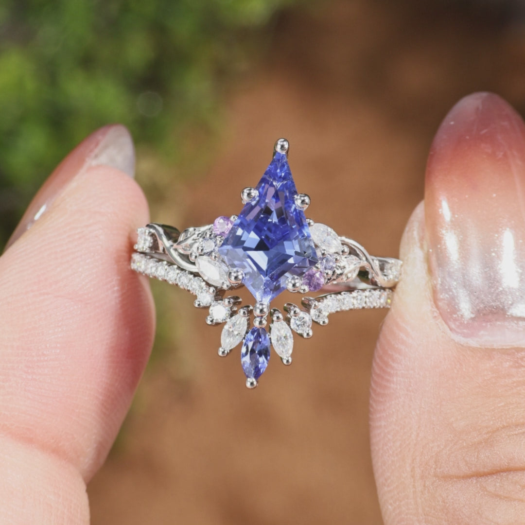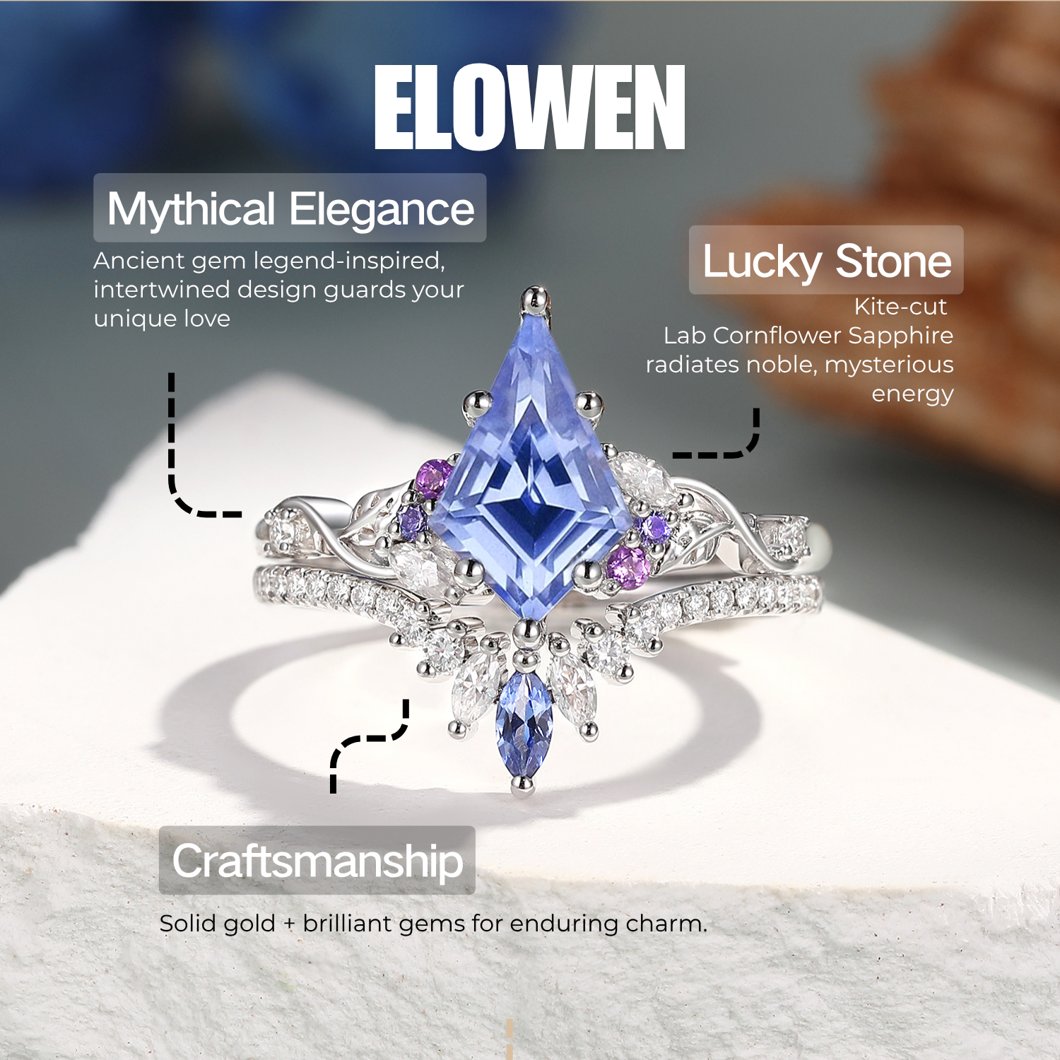Kite Lab Cornflower Sapphire Leafy Engagement Ring Set 2pcs - Elowen
