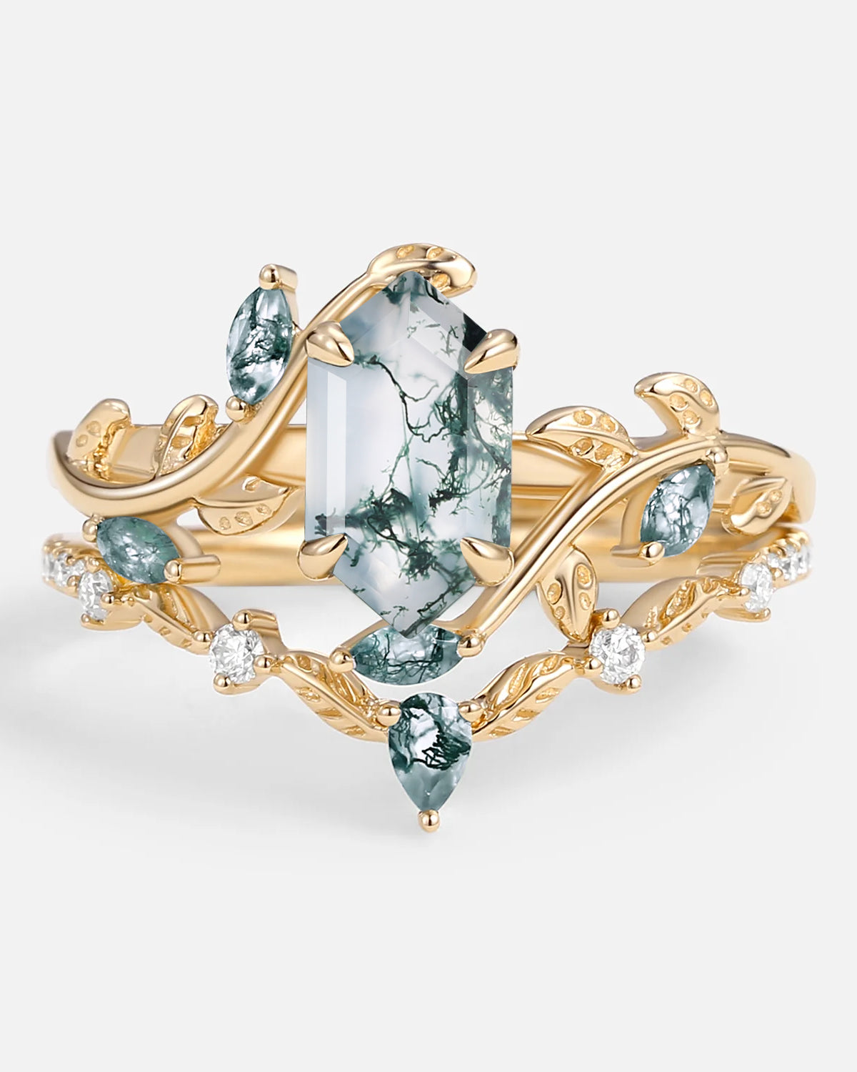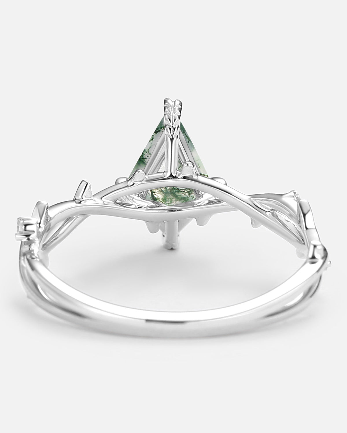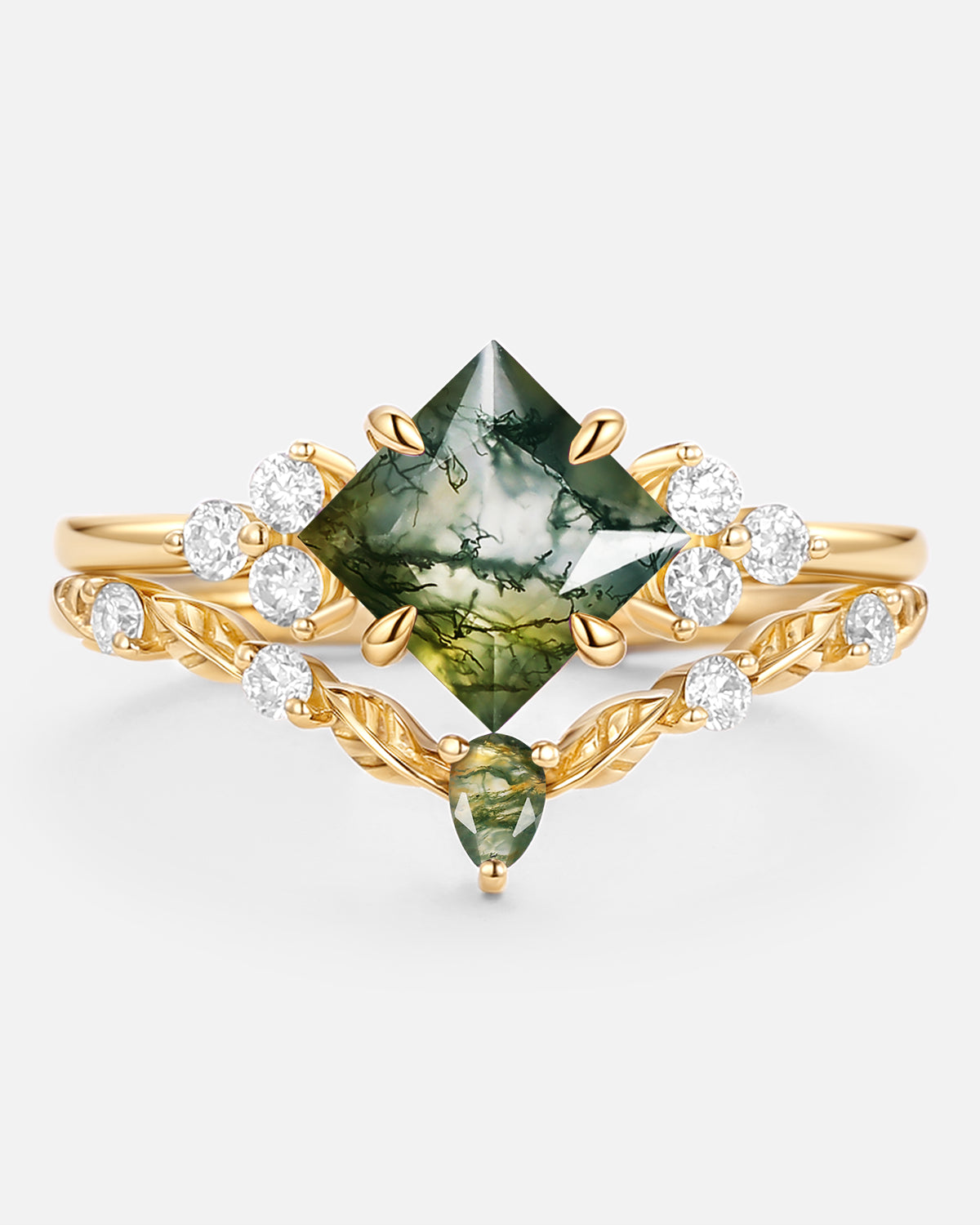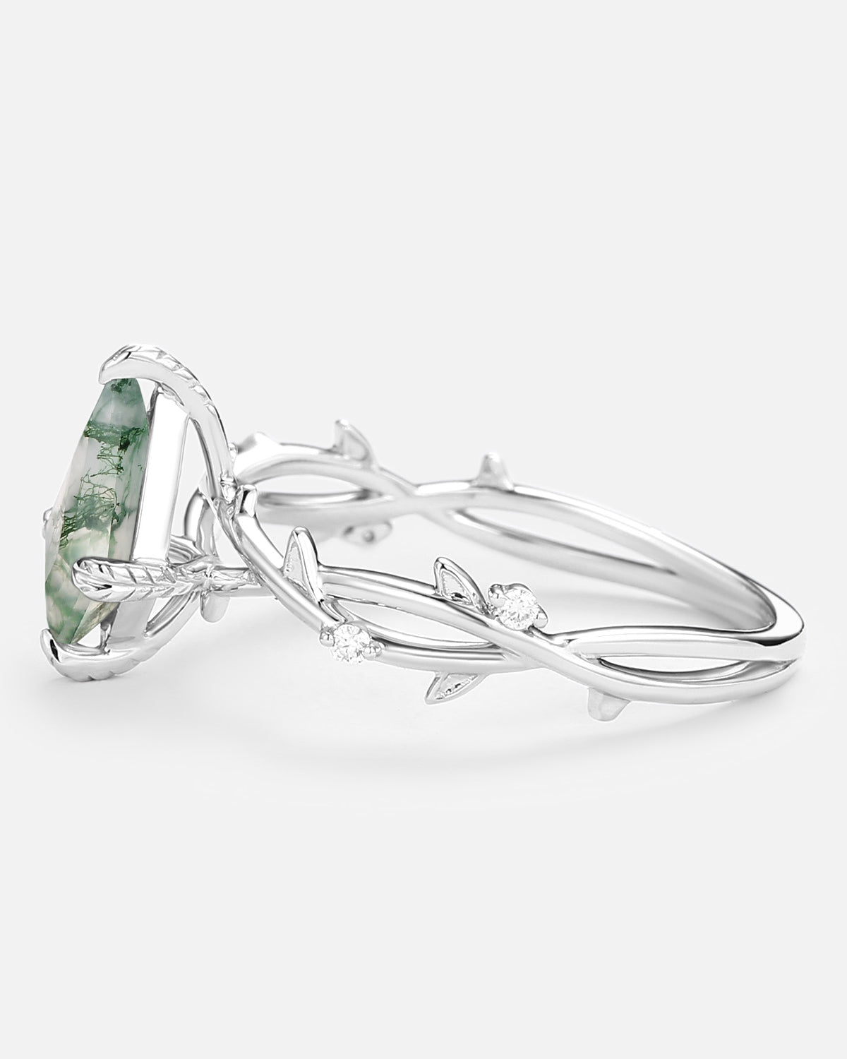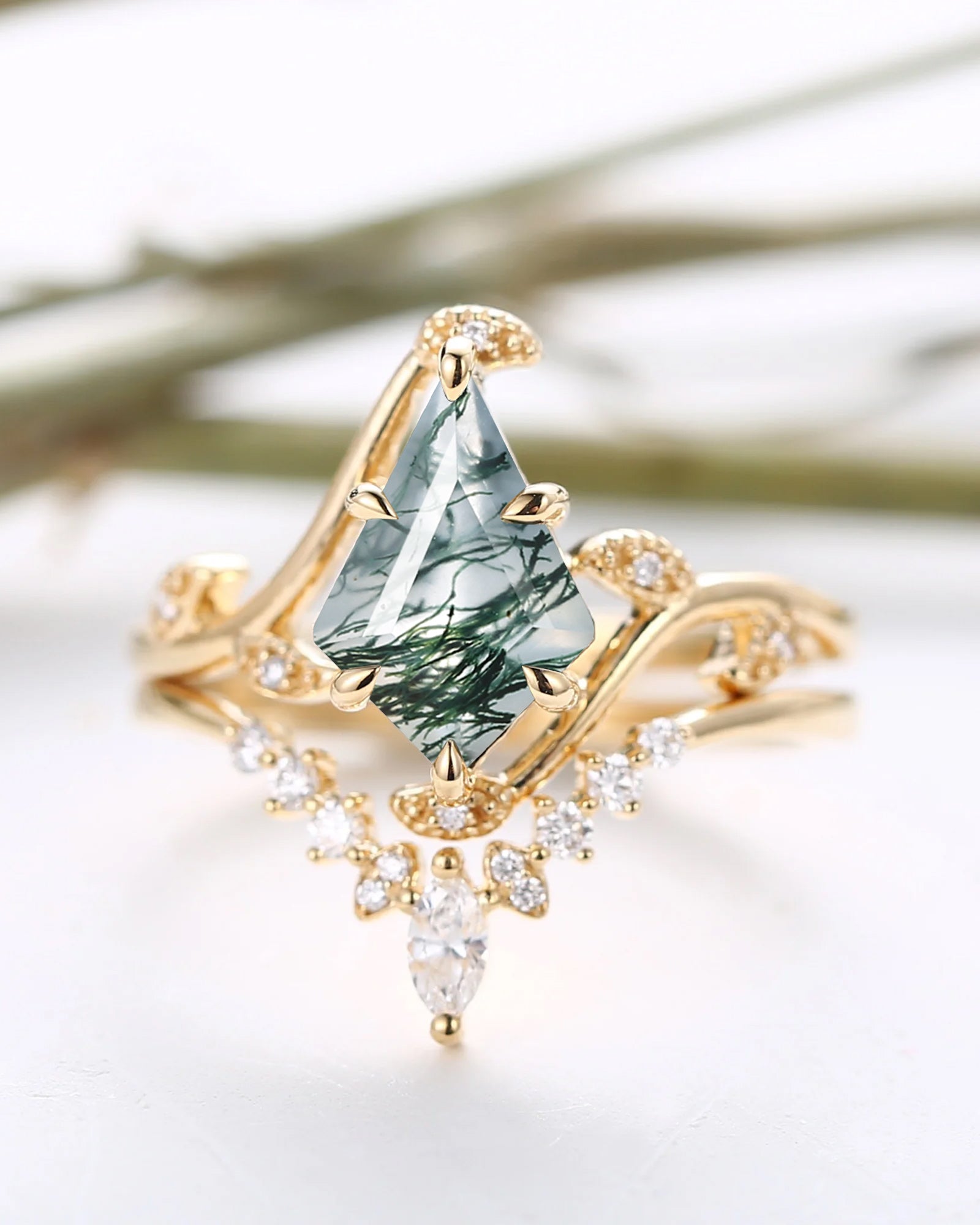Spring green, summer transparency, autumn yellow, winter milky haze—our moss agate engagement rings fit each season’s hue. These precious chapters in these engagement rings tell your love story daily.