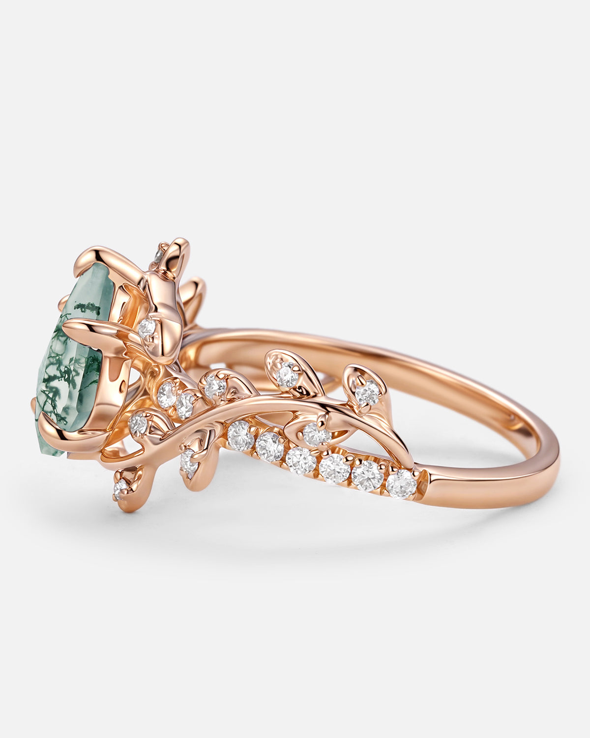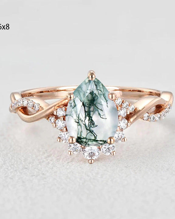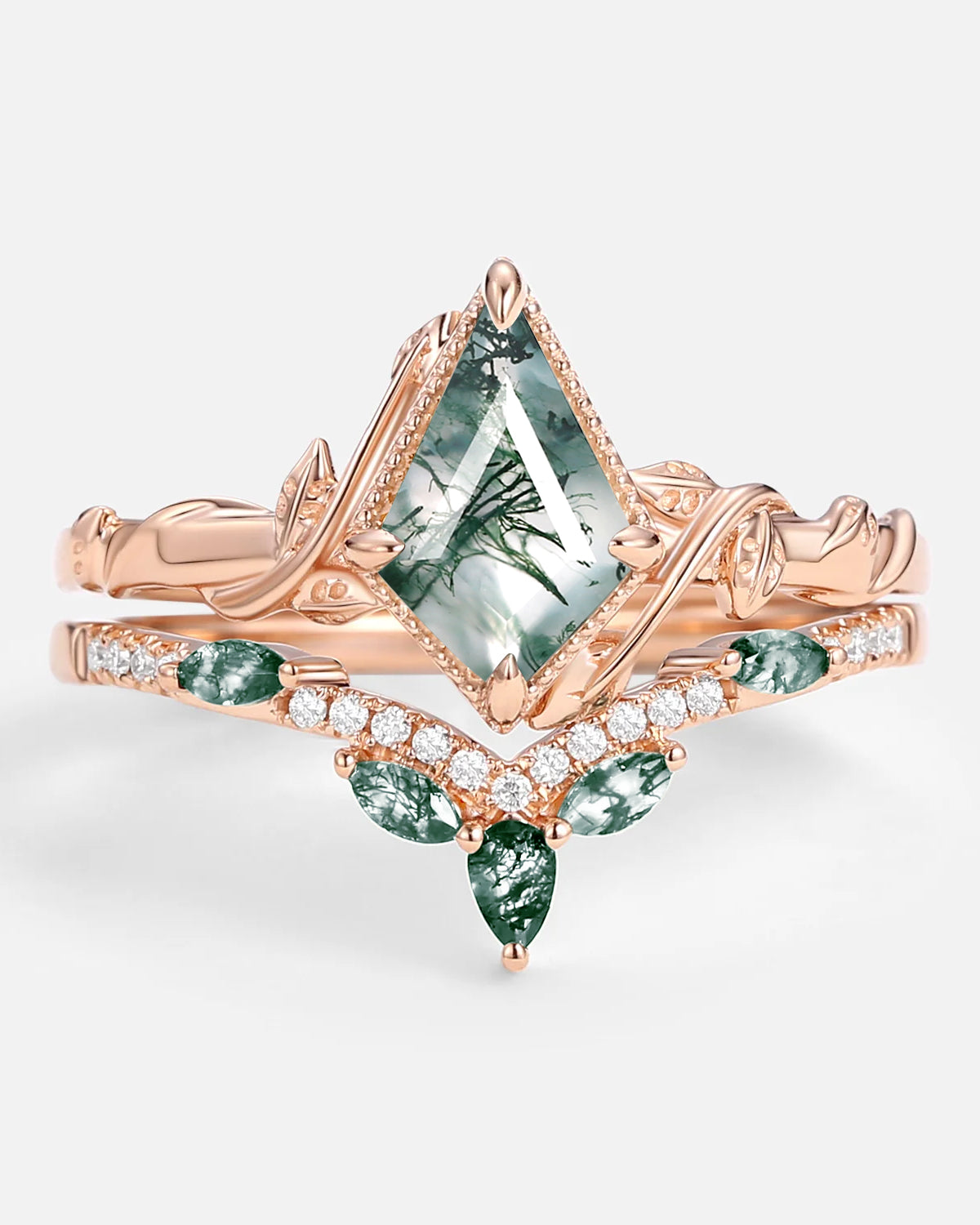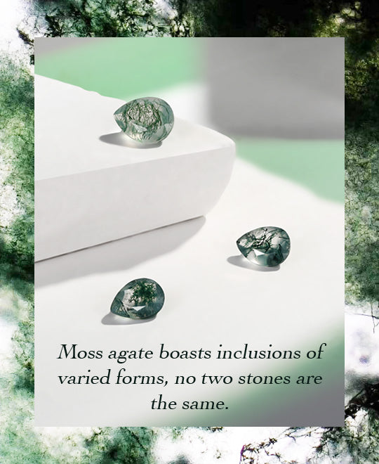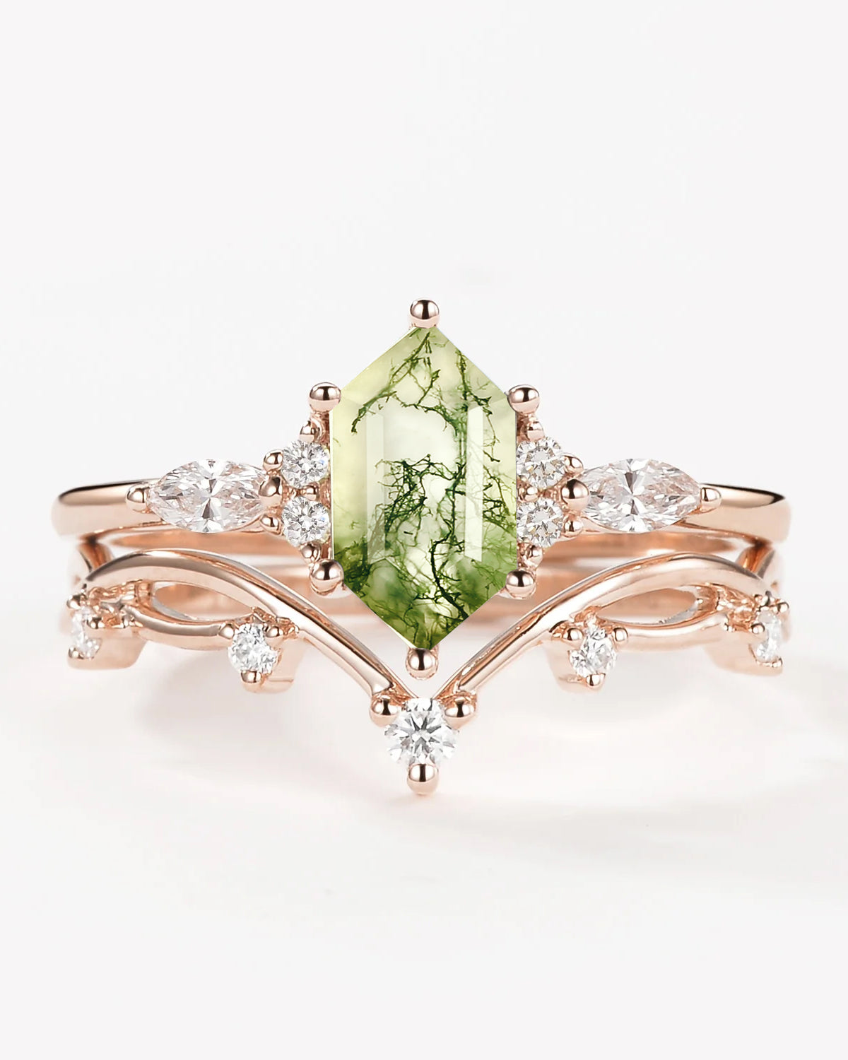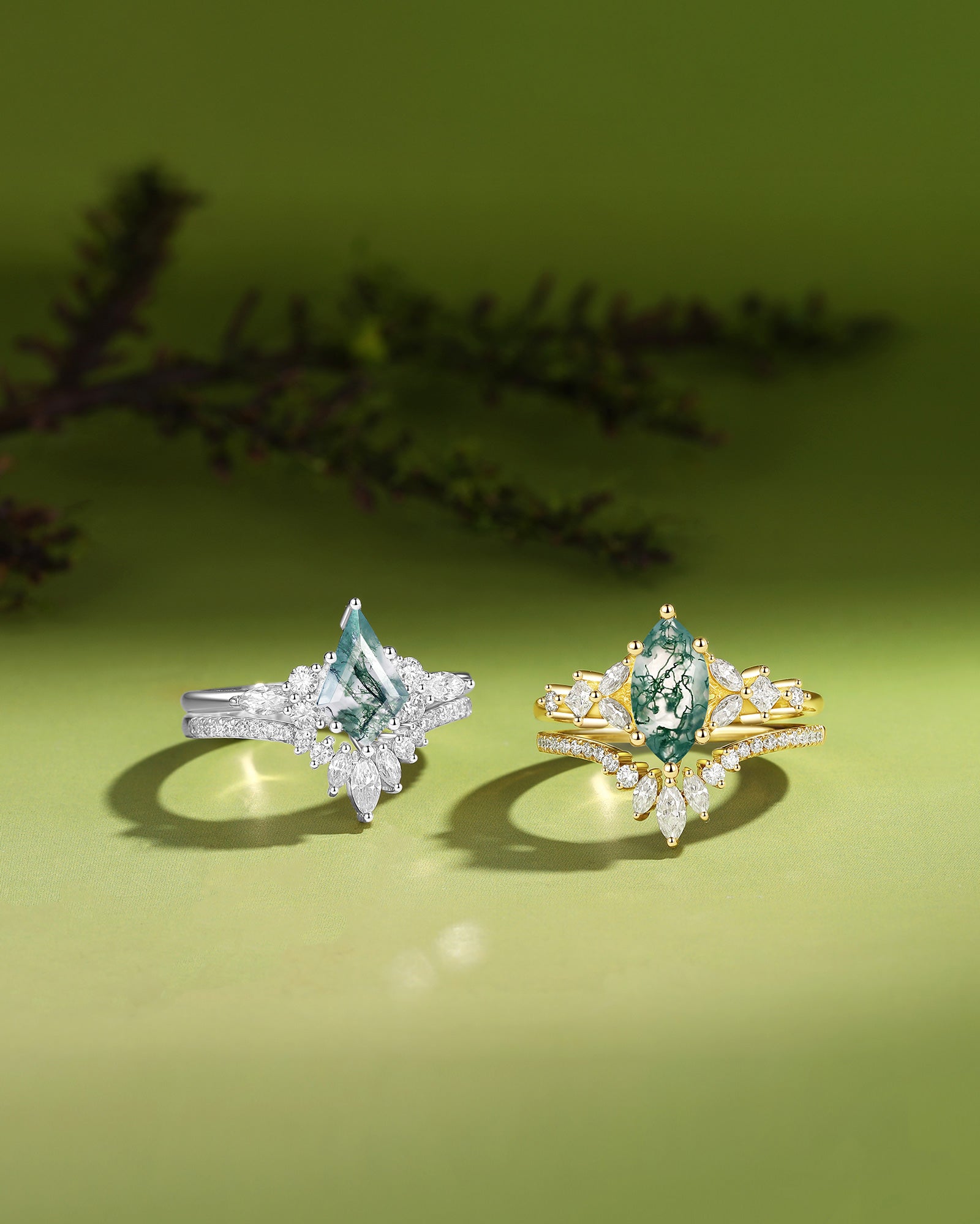 Spring green, summer transparency, autumn yellow, winter milky haze—our moss agate engagement rings fit each season’s hue. These precious chapters in these engagement rings tell your love story daily.