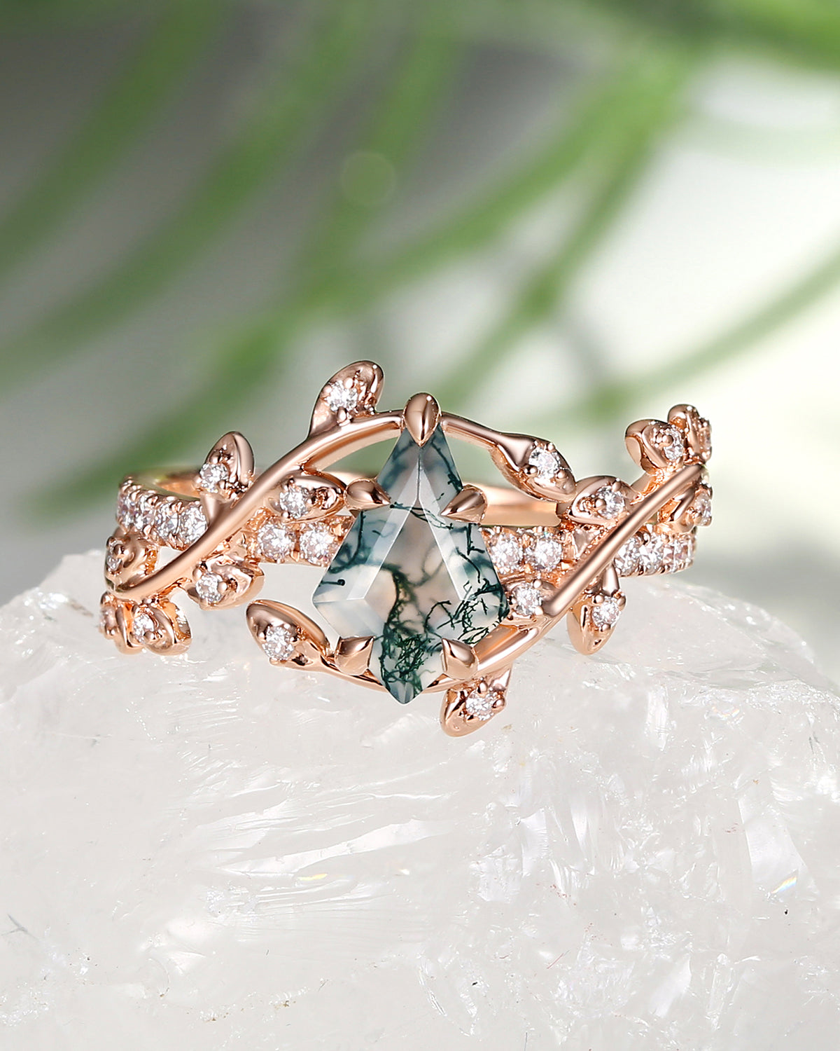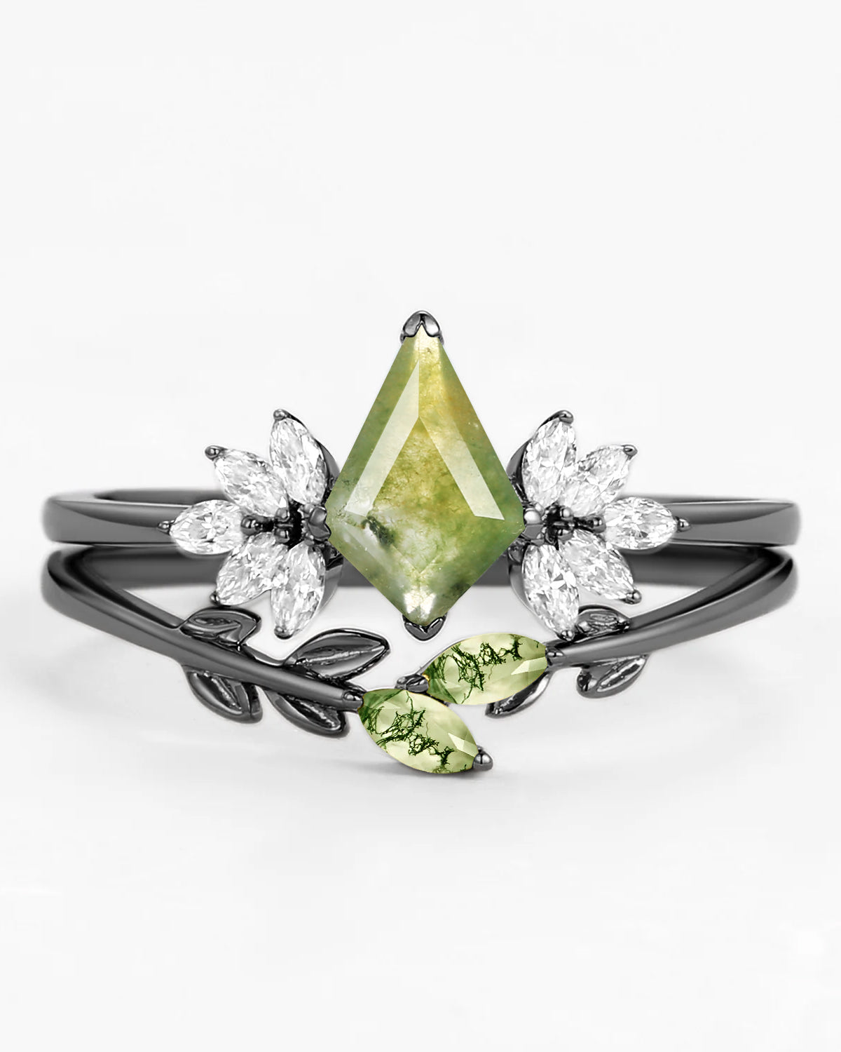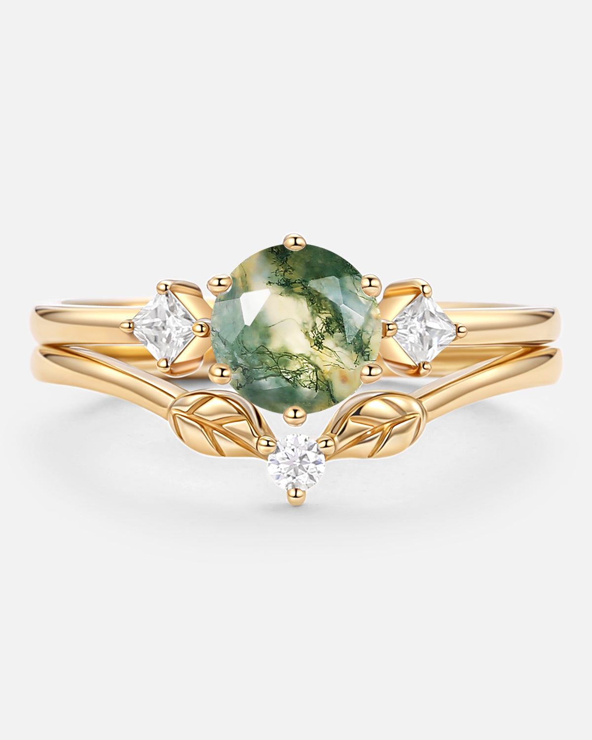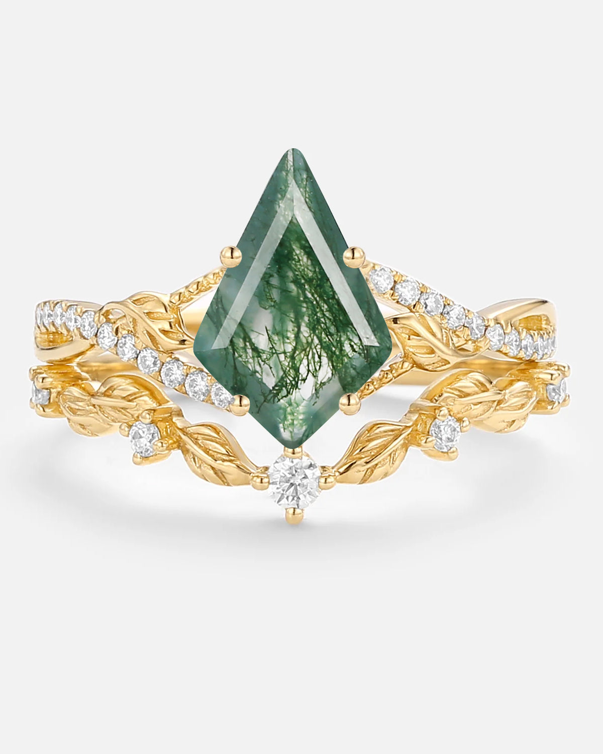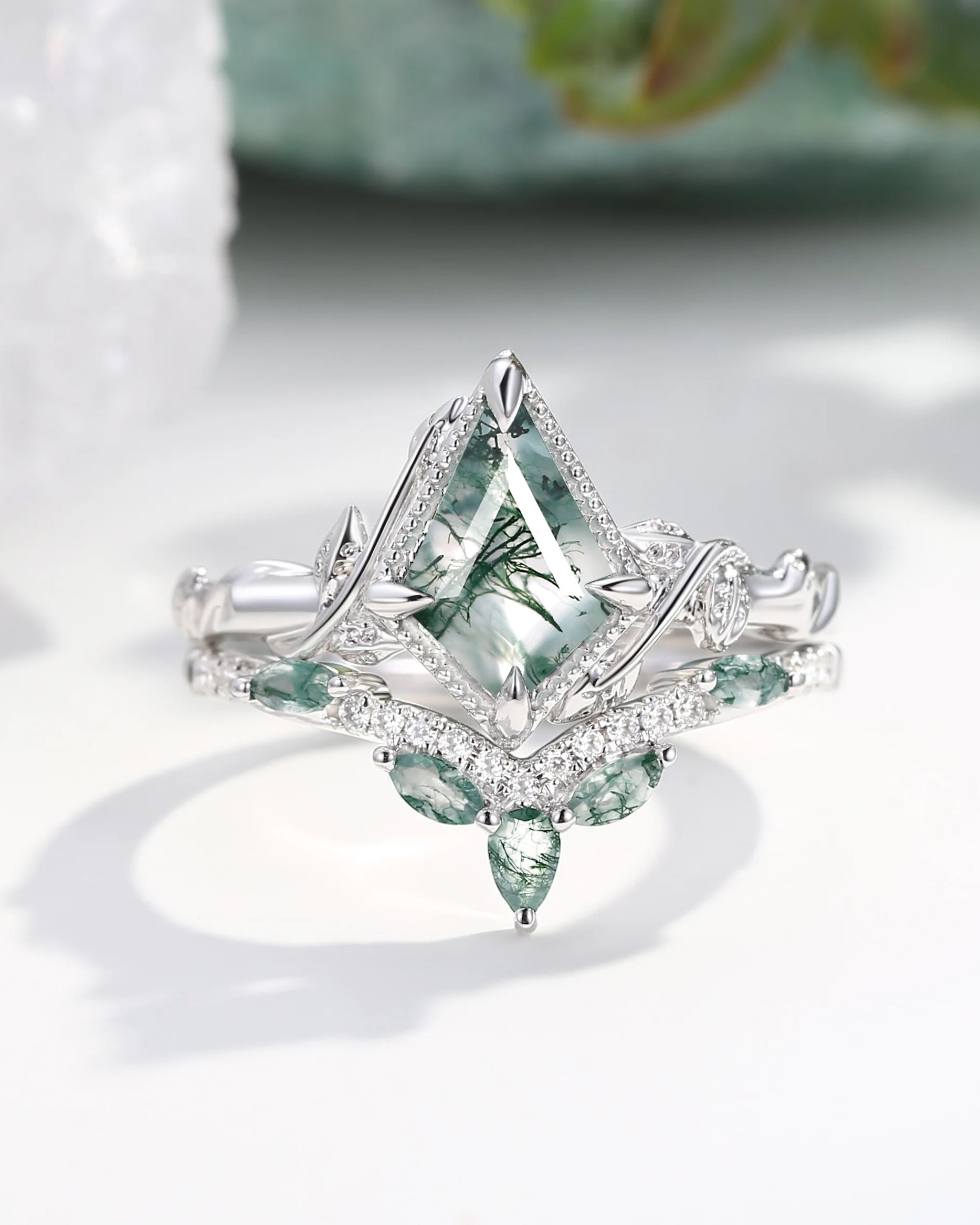 Spring green, summer transparency, autumn yellow, winter milky haze—our moss agate engagement rings fit each season’s hue. These precious chapters in these engagement rings tell your love story daily.