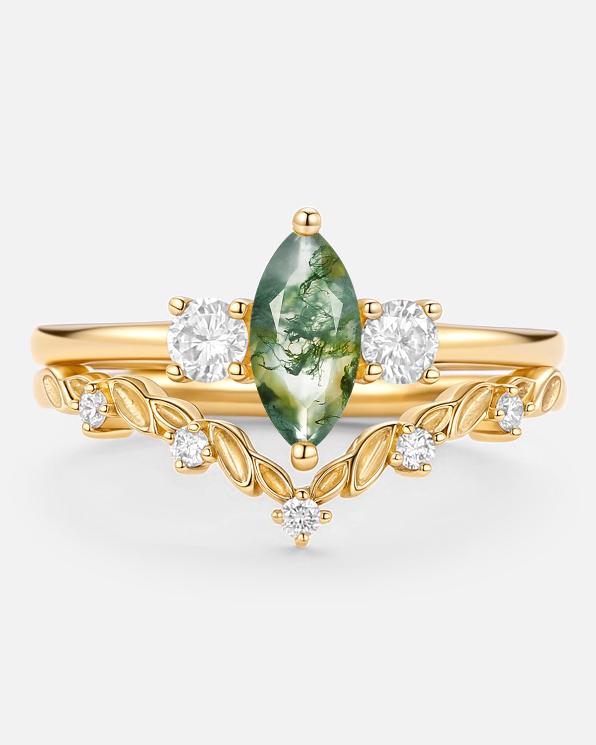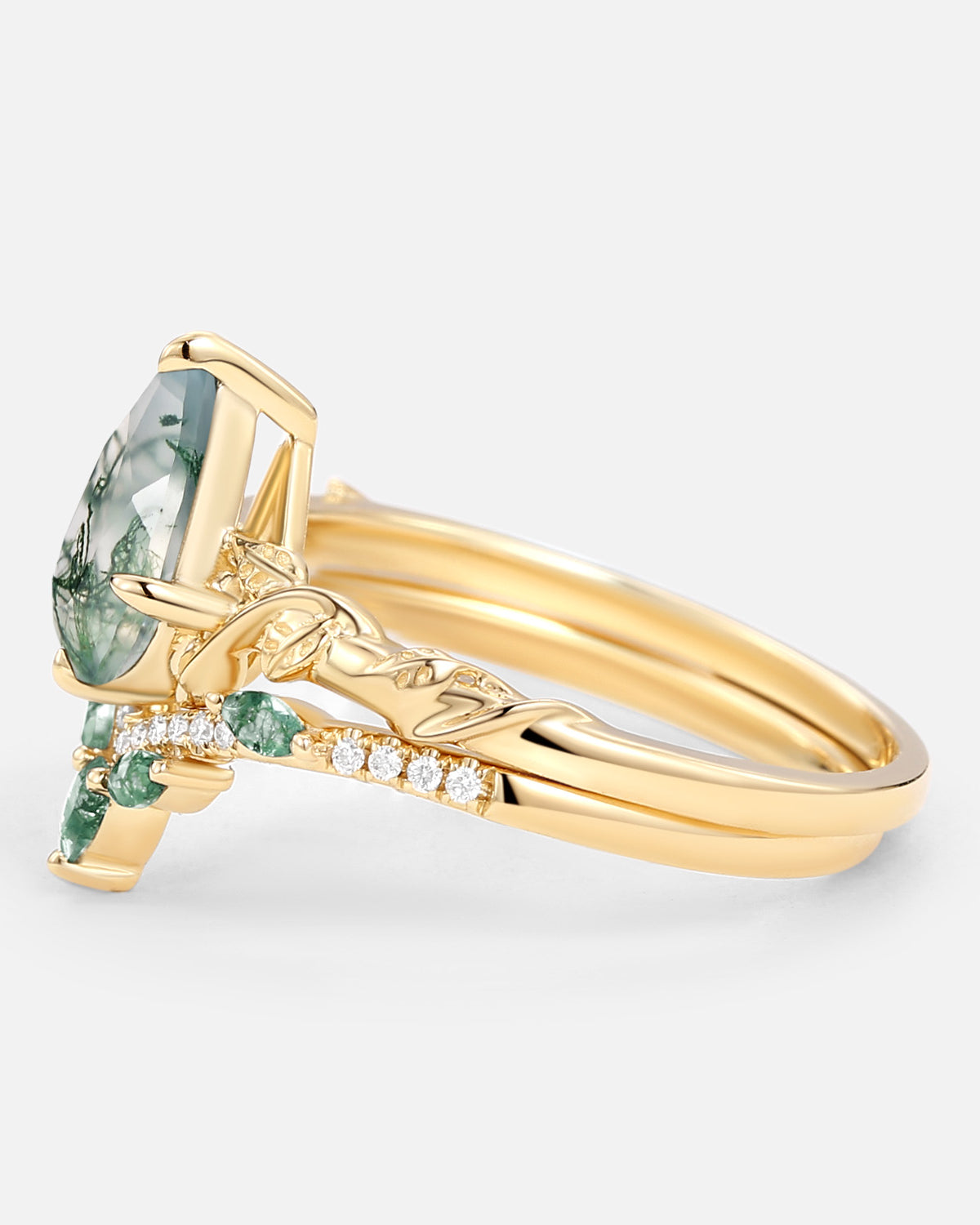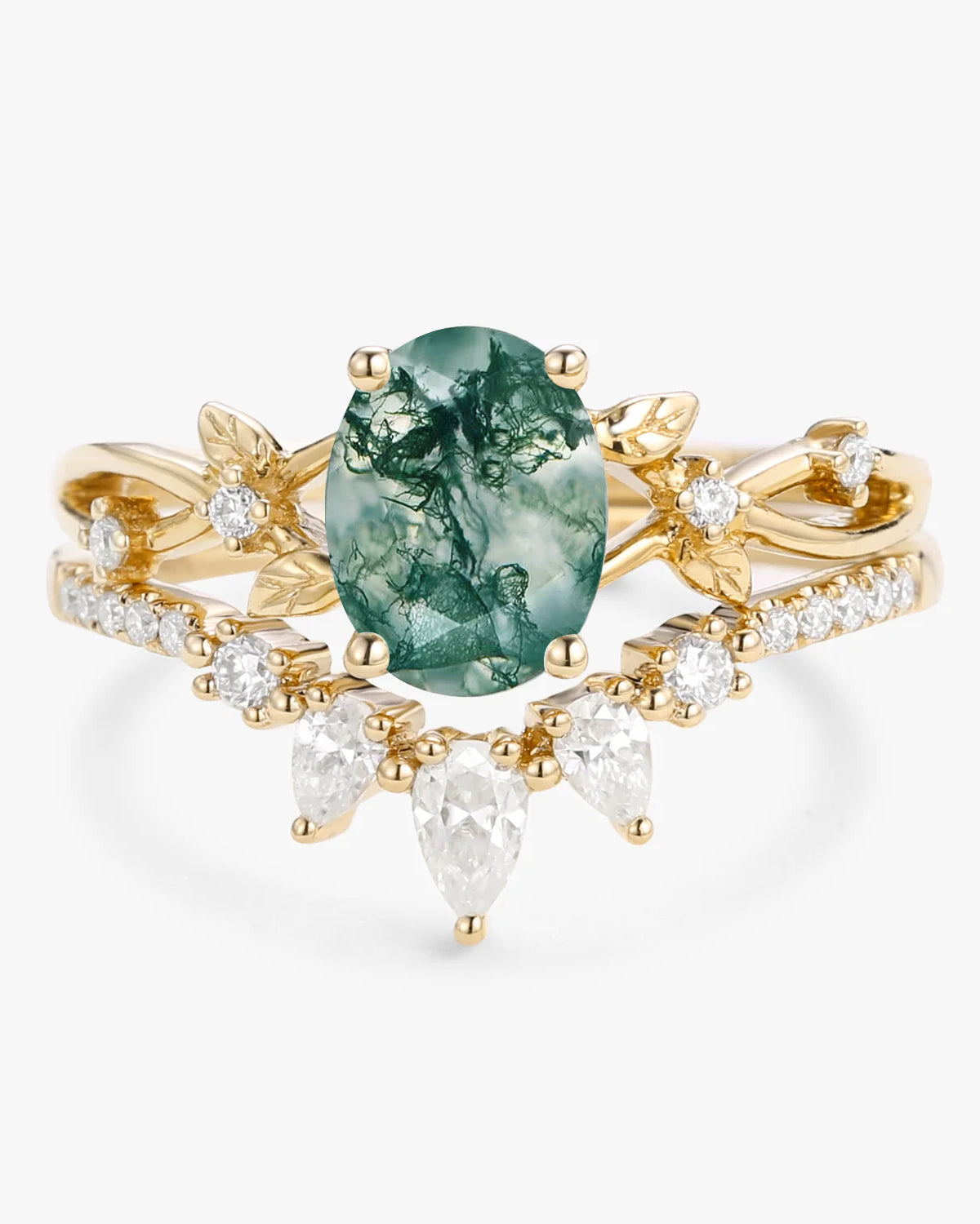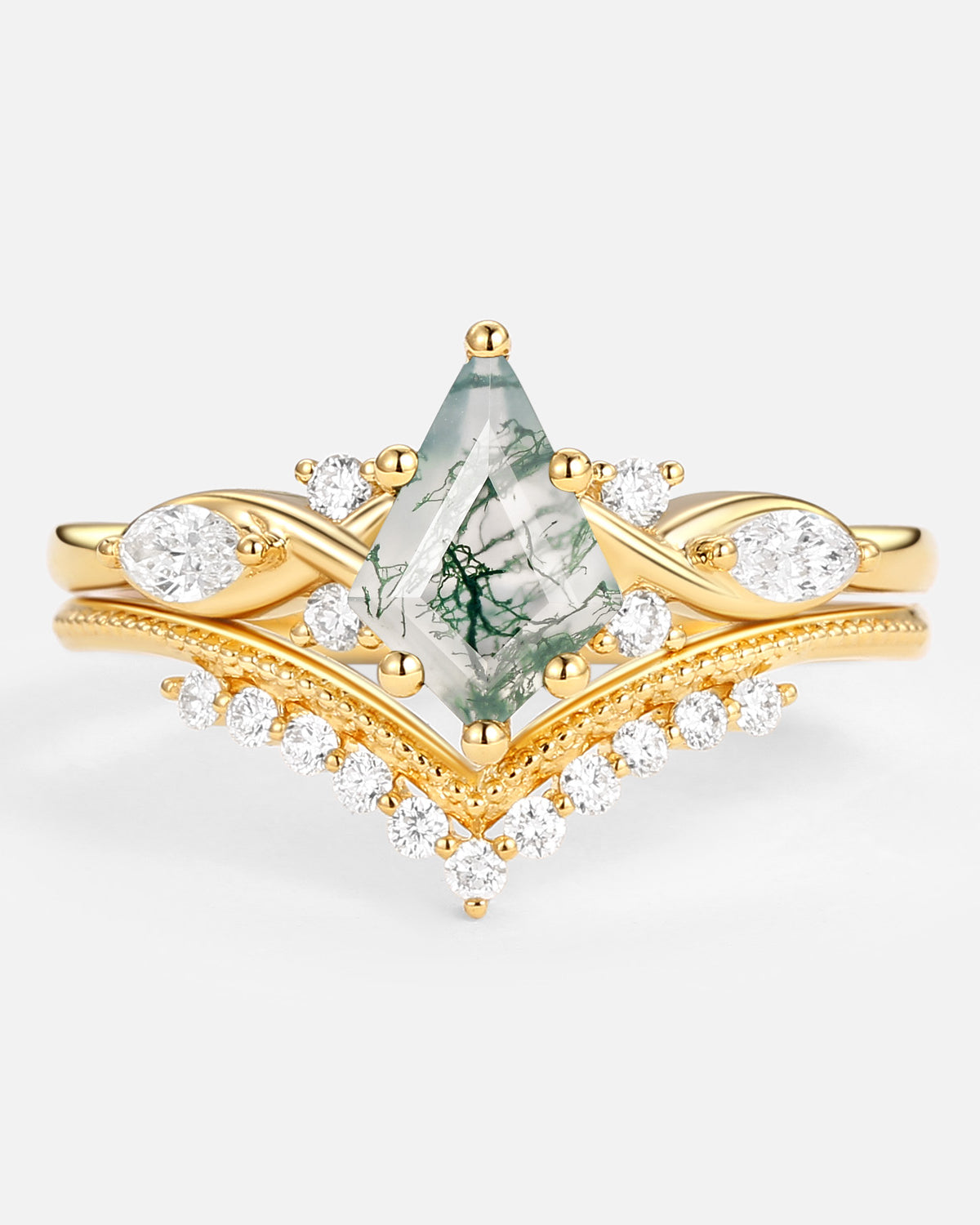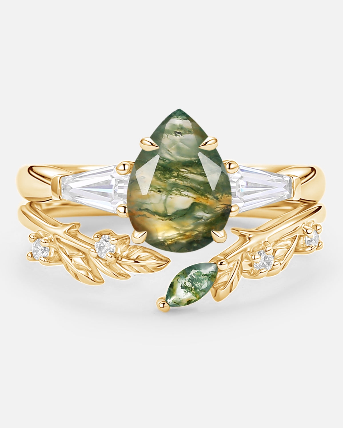 Spring green, summer transparency, autumn yellow, winter milky haze—our moss agate engagement rings fit each season’s hue. These precious chapters in these engagement rings tell your love story daily.