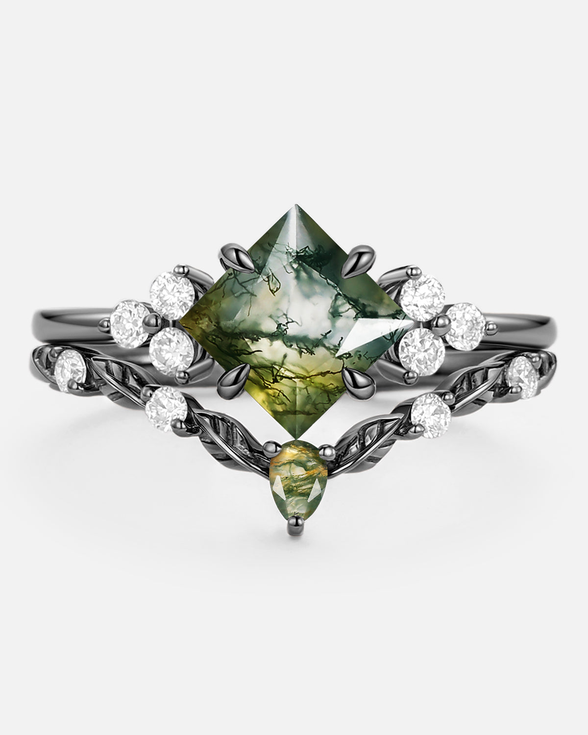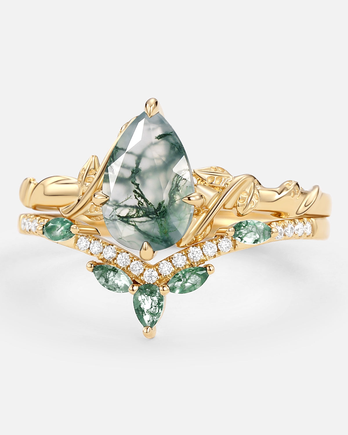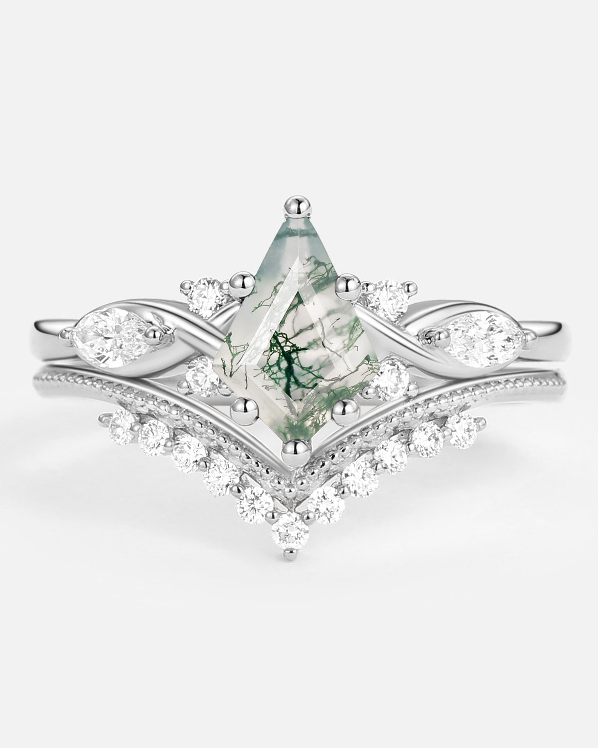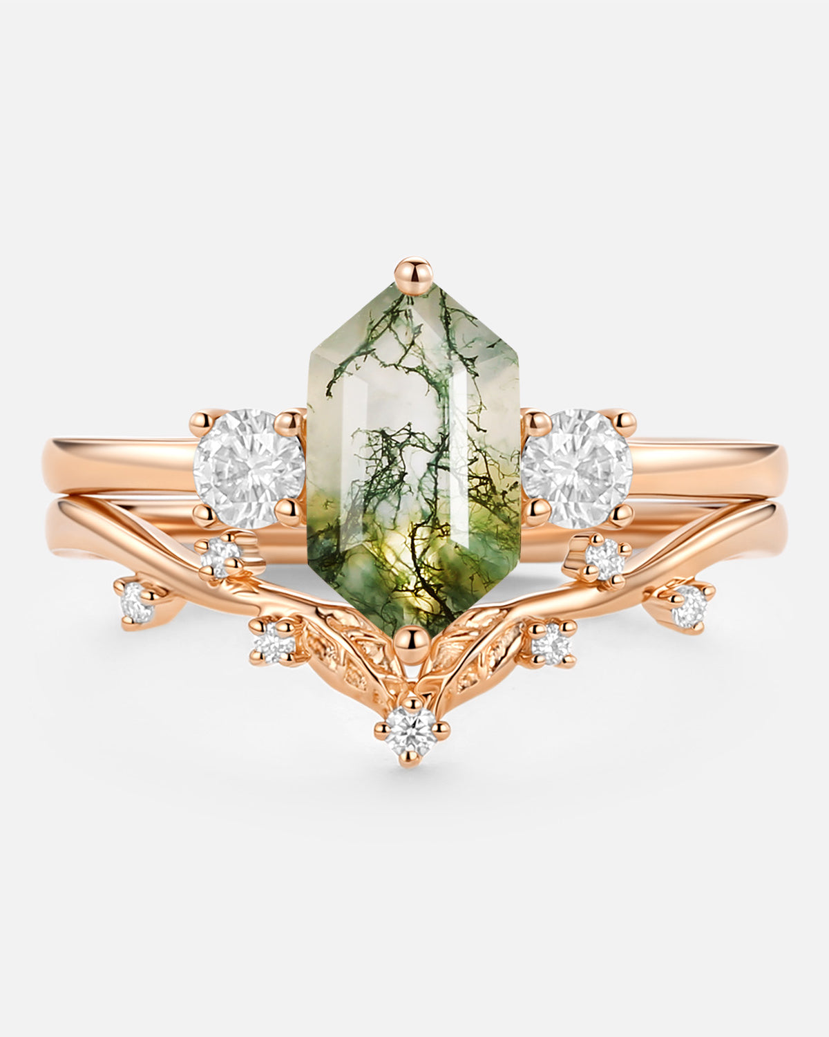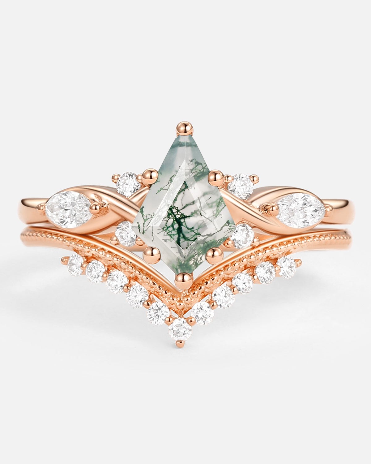 Spring green, summer transparency, autumn yellow, winter milky haze—our moss agate engagement rings fit each season’s hue. These precious chapters in these engagement rings tell your love story daily.