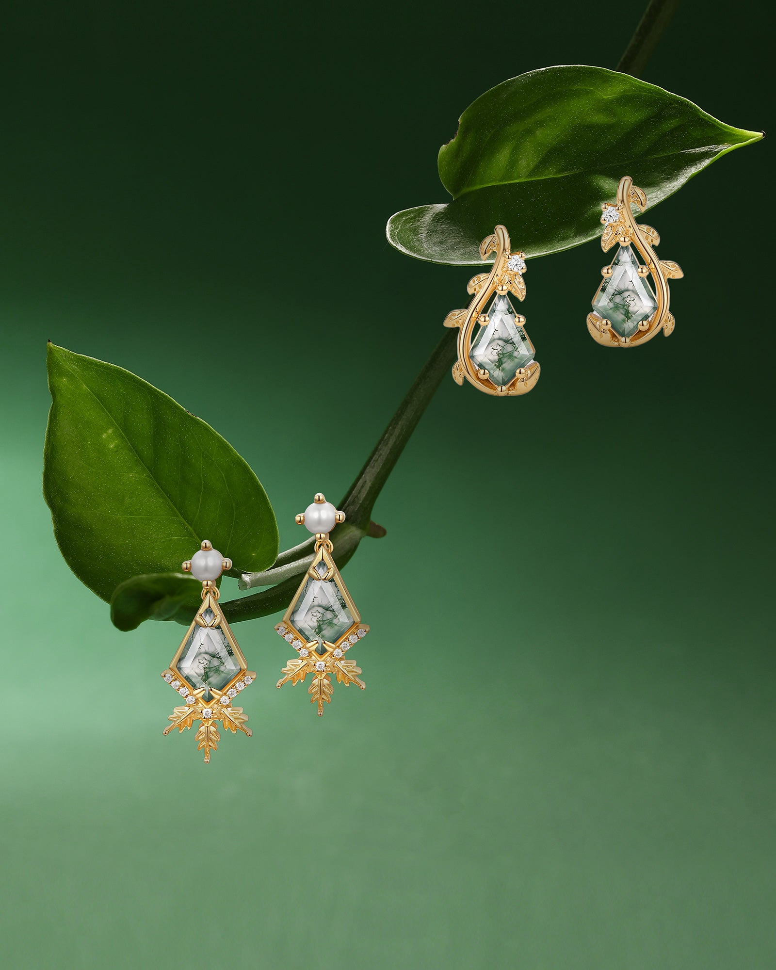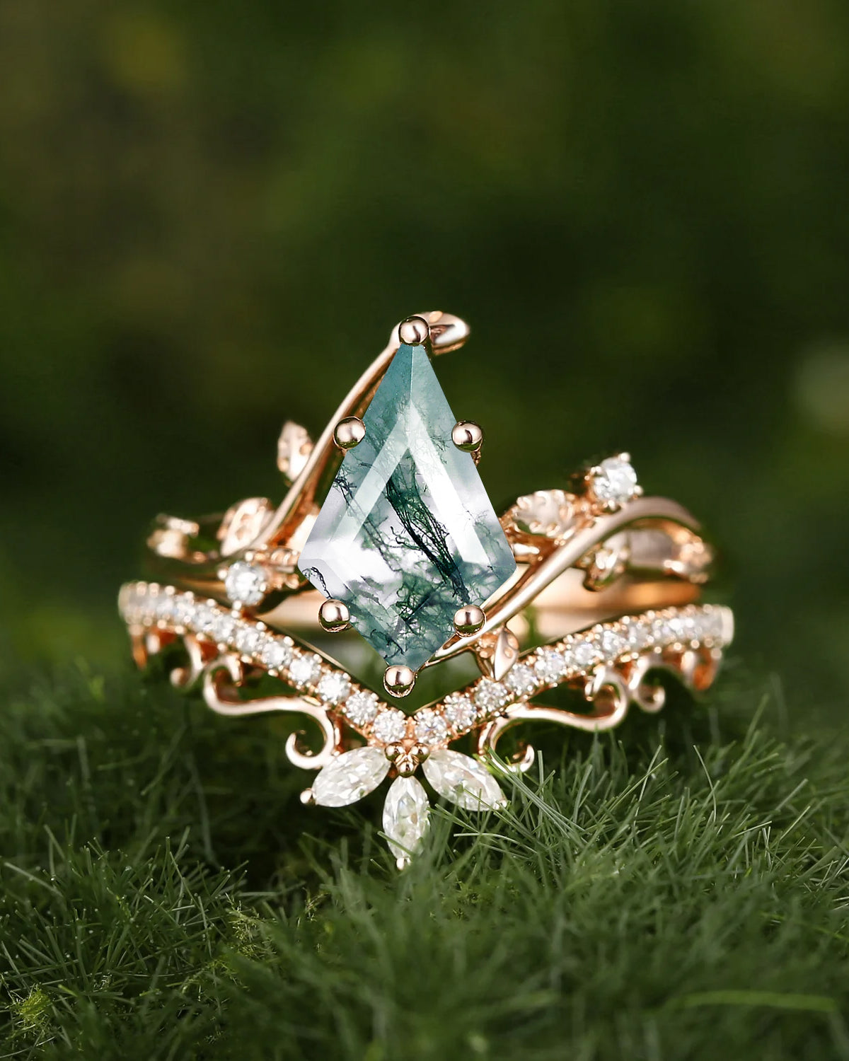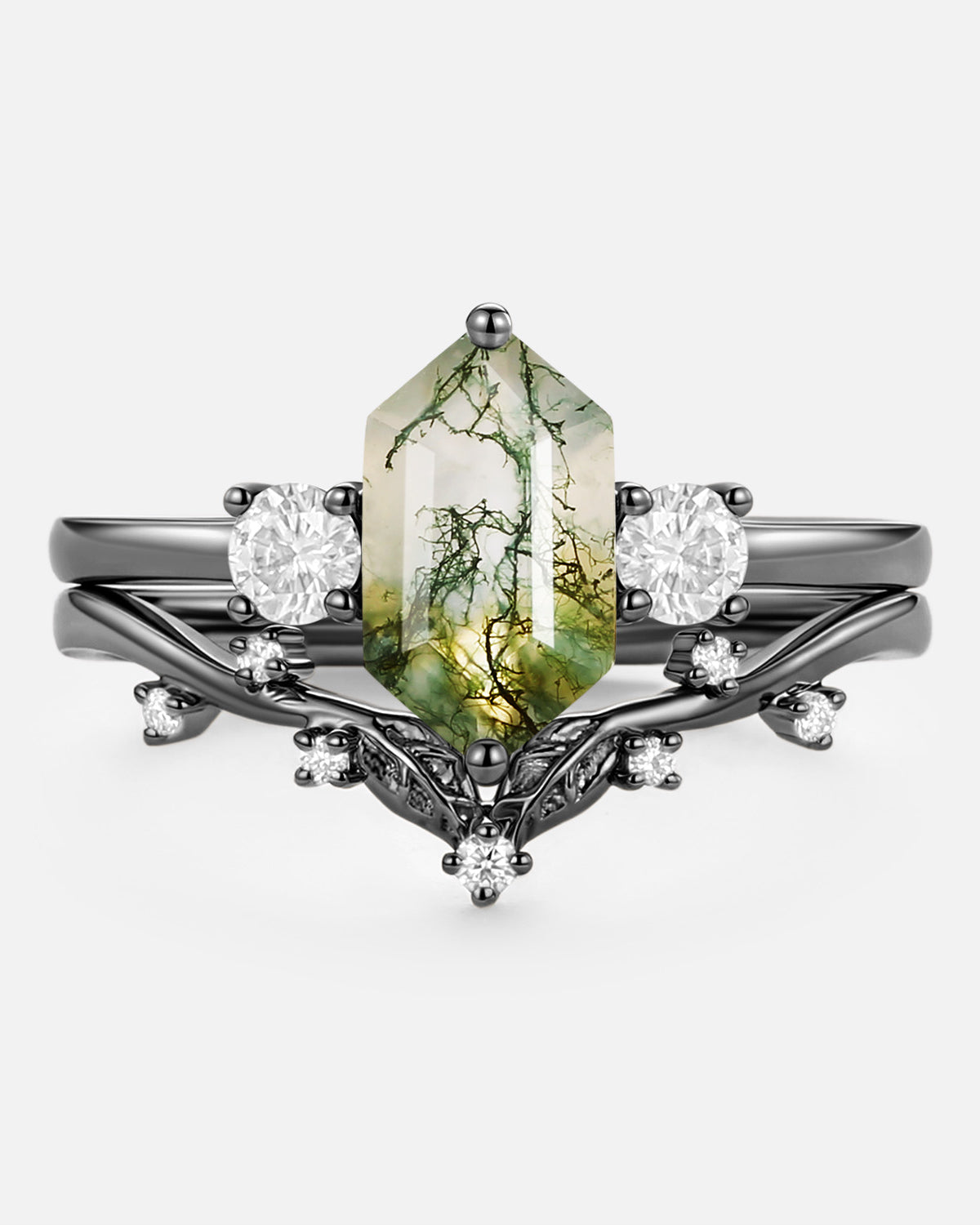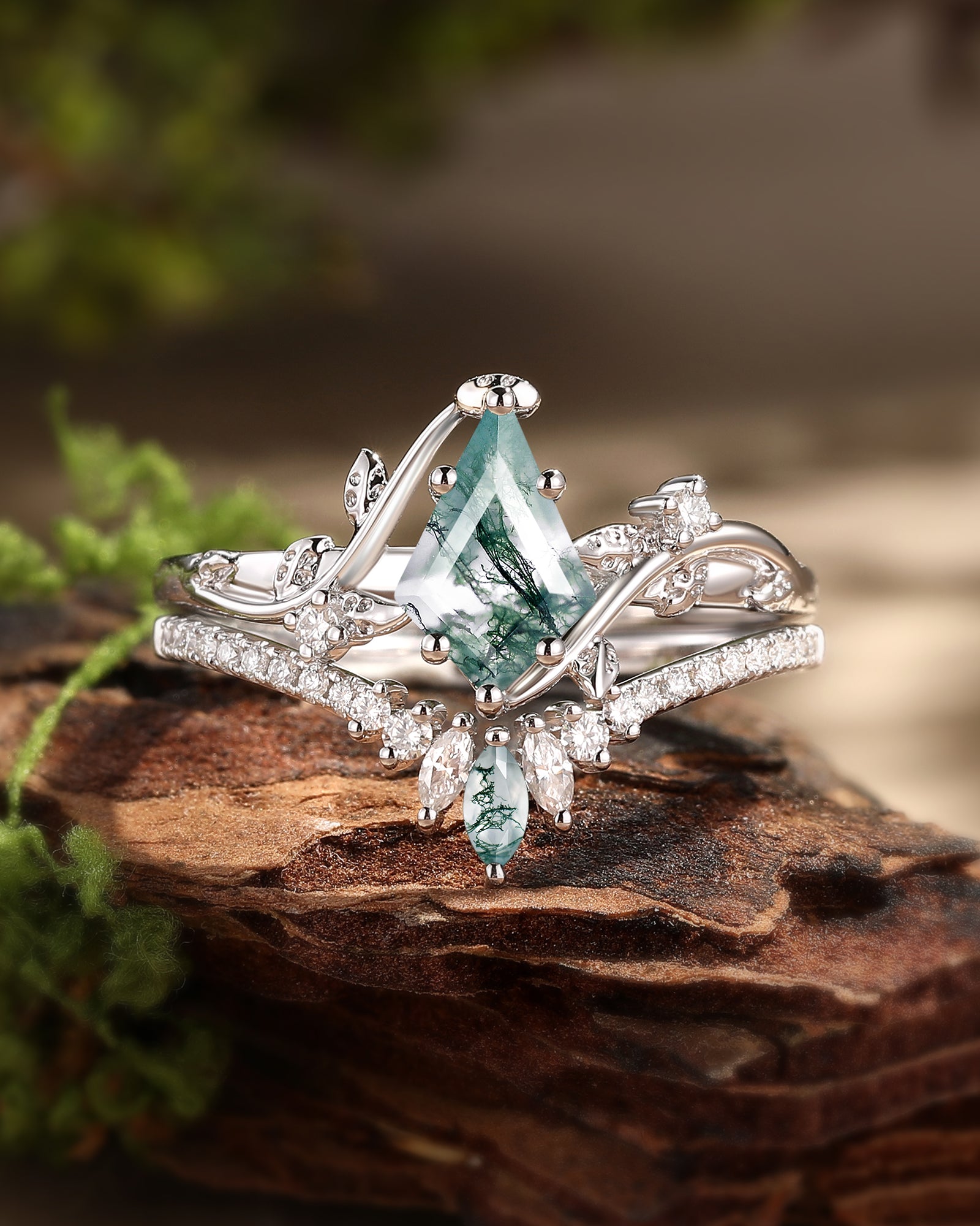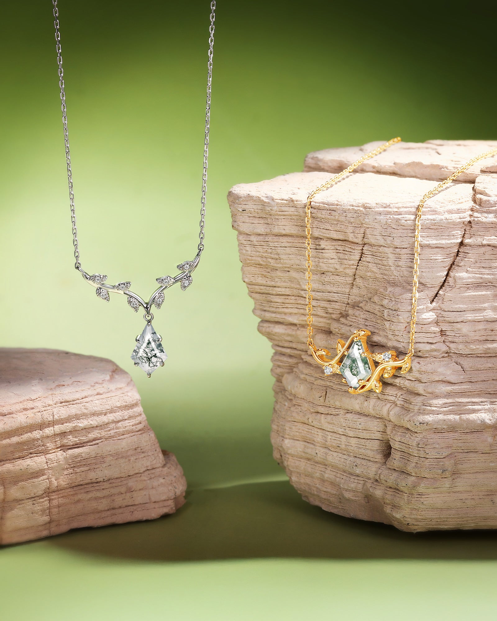Spring green, summer transparency, autumn yellow, winter milky haze—our moss agate engagement rings fit each season’s hue. These precious chapters in these engagement rings tell your love story daily.