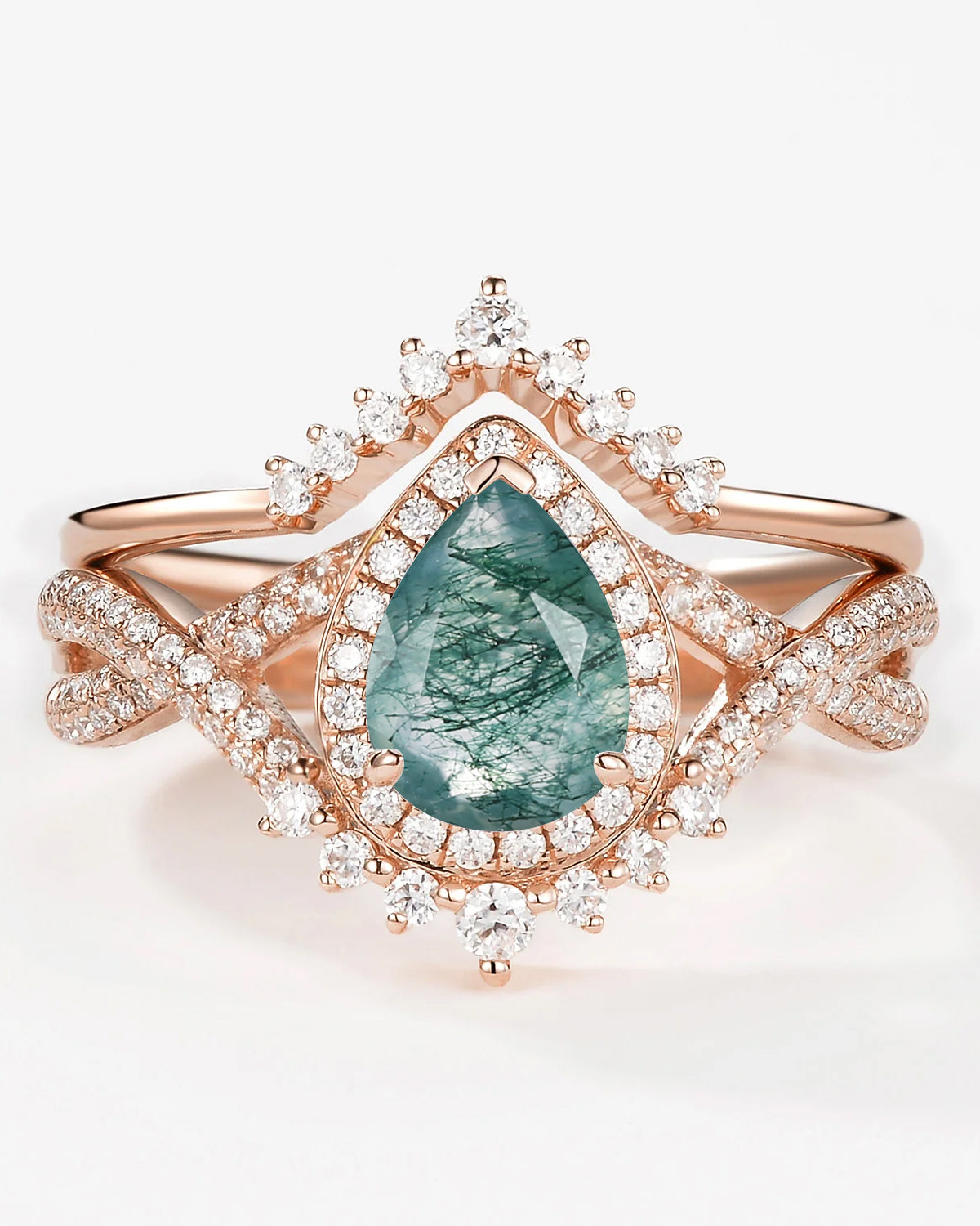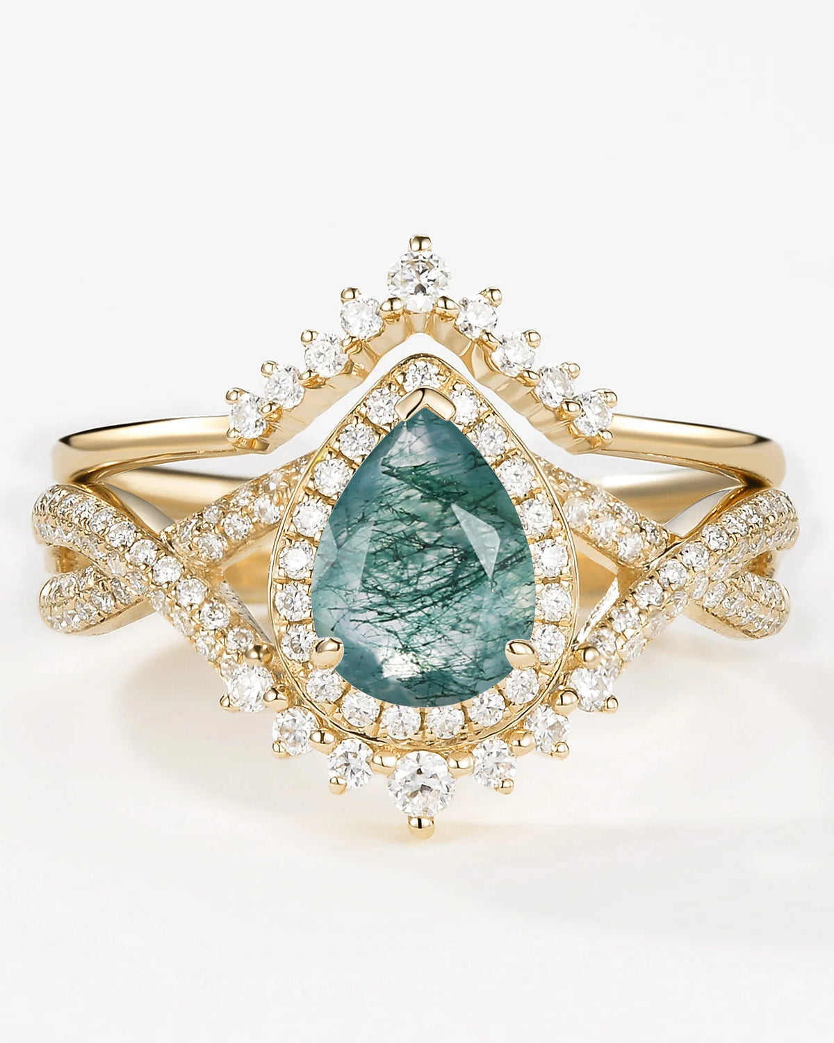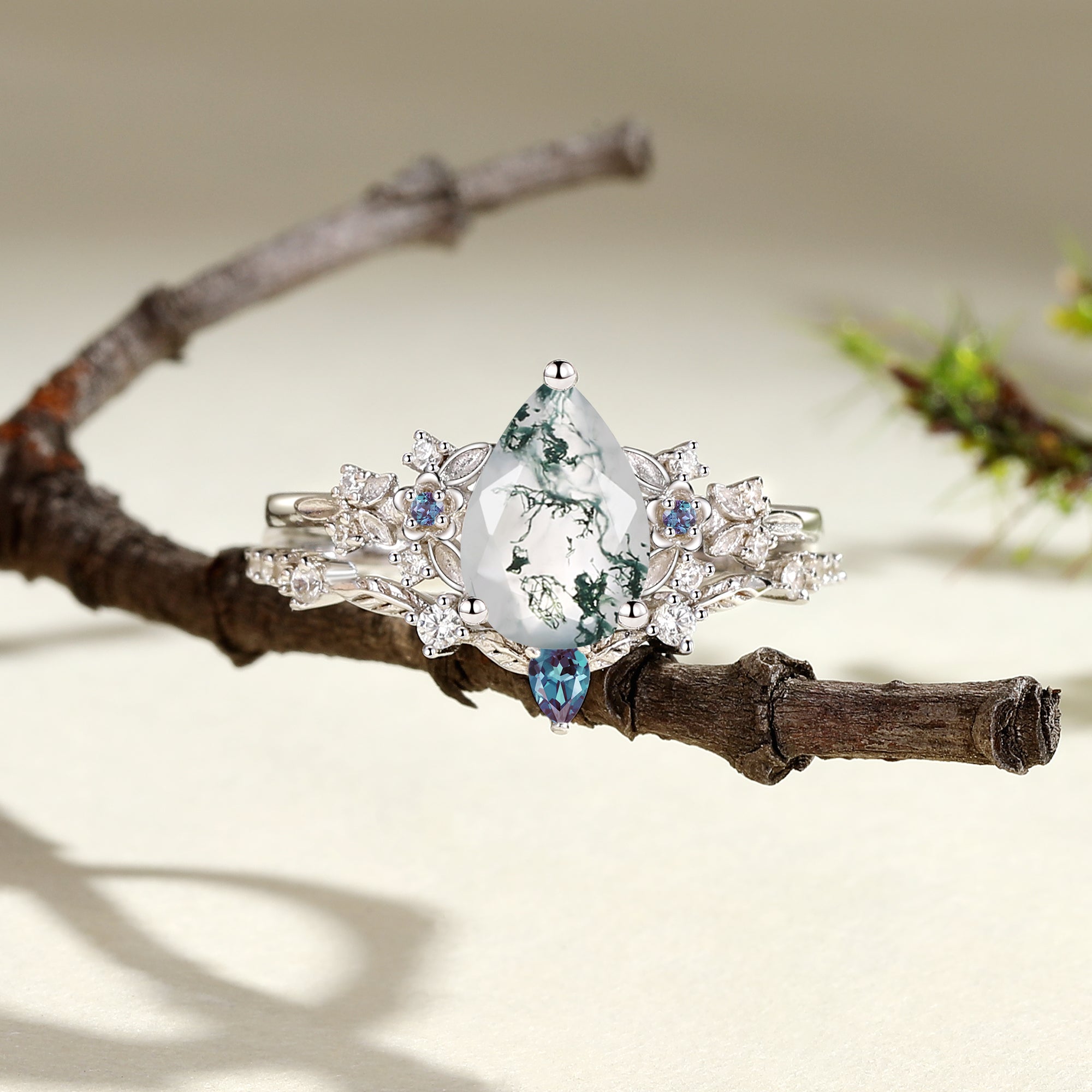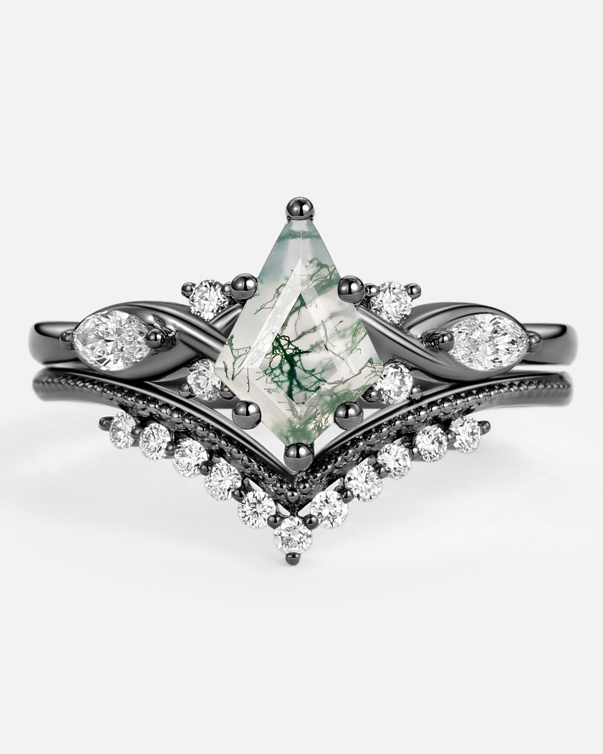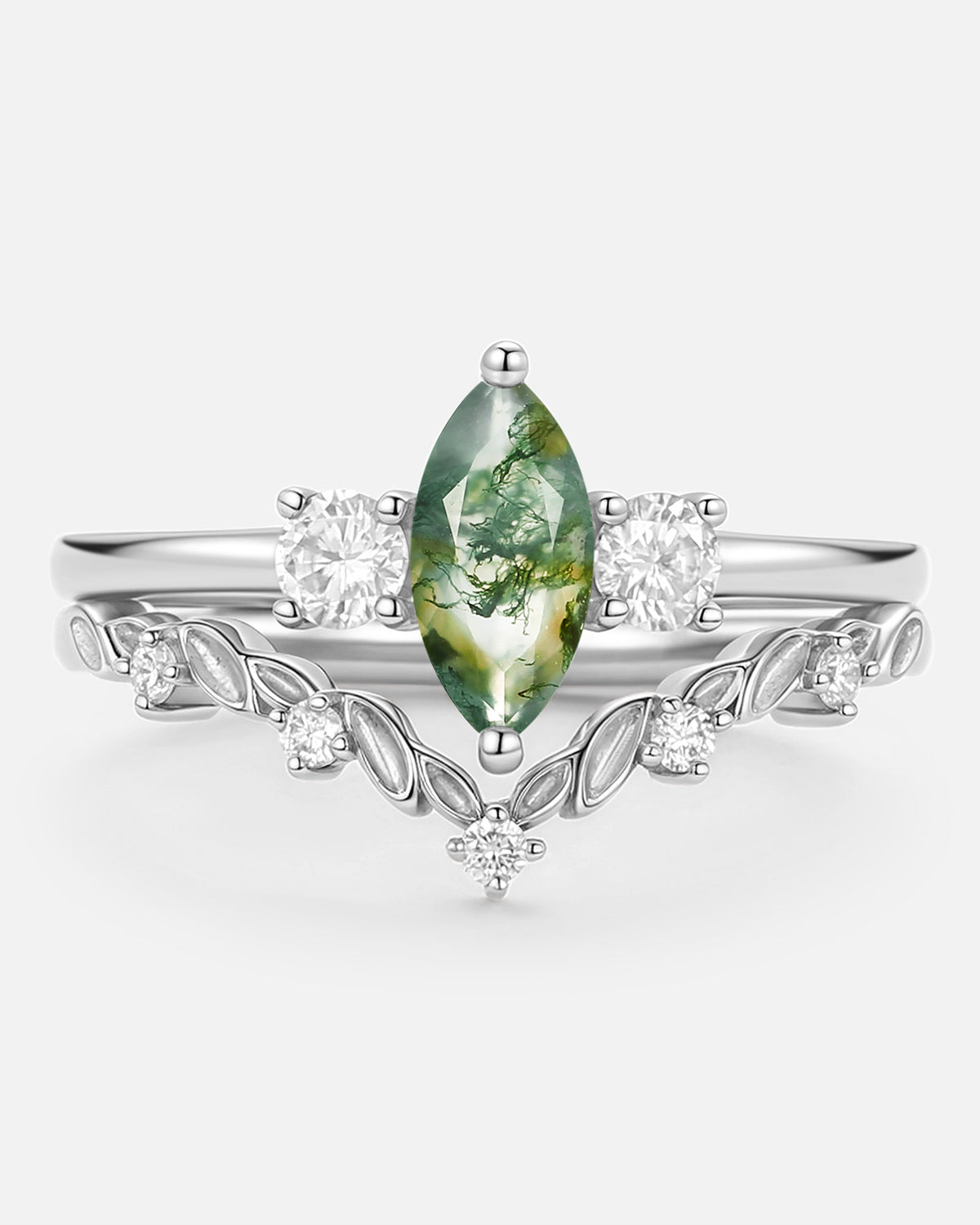 Spring green, summer transparency, autumn yellow, winter milky haze—our moss agate engagement rings fit each season’s hue. These precious chapters in these engagement rings tell your love story daily.