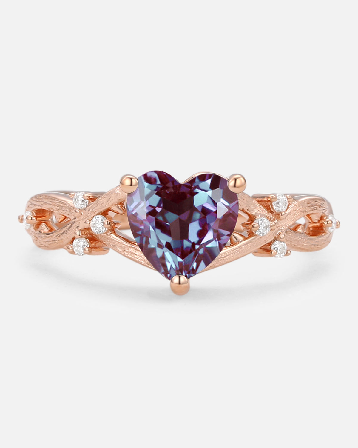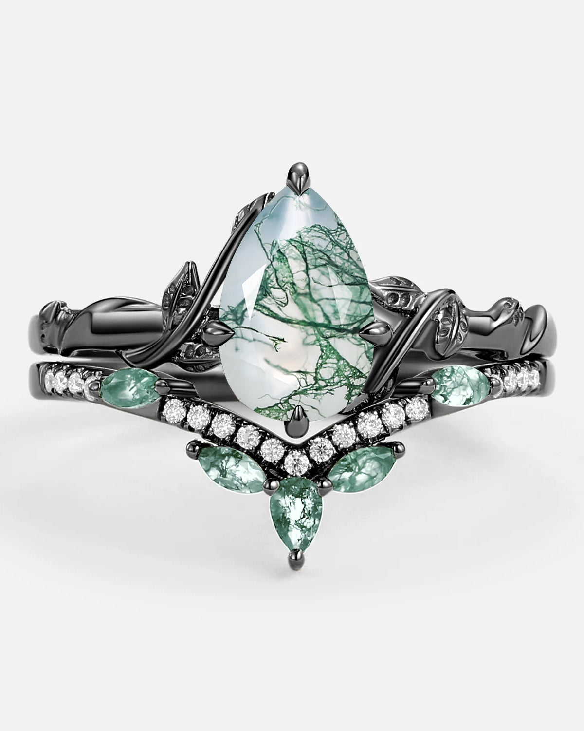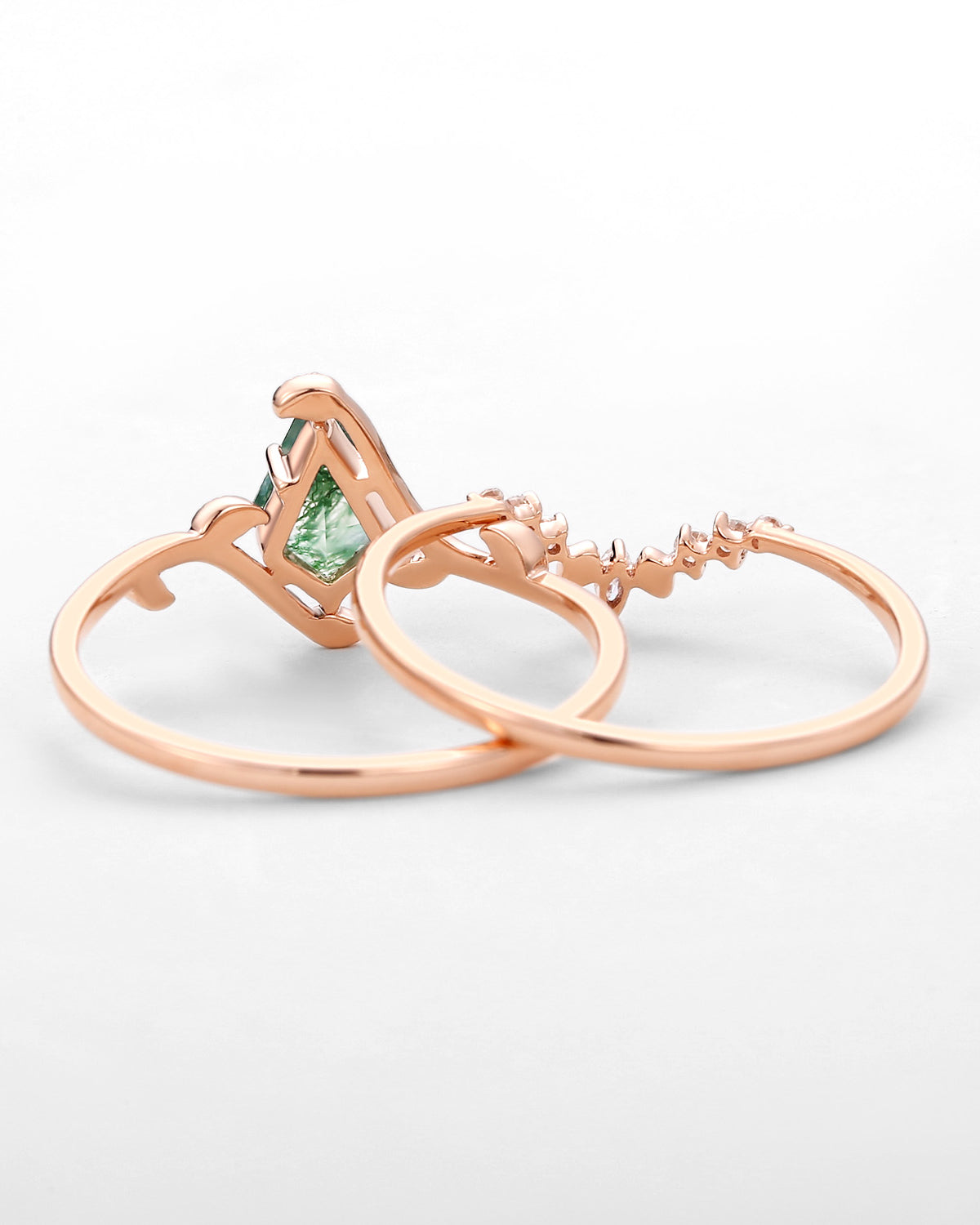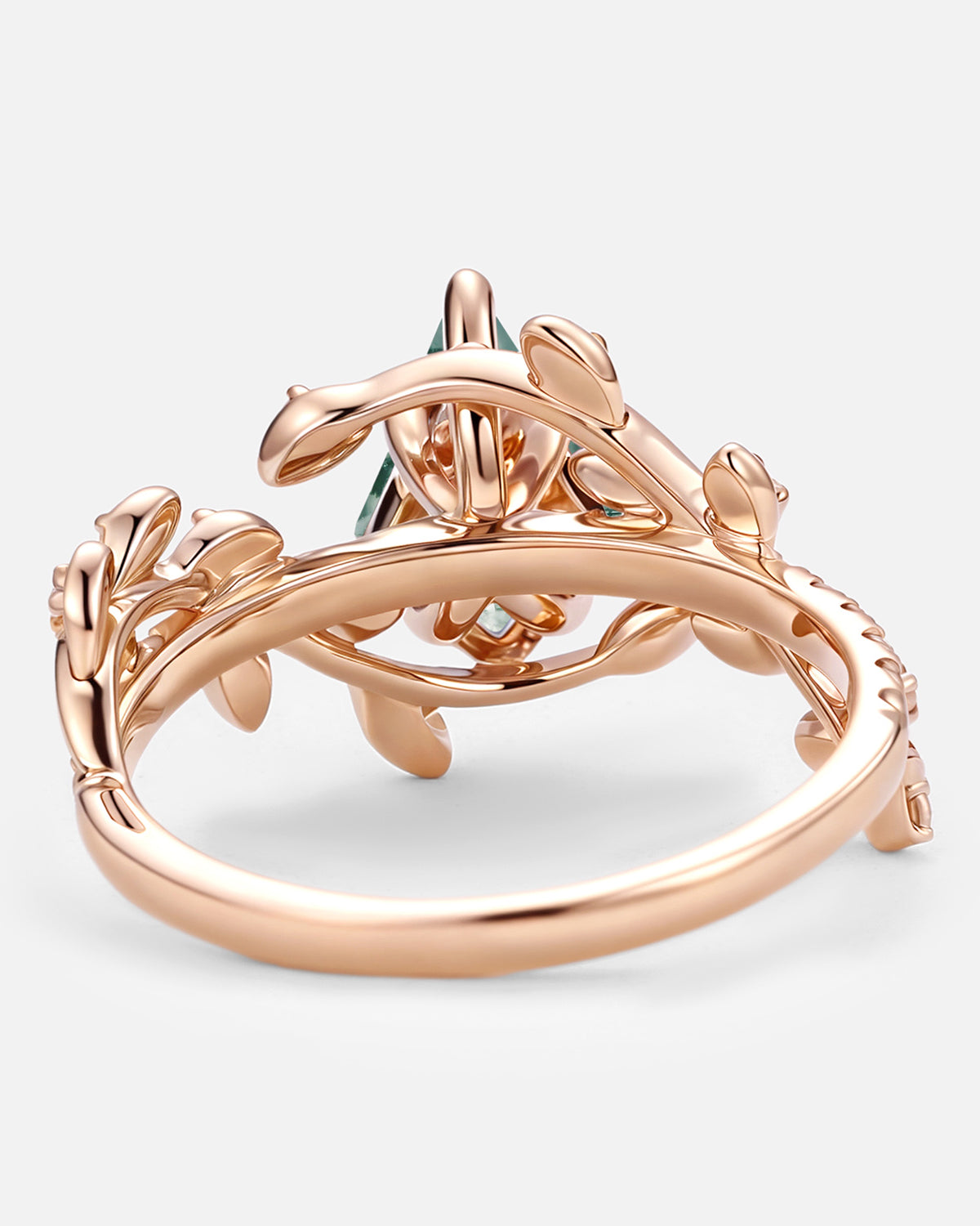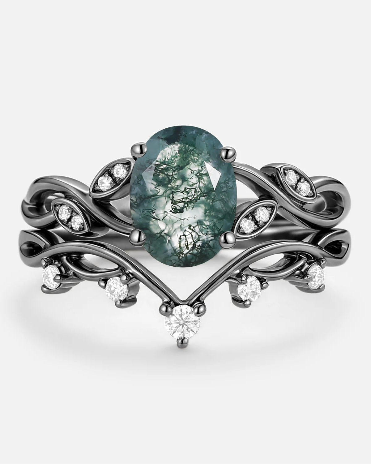 Grassy green moss glows like spring’s rain-kissed new leaves, carrying the vitality of budding blooms; vitality wraps around the finger as it rests on yours, a sweet echo of spring’s fresh energy in your love.