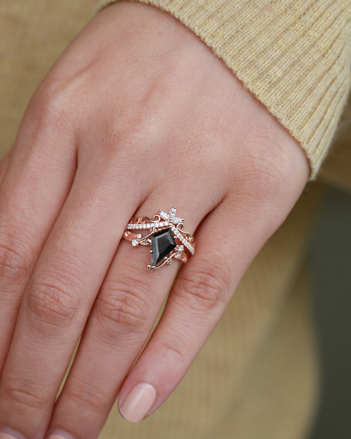 Yellow-ish moss shines like autumn’s sunset-kissed wheat fields, wrapping your finger in the season’s gentle coziness; it’s made for couples who fall in love in the fall, keeping the season’s steady affection close.
