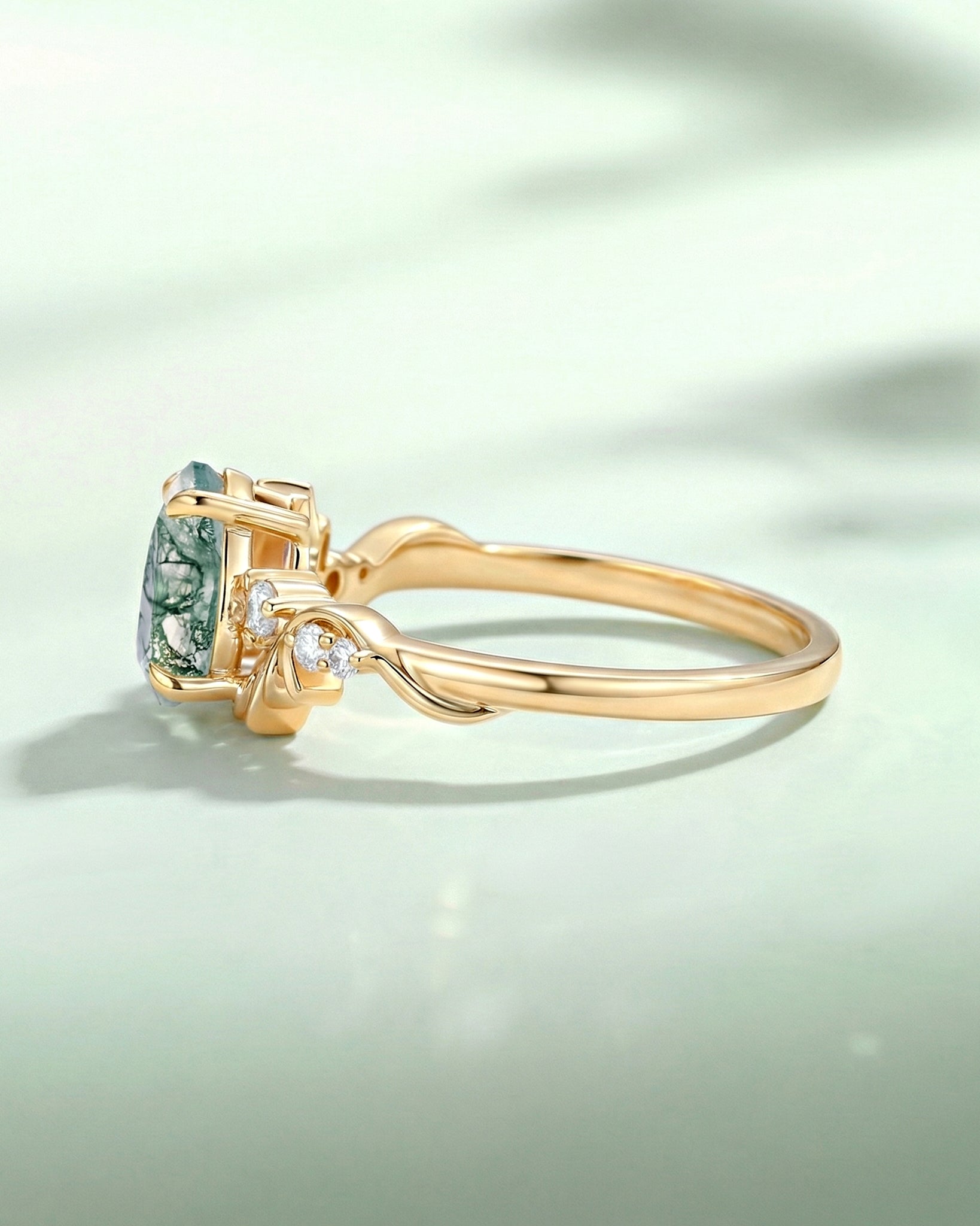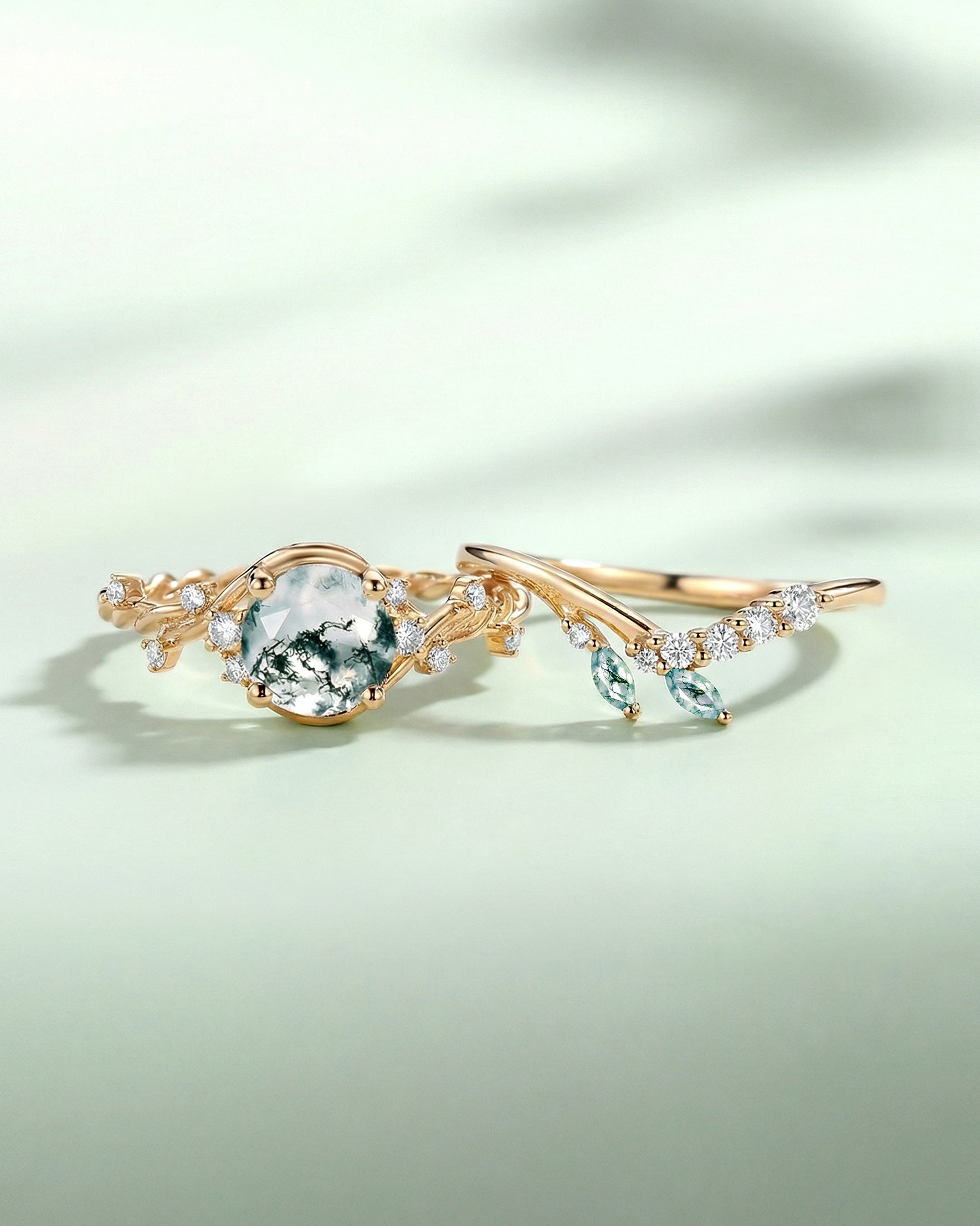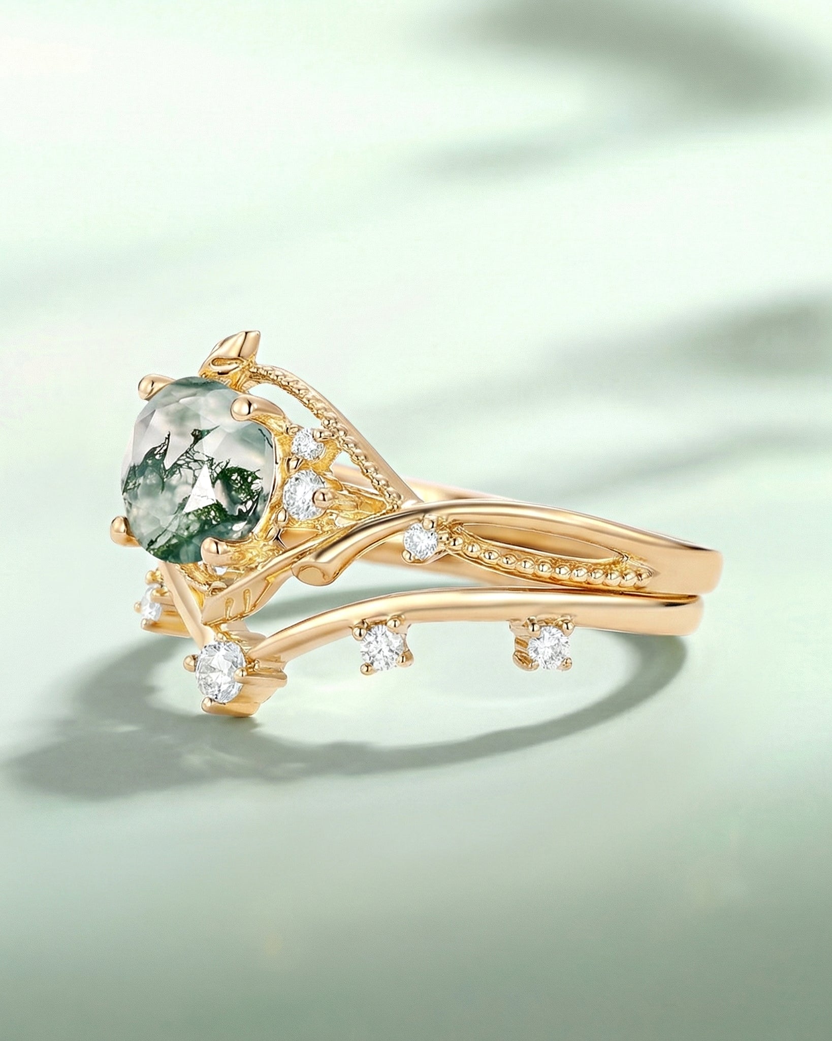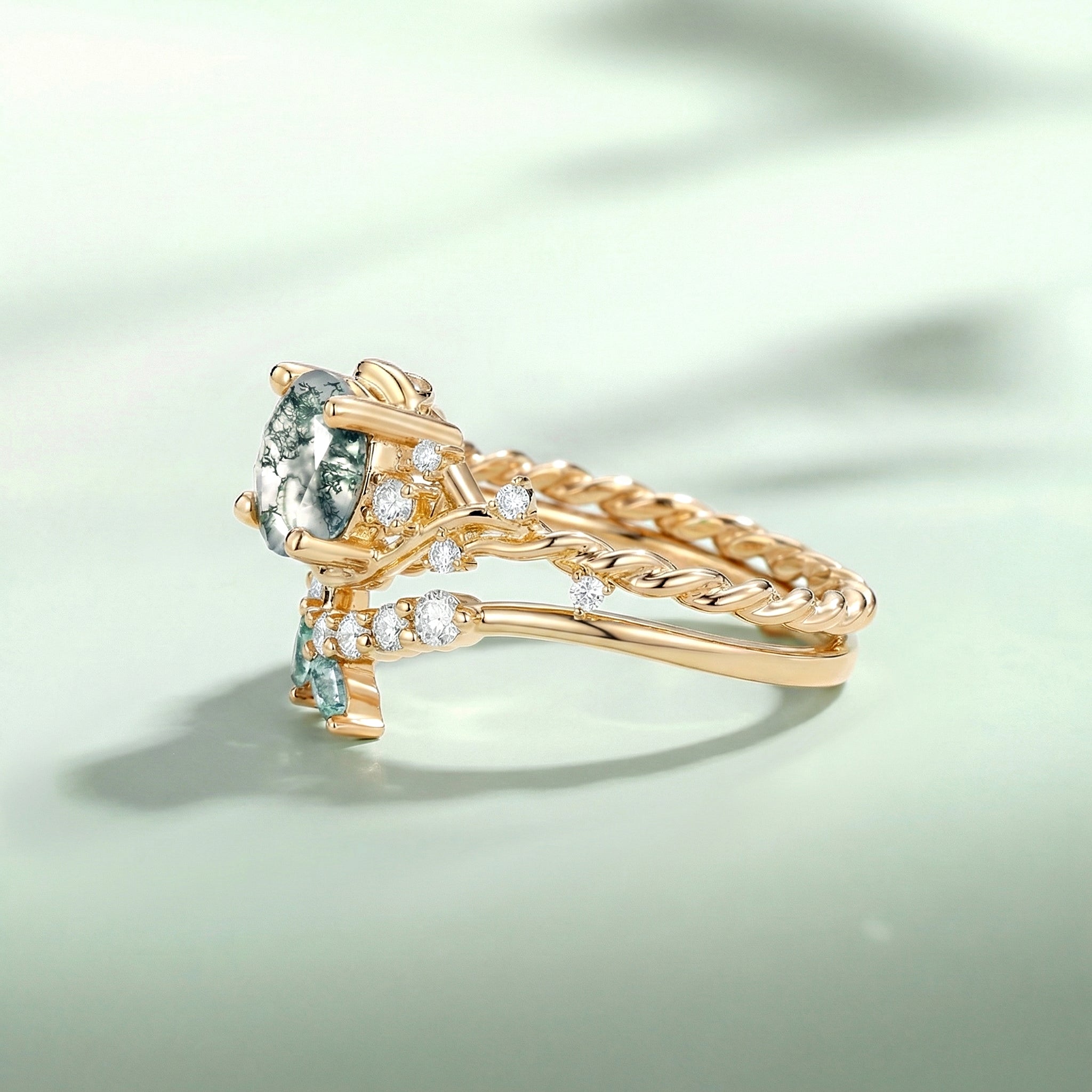 Inspired by fleeting moments in nature, this moss agate engagement ring series captures spring, summer, autumn, and winter as distinct states in time. From the soft translucency of early spring light, to the dense vitality of summer growth, the gathered depth of autumn, and the clear stillness of winter, each design reflects a season at its most recognizable moment.