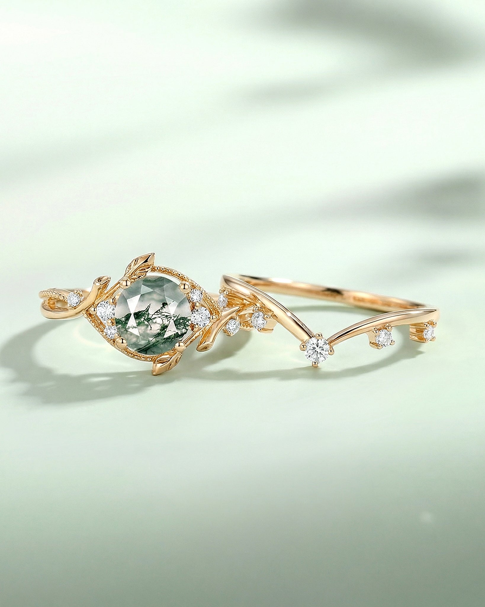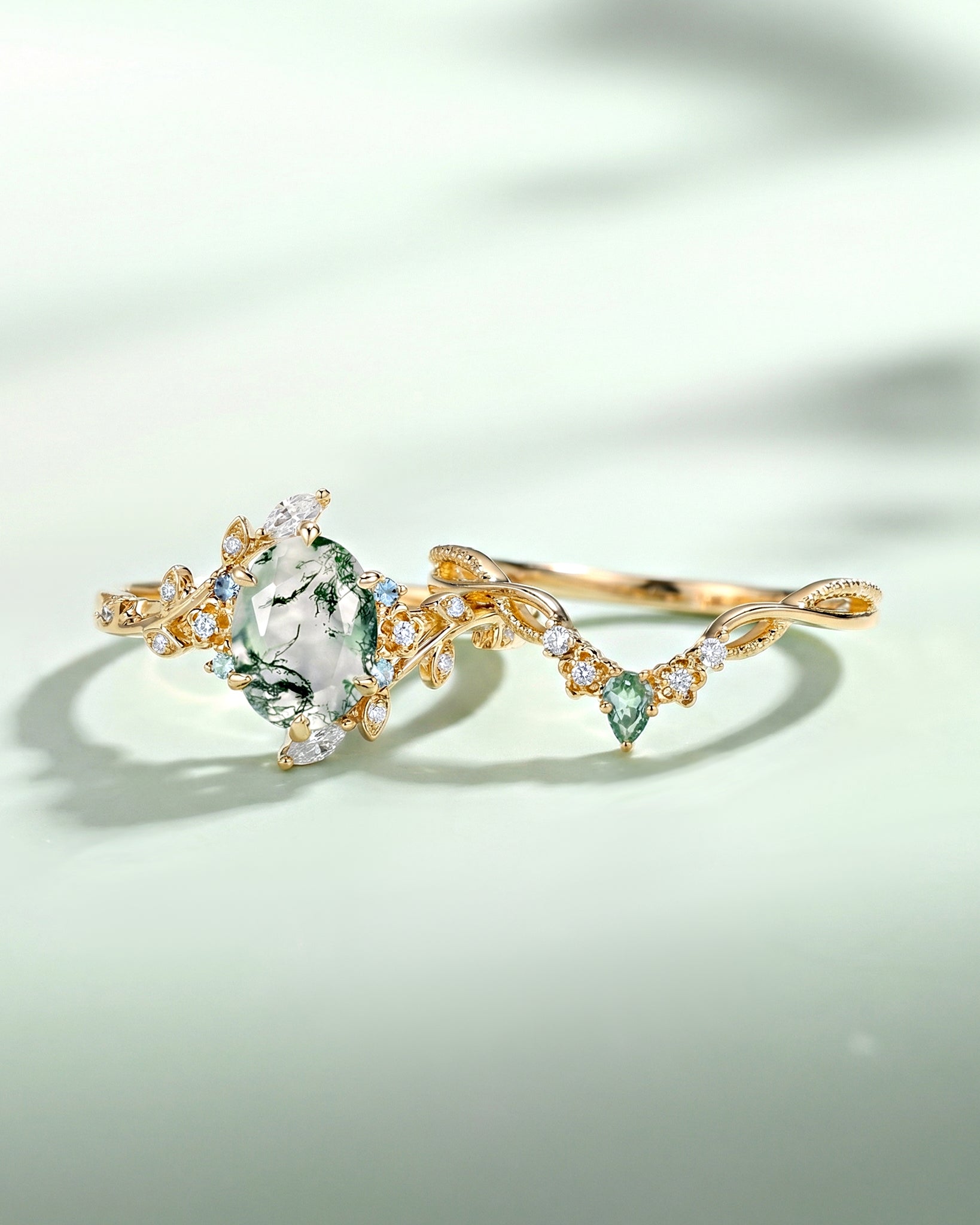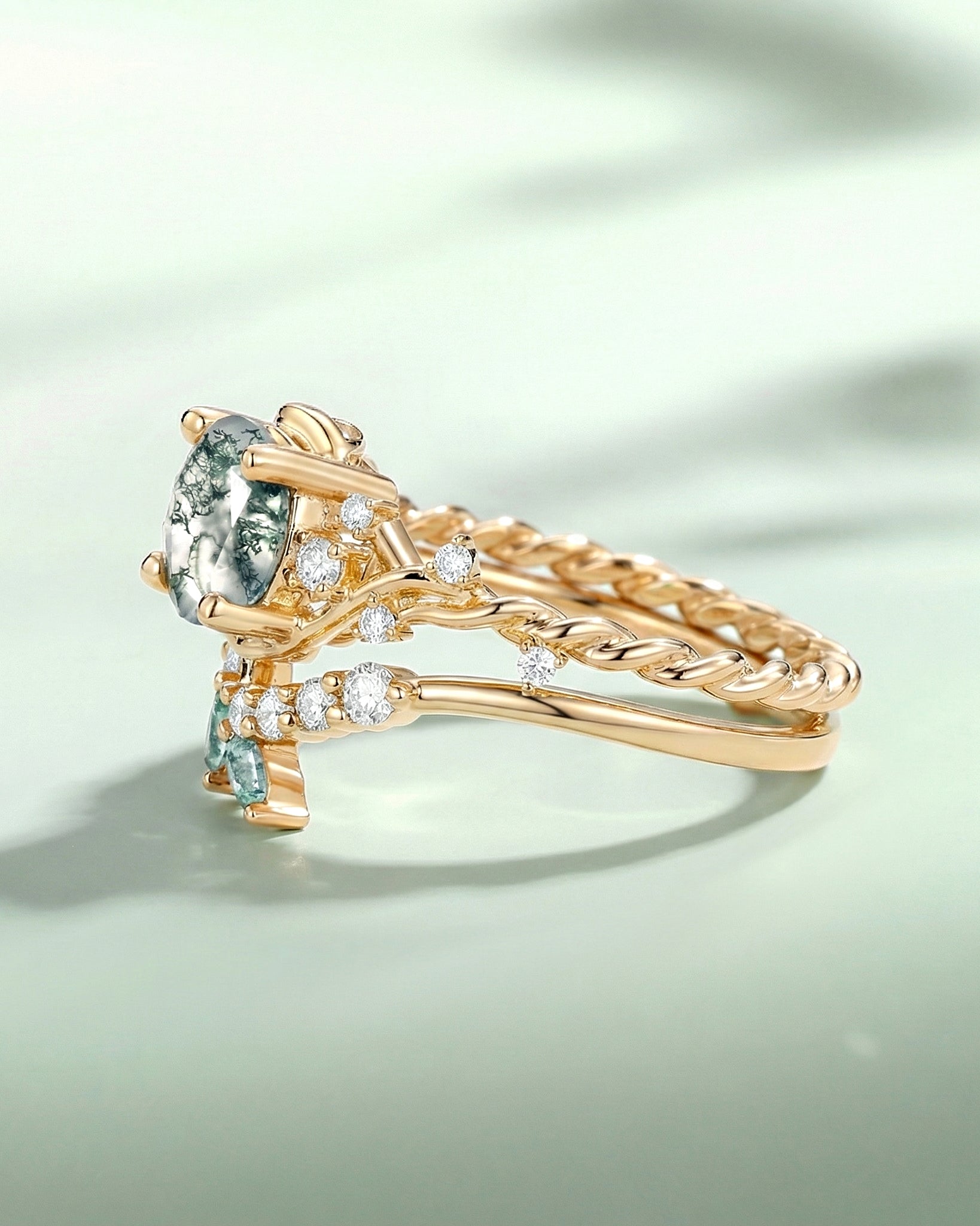 Inspired by fleeting moments in nature, this moss agate engagement ring series captures spring, summer, autumn, and winter as distinct states in time. From the soft translucency of early spring light, to the dense vitality of summer growth, the gathered depth of autumn, and the clear stillness of winter, each design reflects a season at its most recognizable moment.