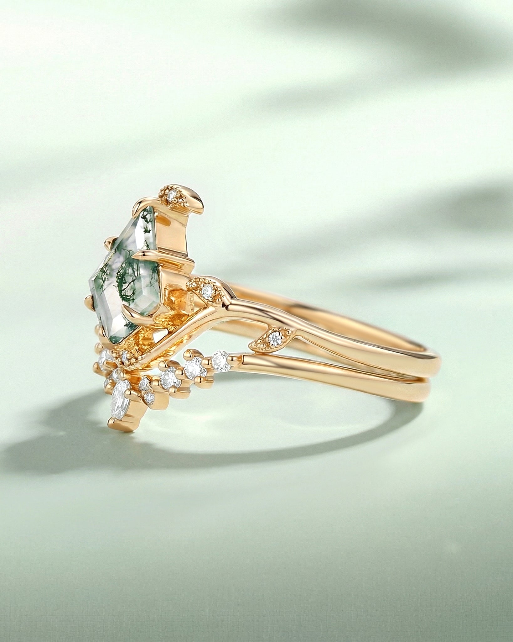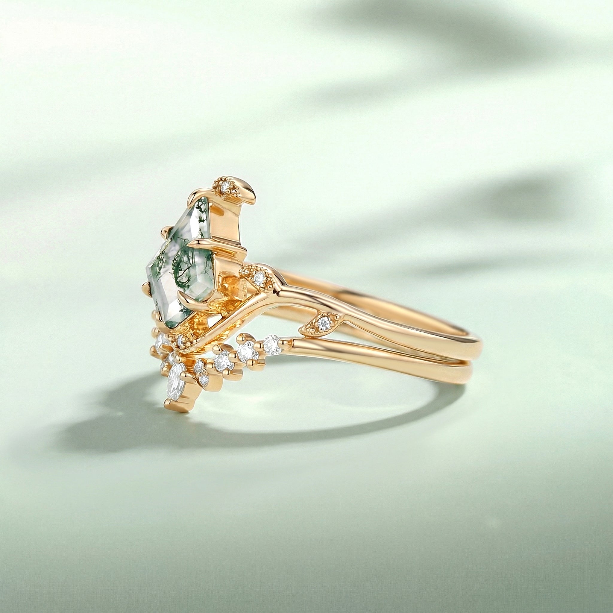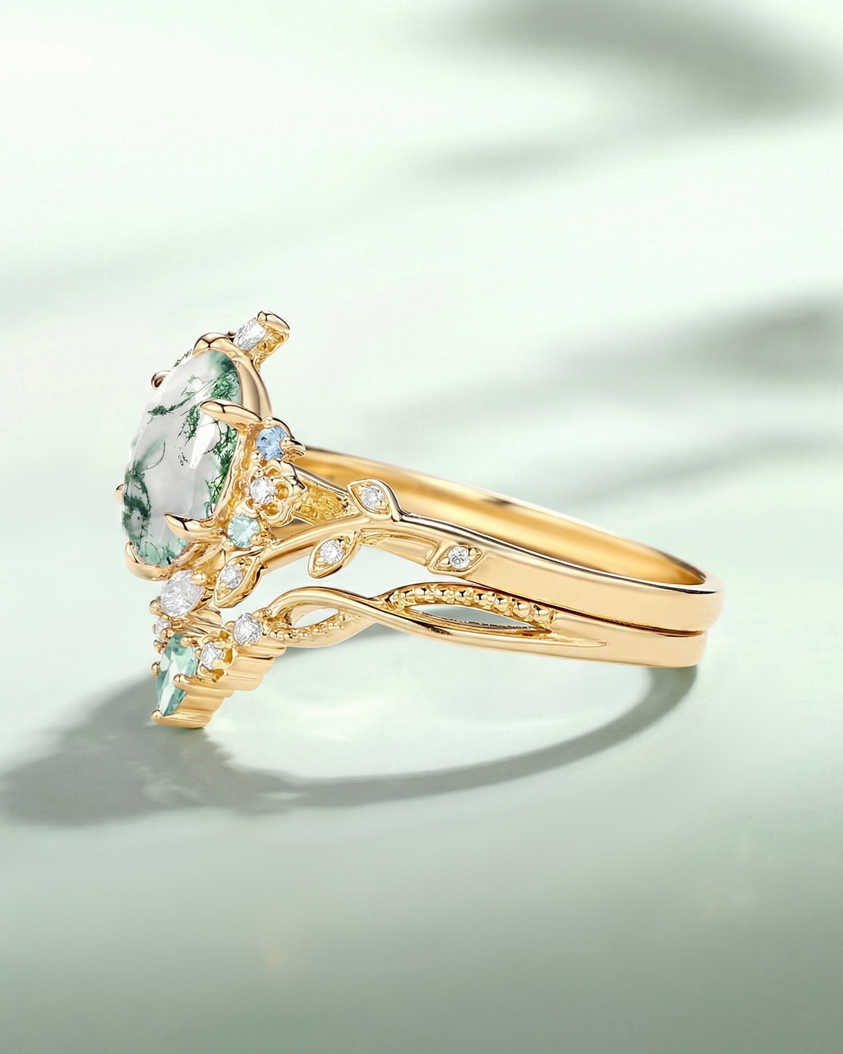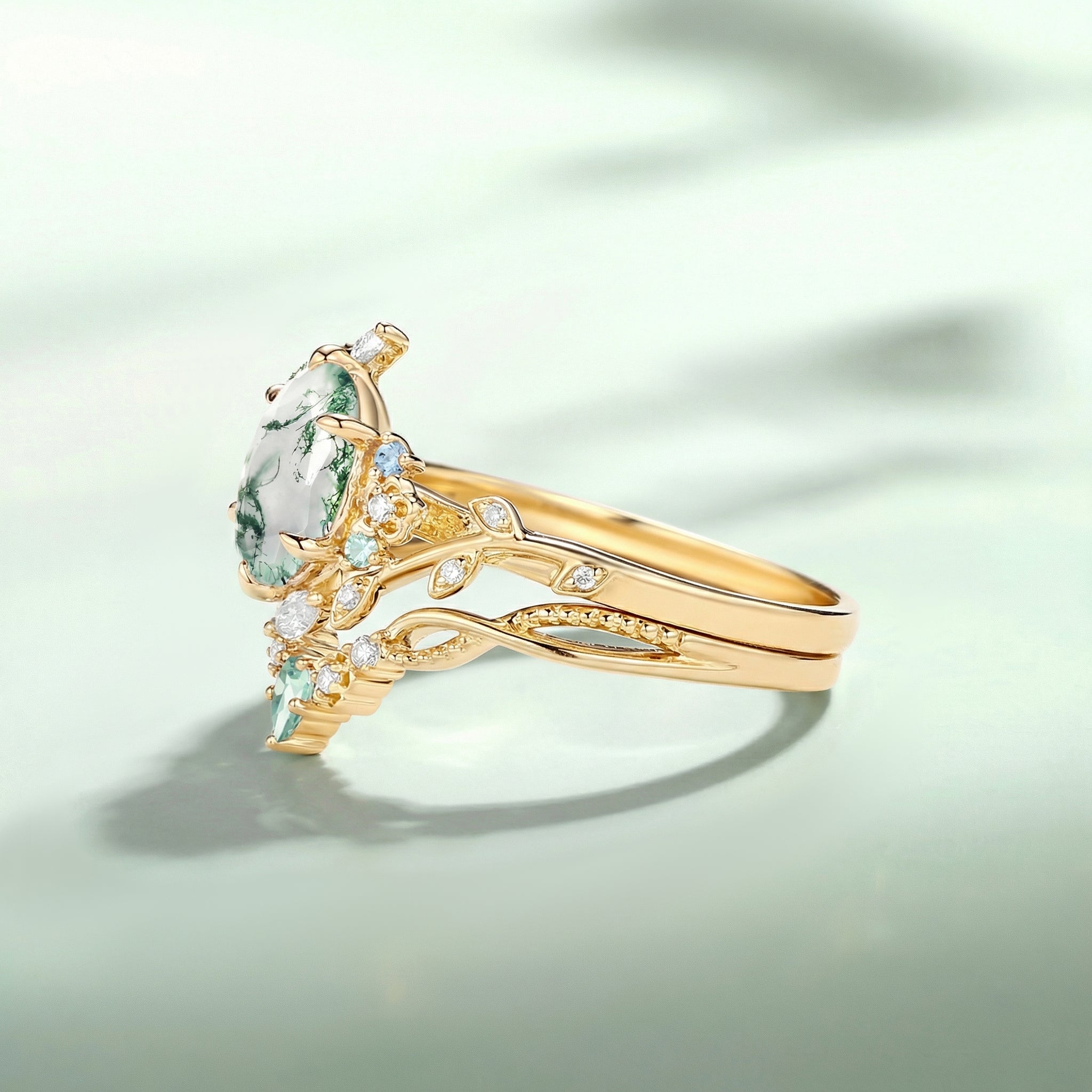 Inspired by fleeting moments in nature, this moss agate engagement ring series captures spring, summer, autumn, and winter as distinct states in time. From the soft translucency of early spring light, to the dense vitality of summer growth, the gathered depth of autumn, and the clear stillness of winter, each design reflects a season at its most recognizable moment.
