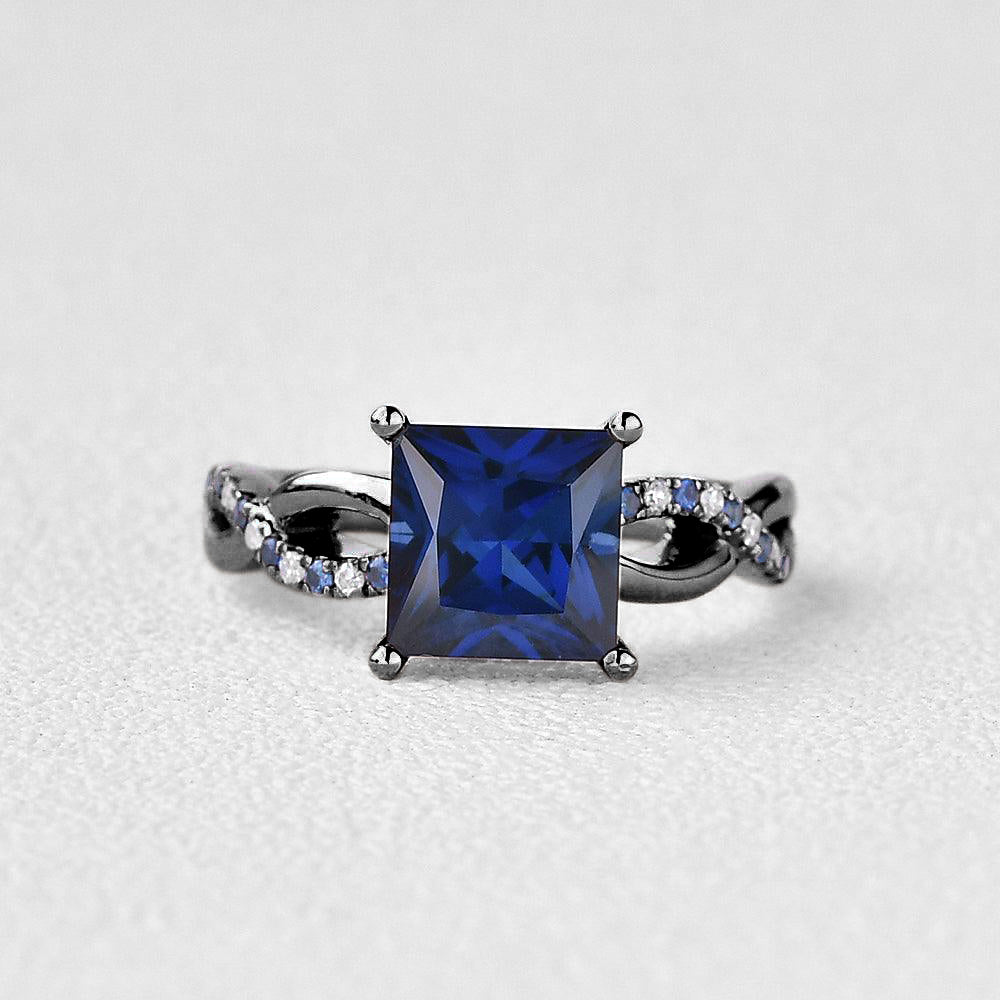 Felicegals Princess Cut Blue Sapphire & Moissanite Retro Style 14K Gold Ring Lab Sapphire May Birthstone Ring Custom Jewelry