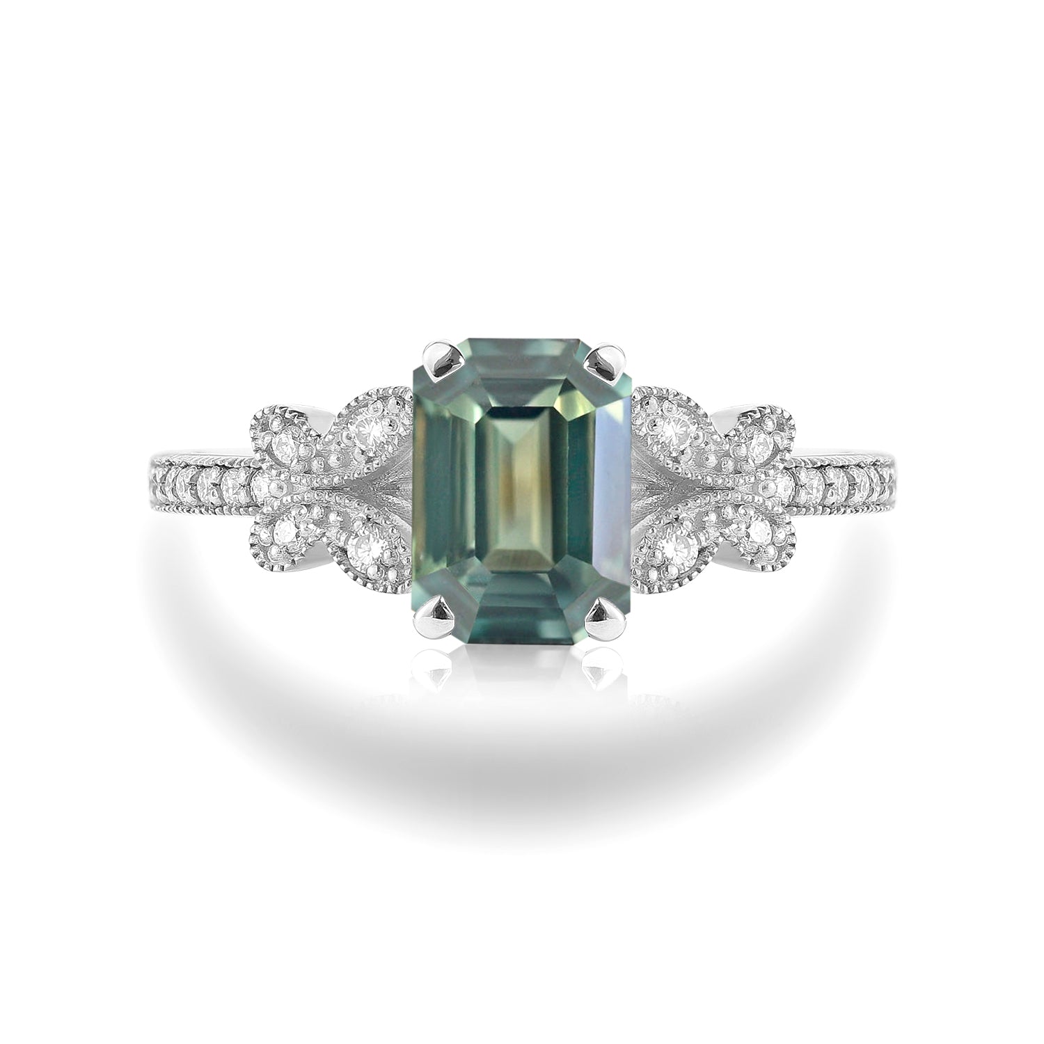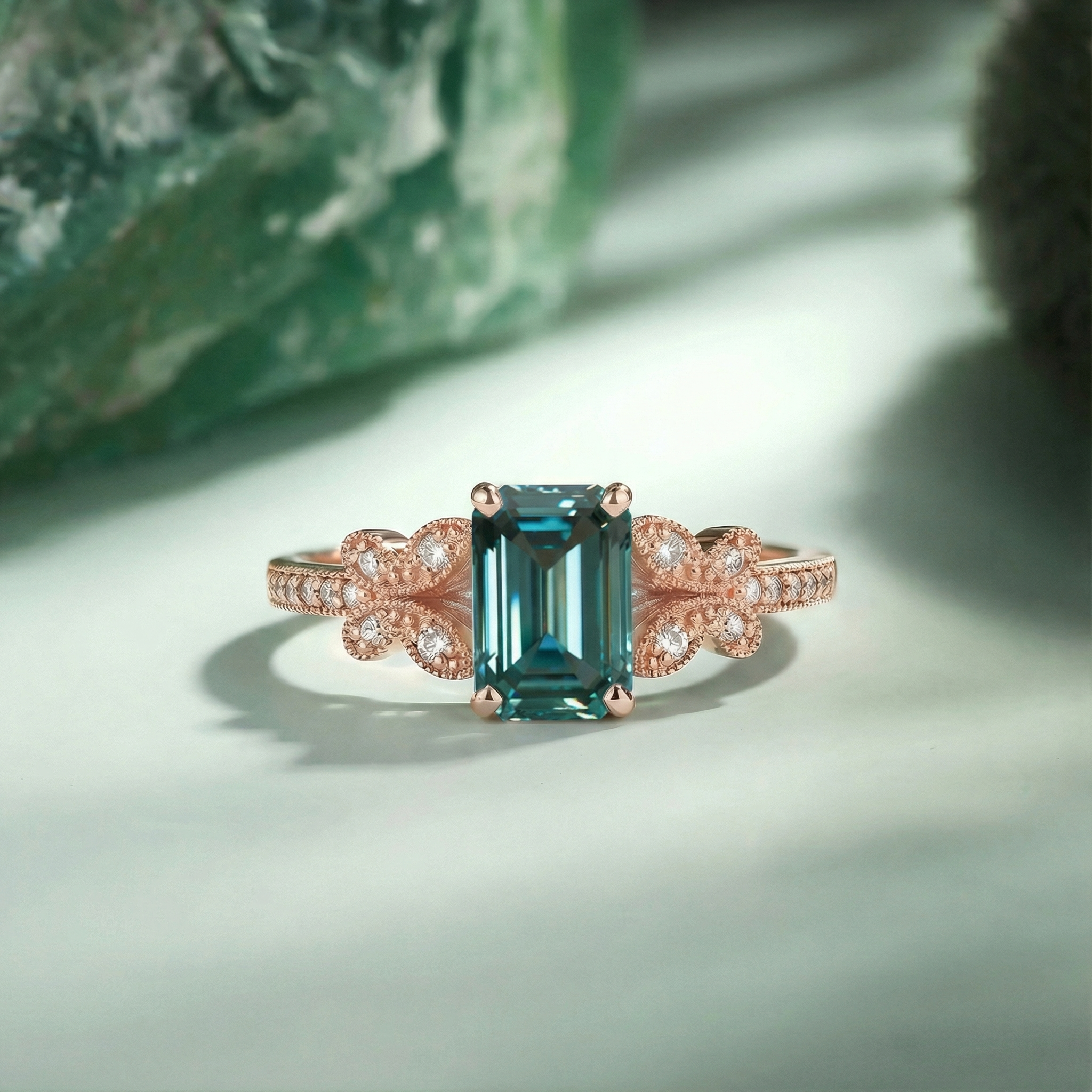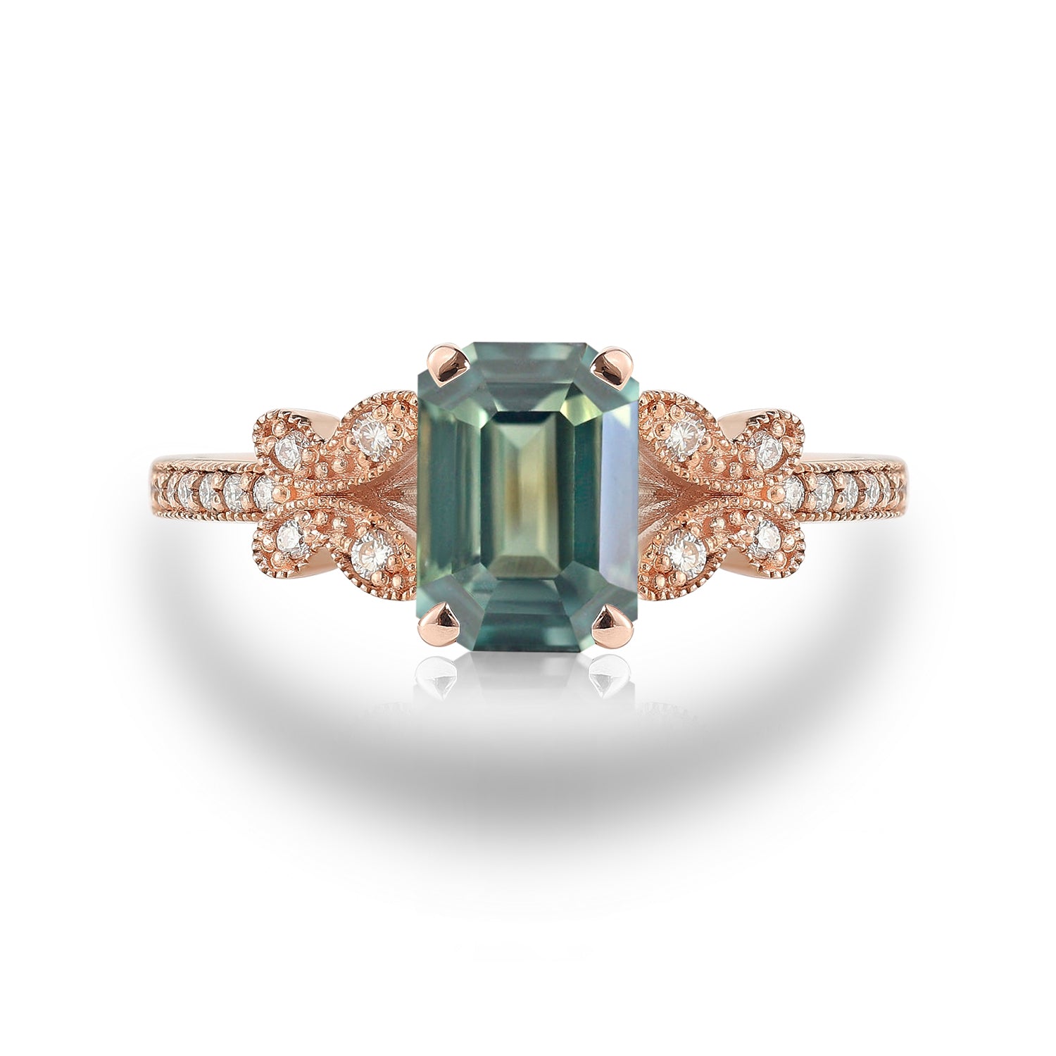 Emerald Cut Teal Sapphire Rose Gold Ring