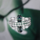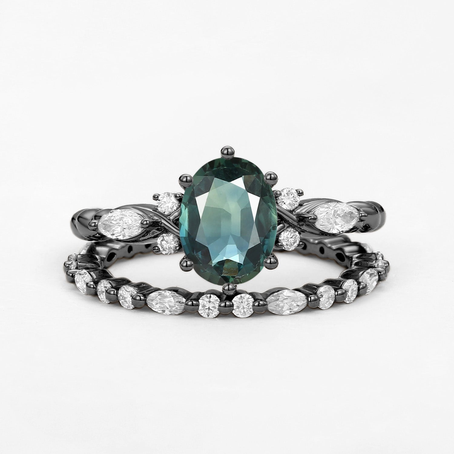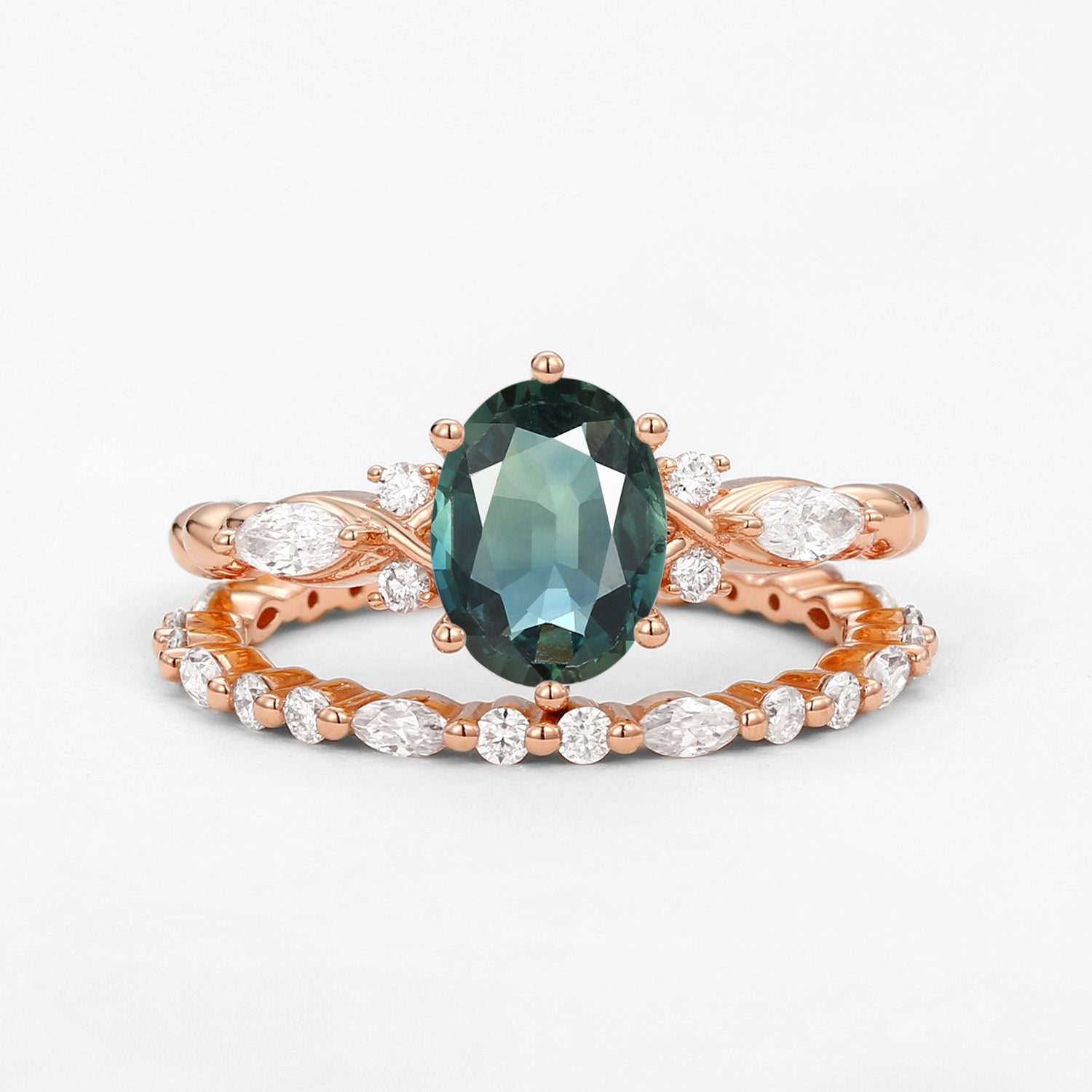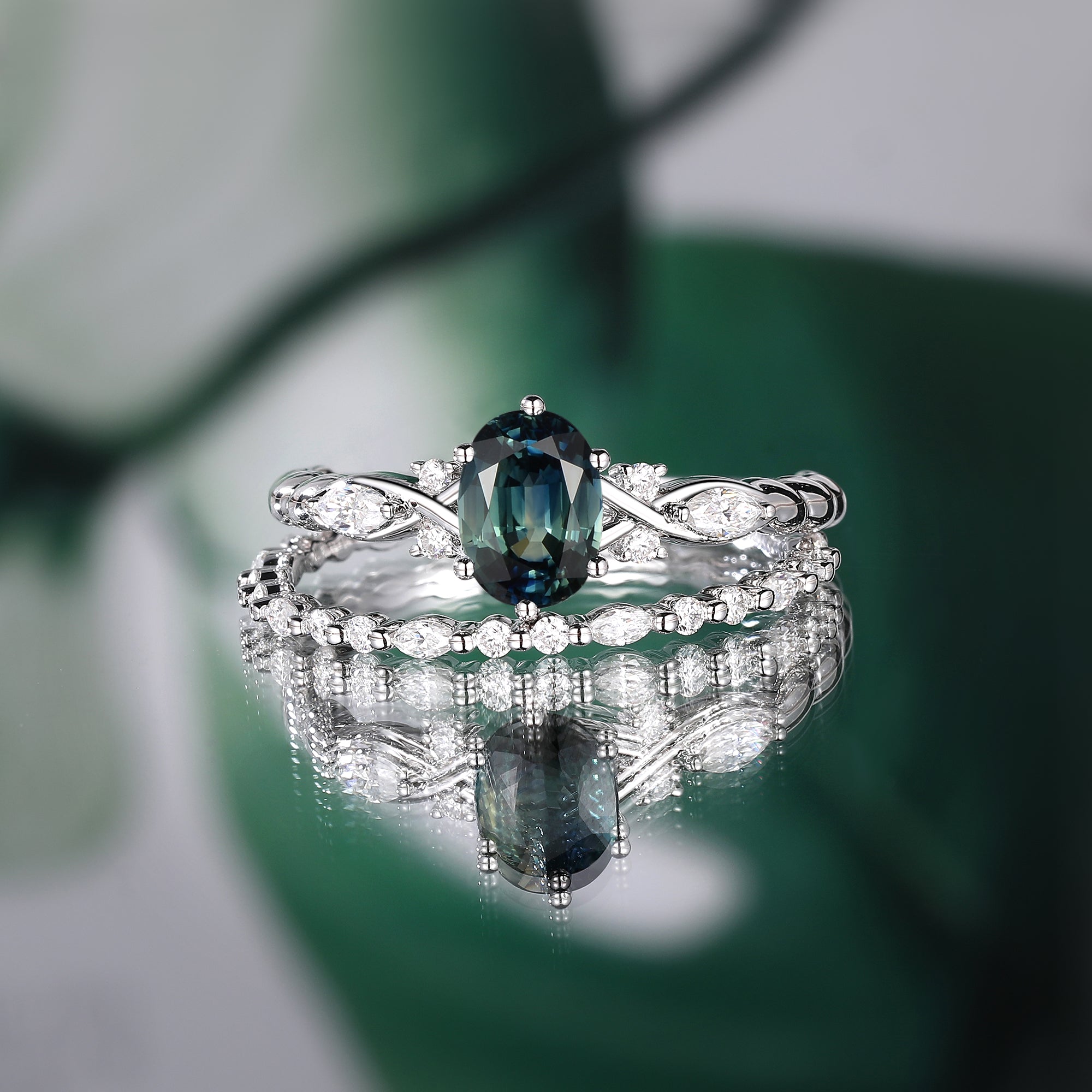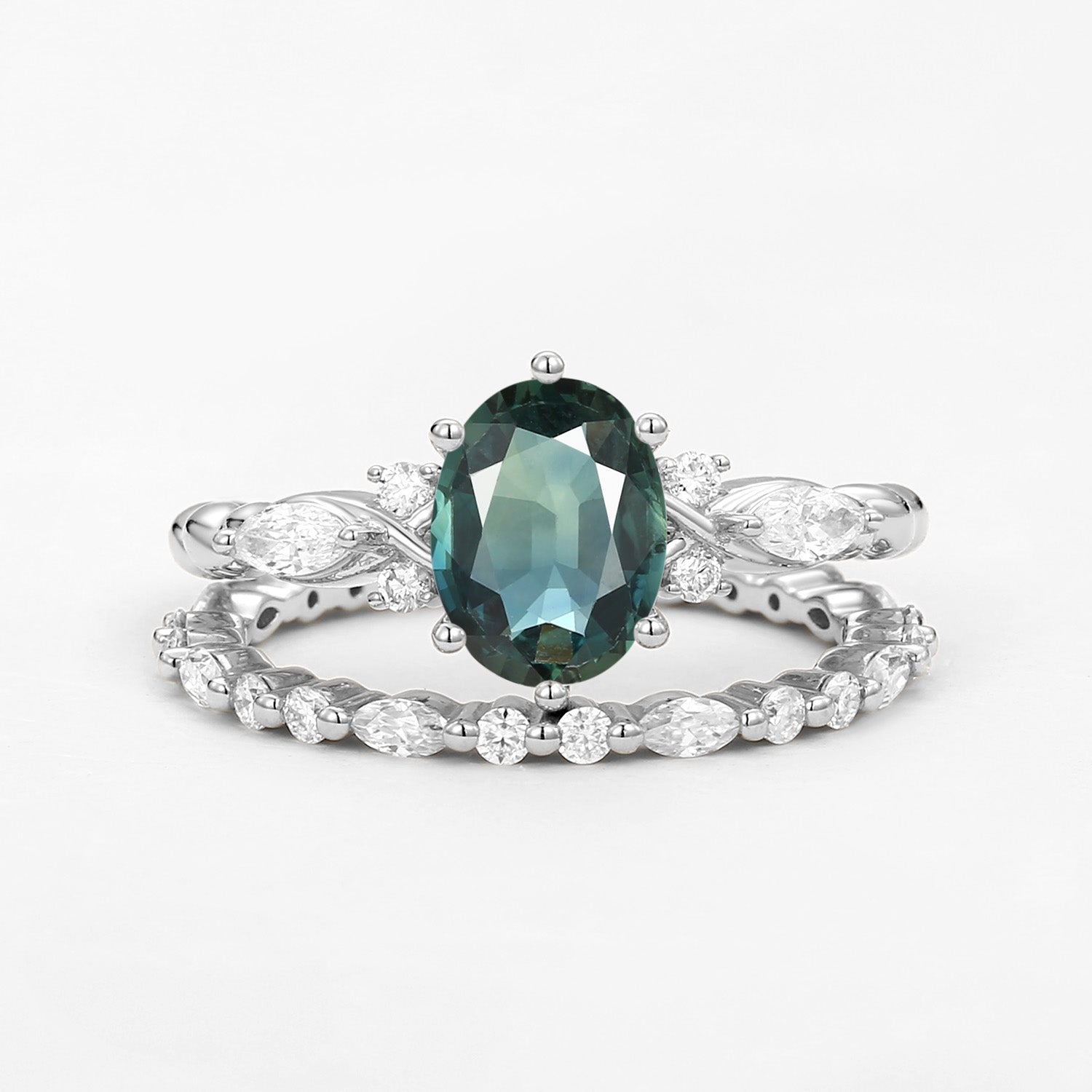 Infinity Oval Teal Sapphire Cluster Ring Set 2pcs