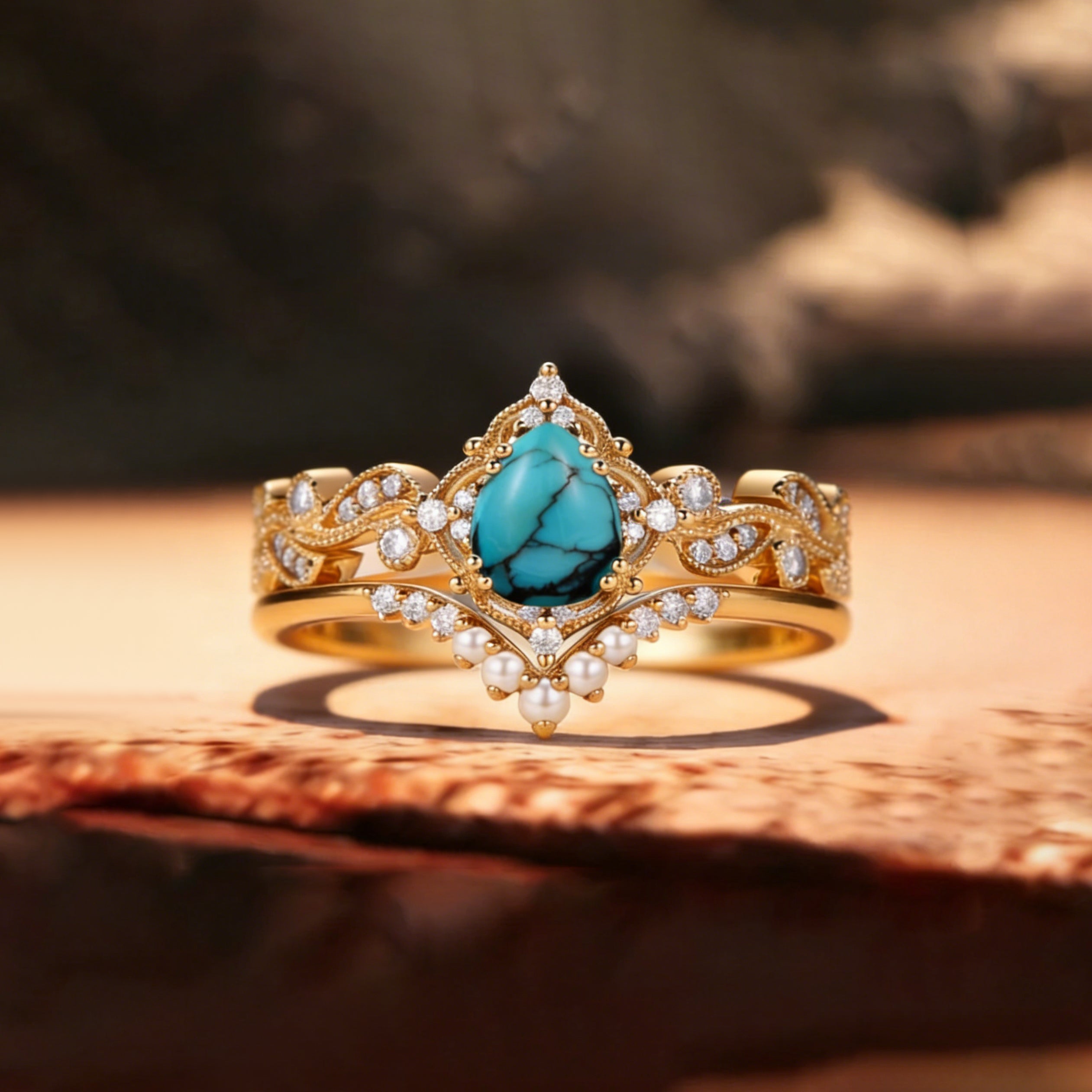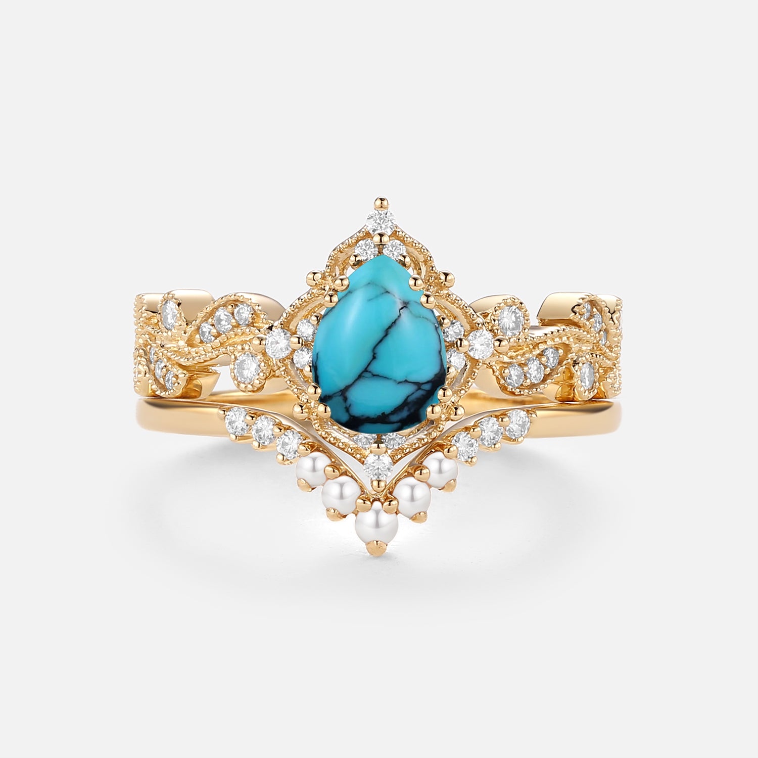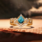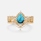 Pear Shaped Turquoise & Pearl Engagement Ring Set 2pcs - Harper