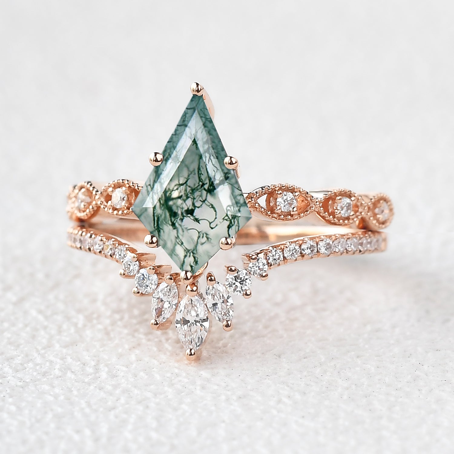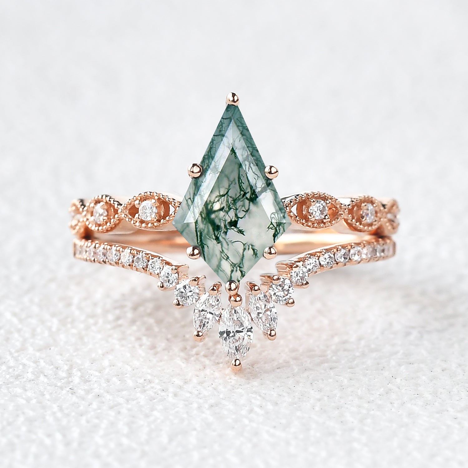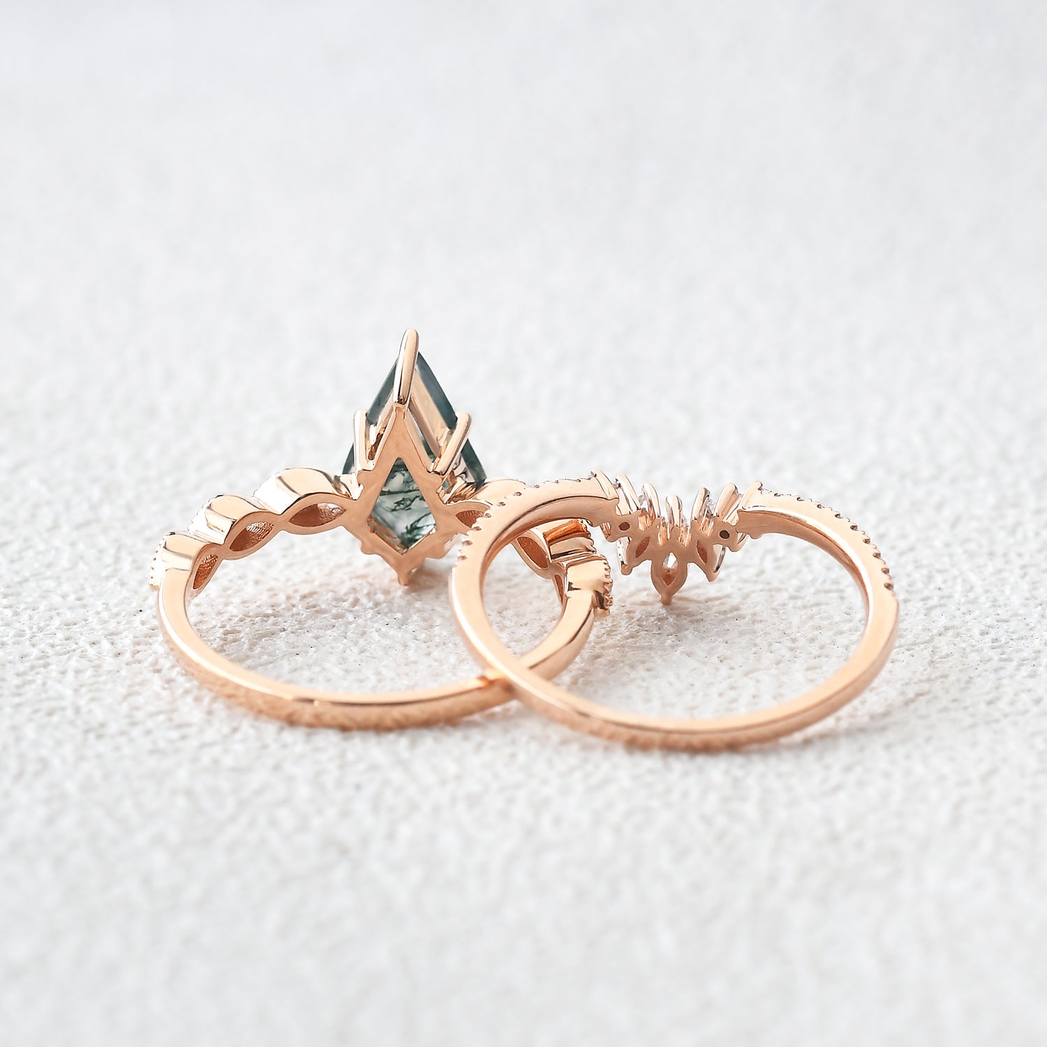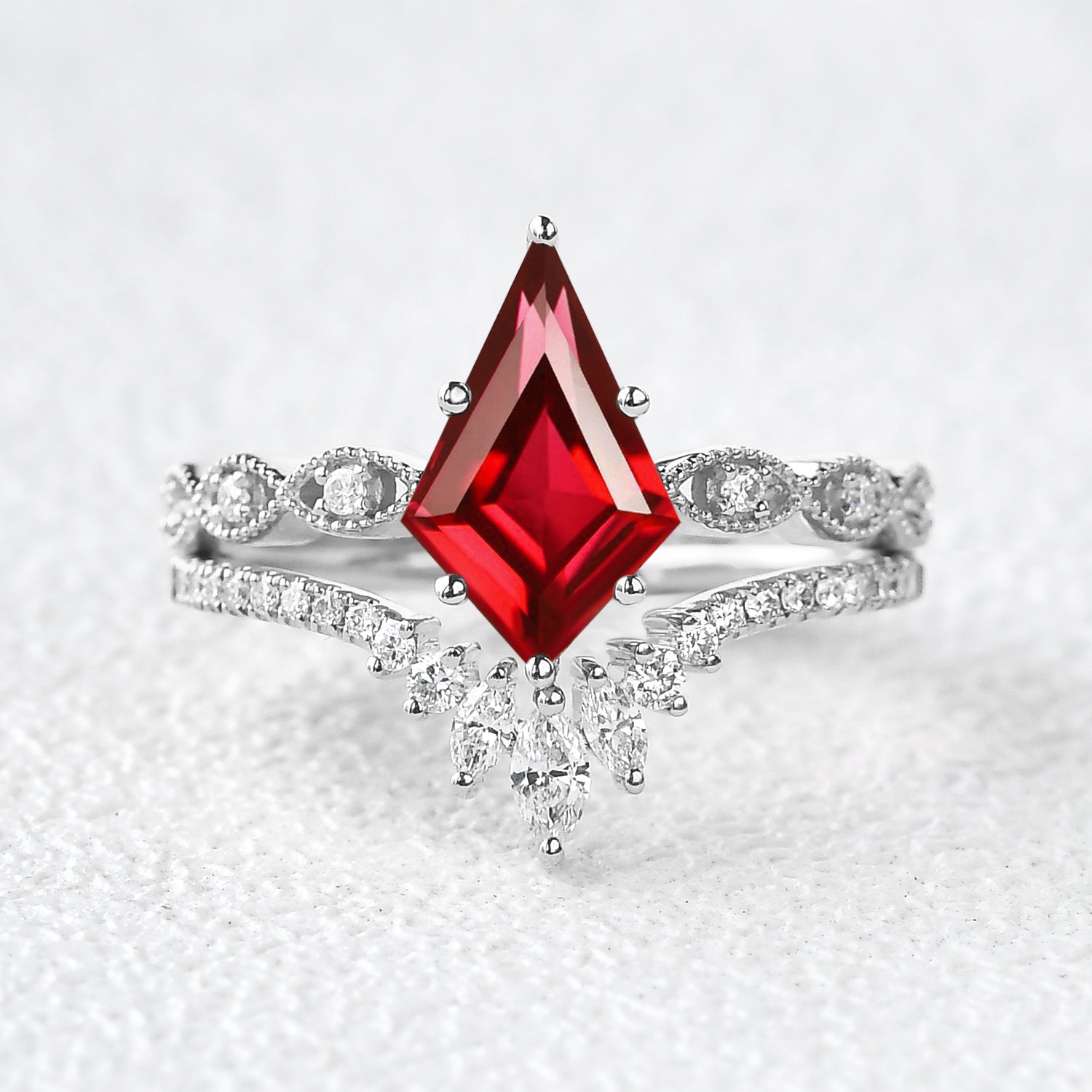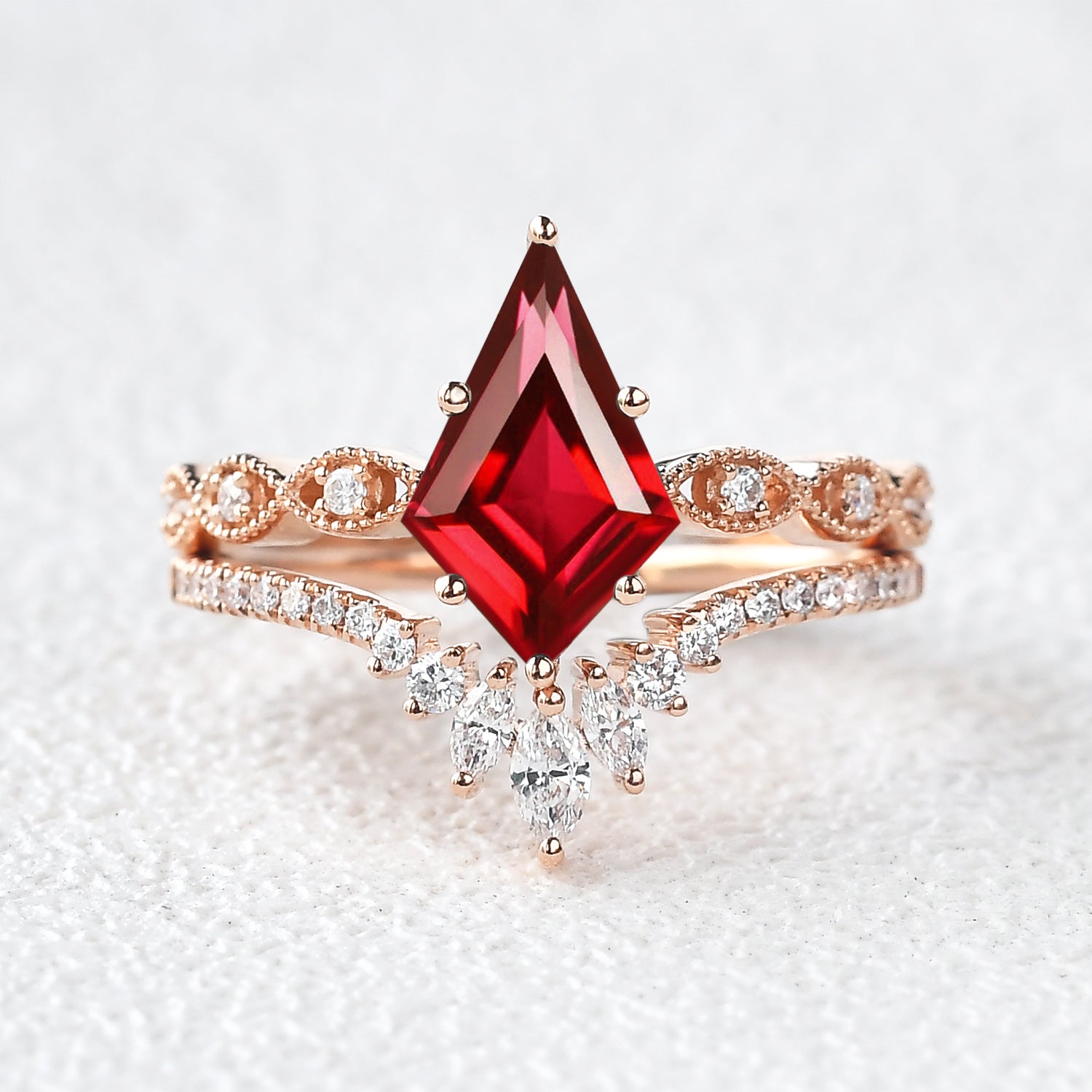 Unique Kite Cut Lab Ruby Engagement Ring Set 2pcs