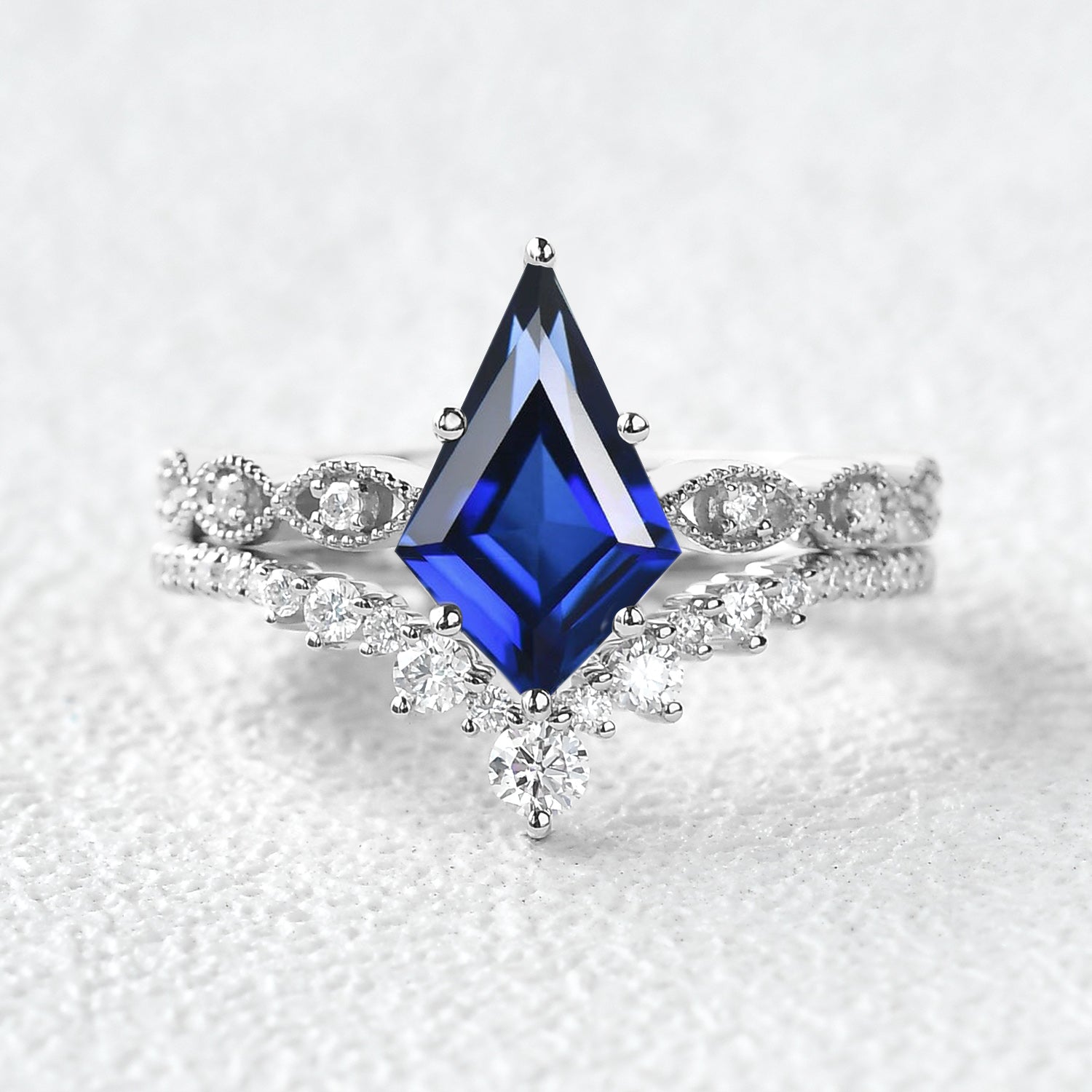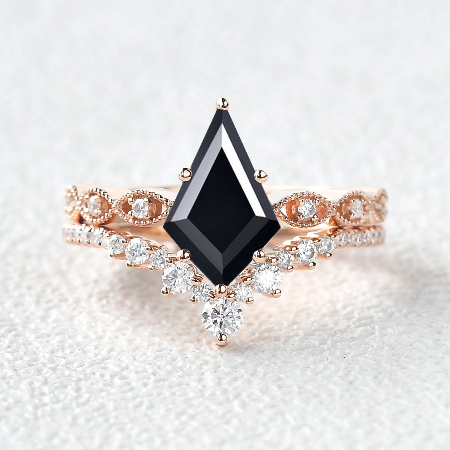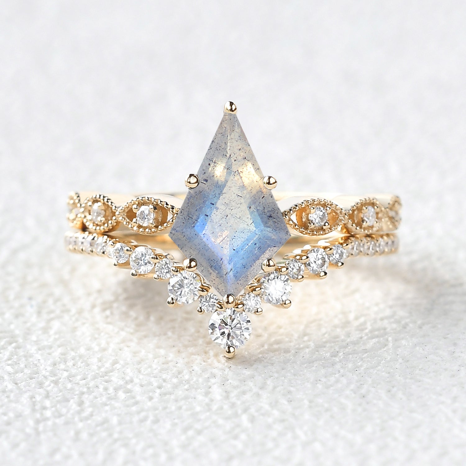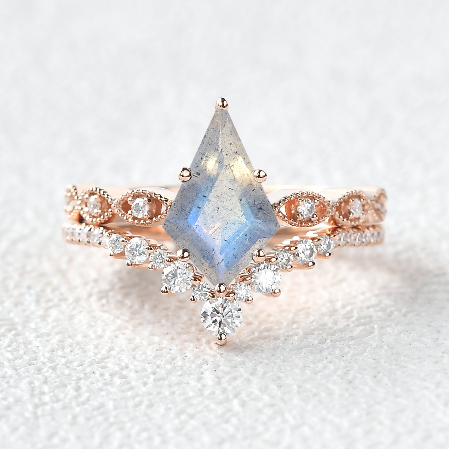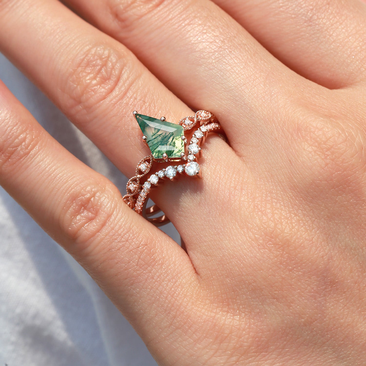2.0ct Vintage Kite Cut Moss Agate Engagement Ring Set 2pcs - Winona