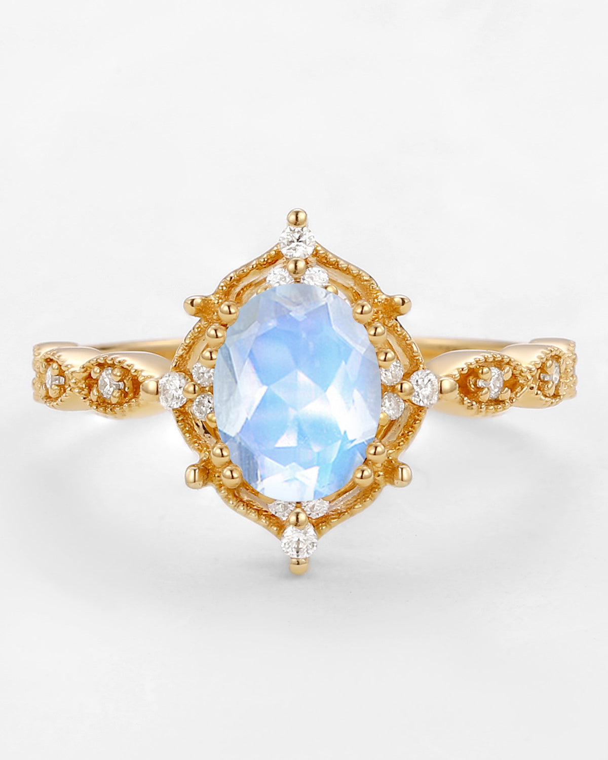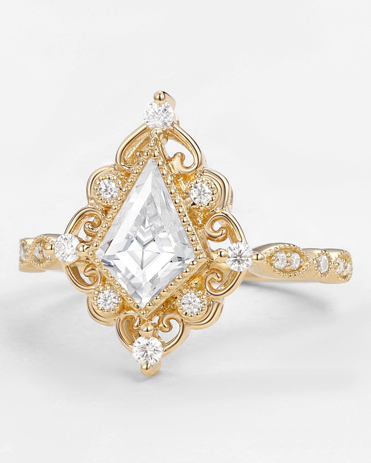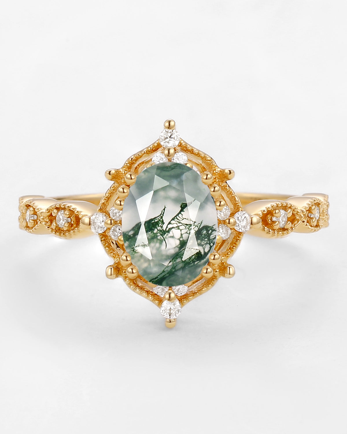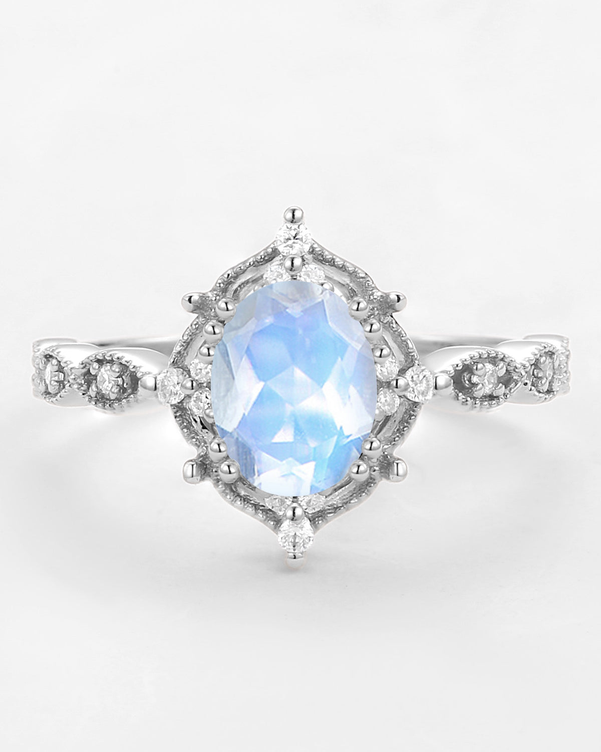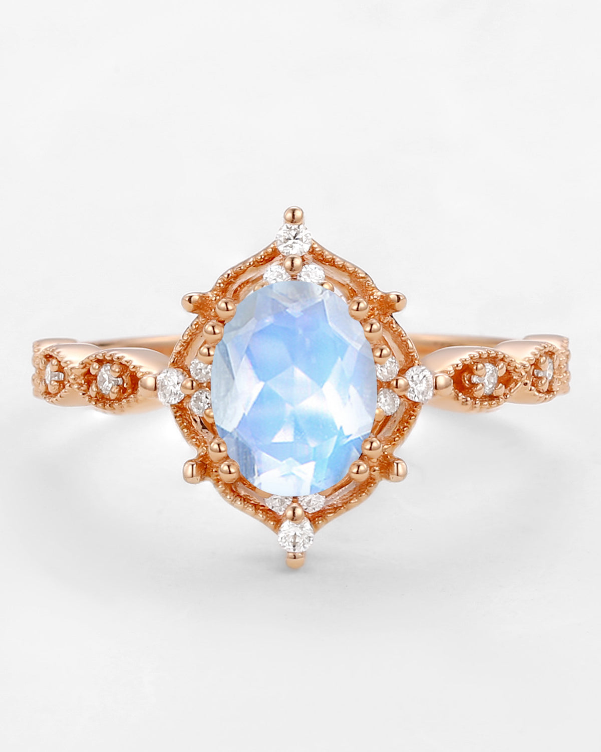 The Signature Vintage ring setting is surrounded by delicate milgrain band, making it visually soft and light. The oval engagement rings and the moissanite vintage wedding rings resembles lace, creating a dreamy and beautiful, lazy yet full of romantic atmosphere. Vintage moissanite engagement rings are luxurious and gorgeous, and it has a highly artistic touch, presenting a subtle and retro beauty.