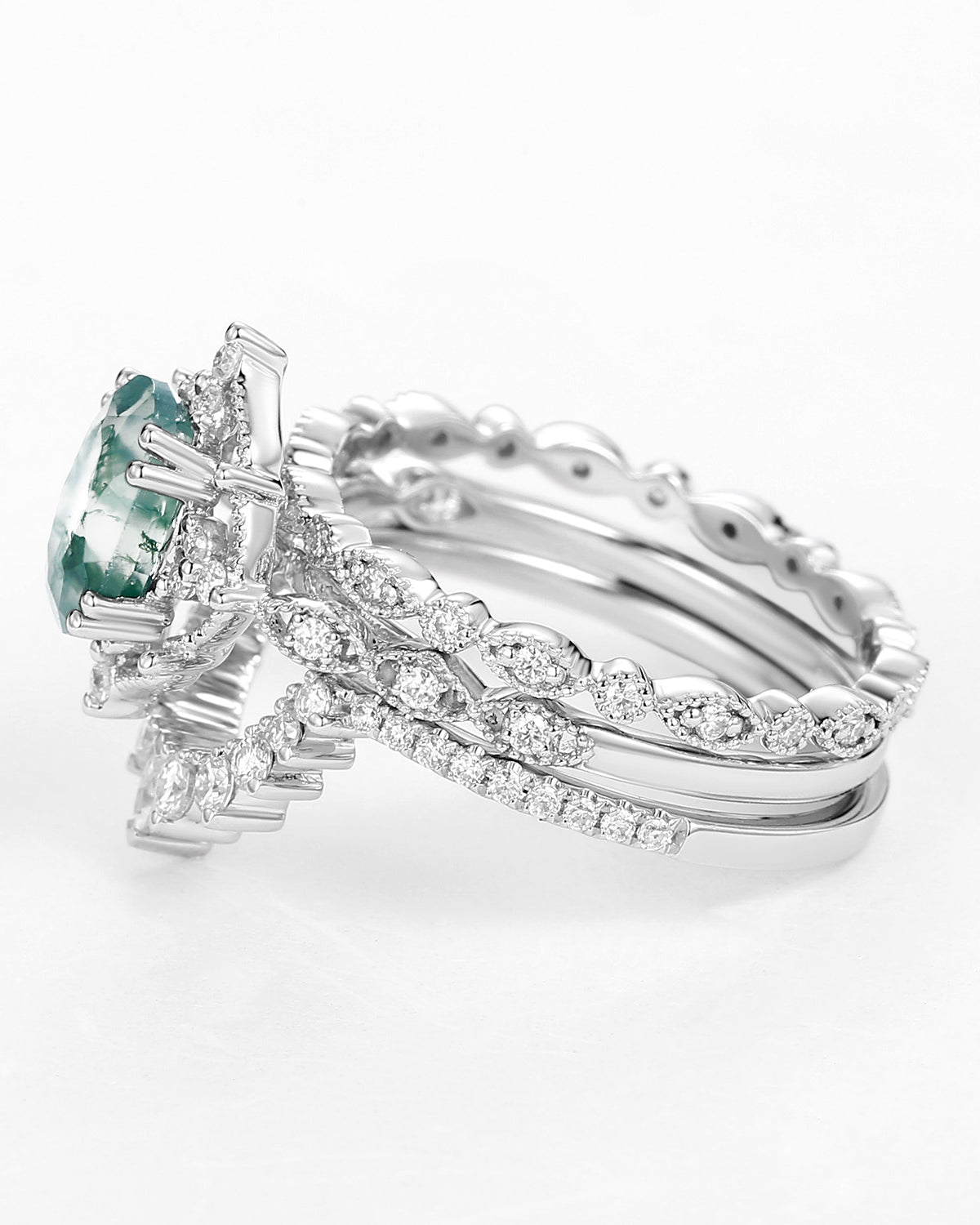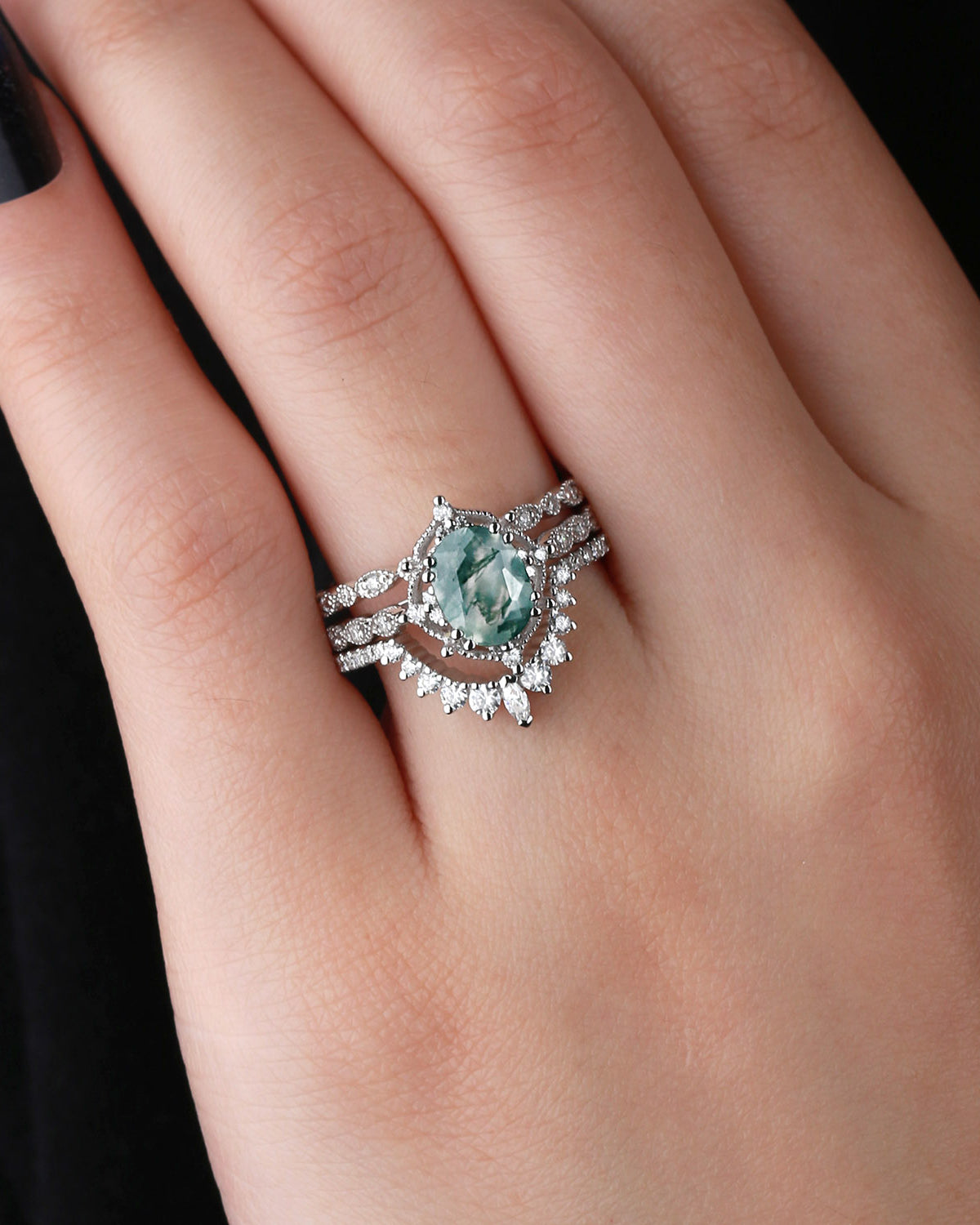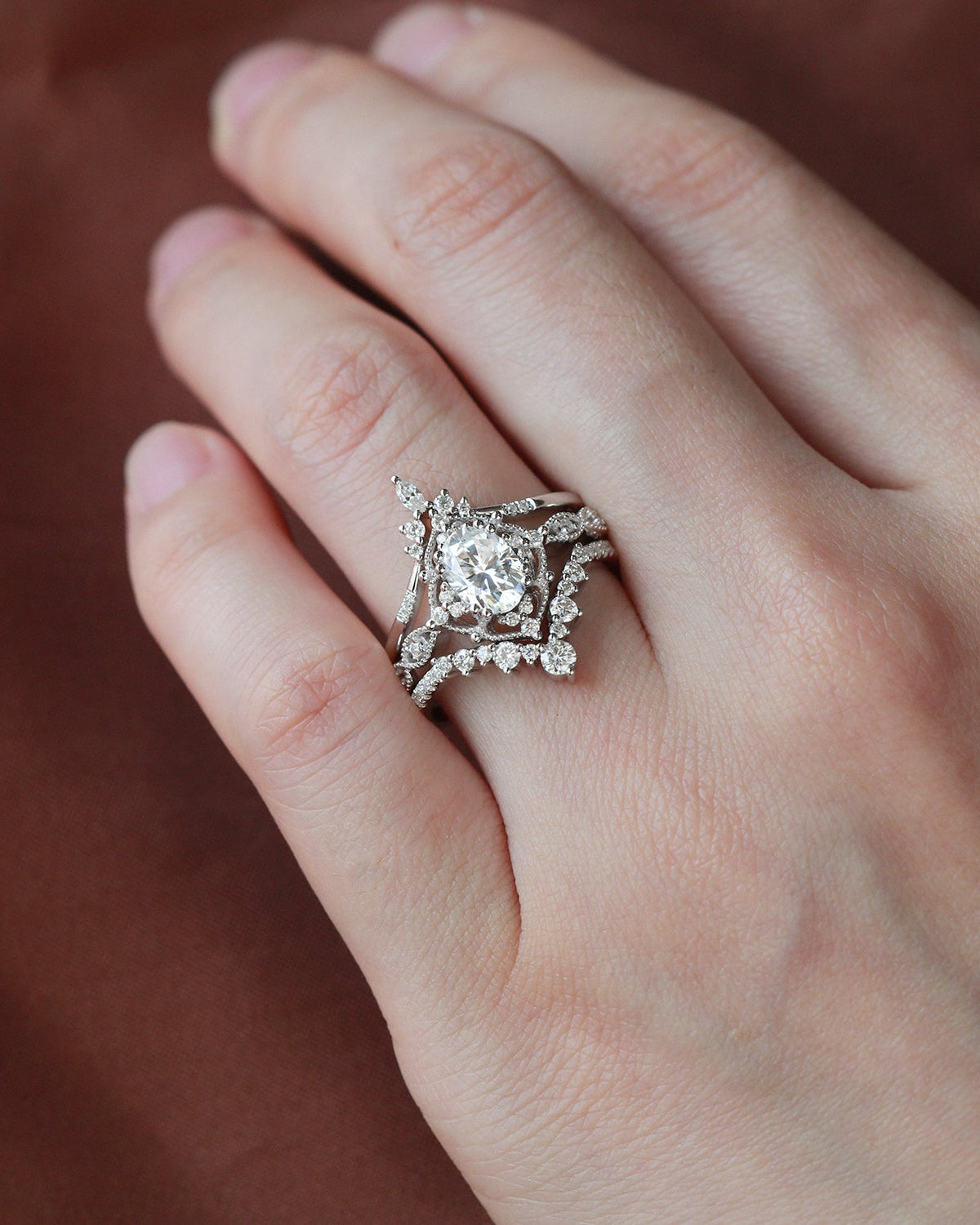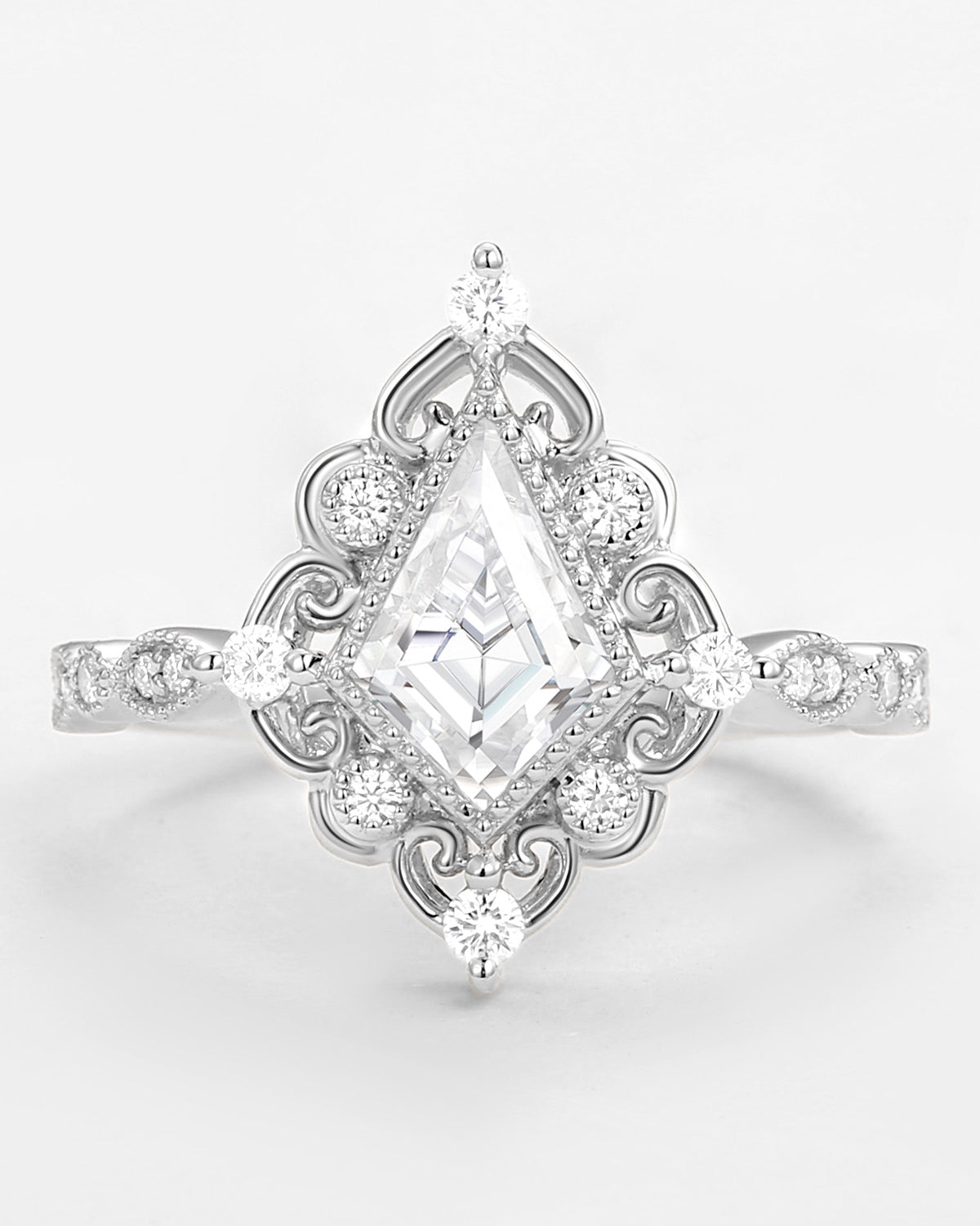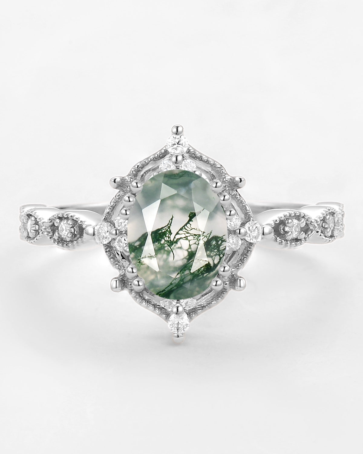 The Signature Vintage ring setting is surrounded by delicate milgrain band, making it visually soft and light. The oval engagement rings and the moissanite vintage wedding rings resembles lace, creating a dreamy and beautiful, lazy yet full of romantic atmosphere. Vintage moissanite engagement rings are luxurious and gorgeous, and it has a highly artistic touch, presenting a subtle and retro beauty.