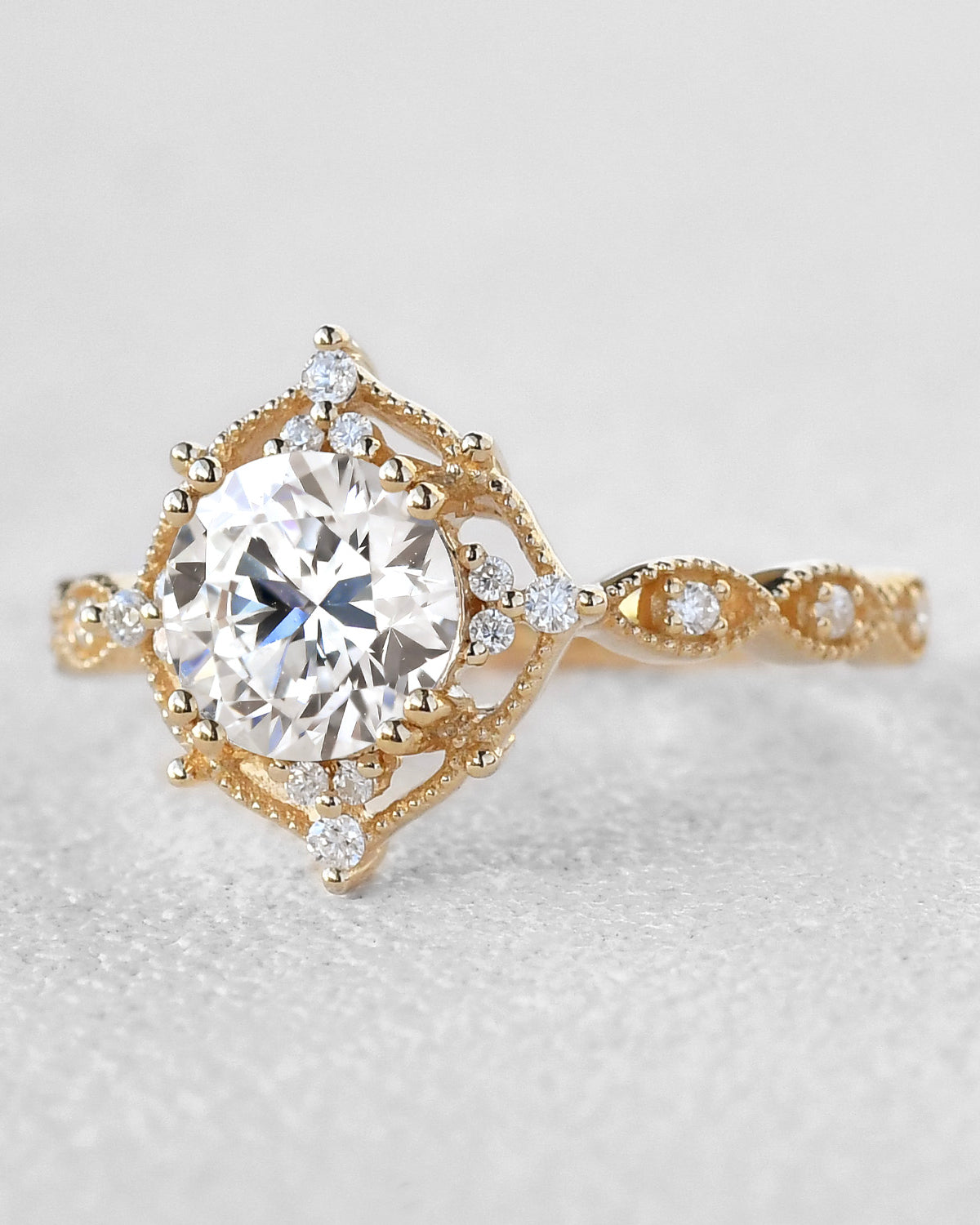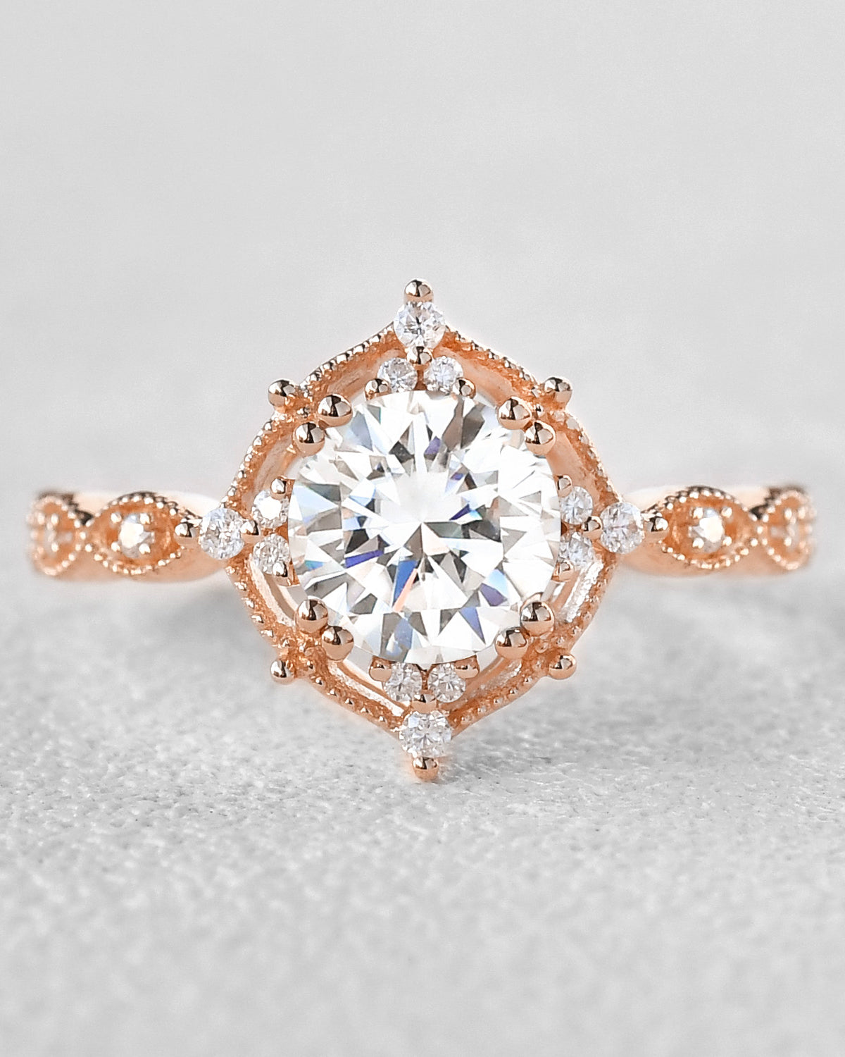 Felicegals Signature Vintage moissanite rings symbolizes eternal love and cherishing the past time, and the continuous beaded milgrain represents the continuous love.