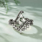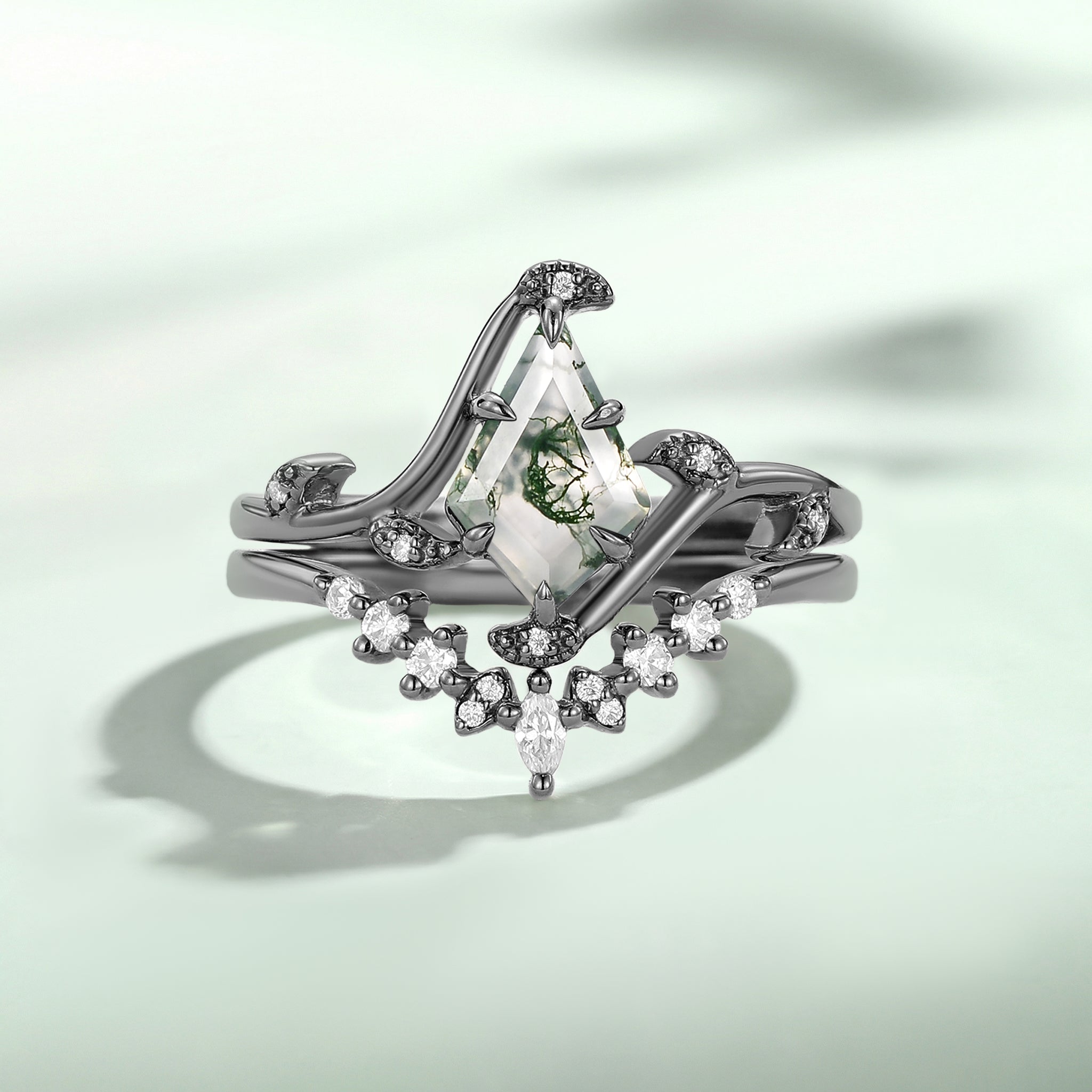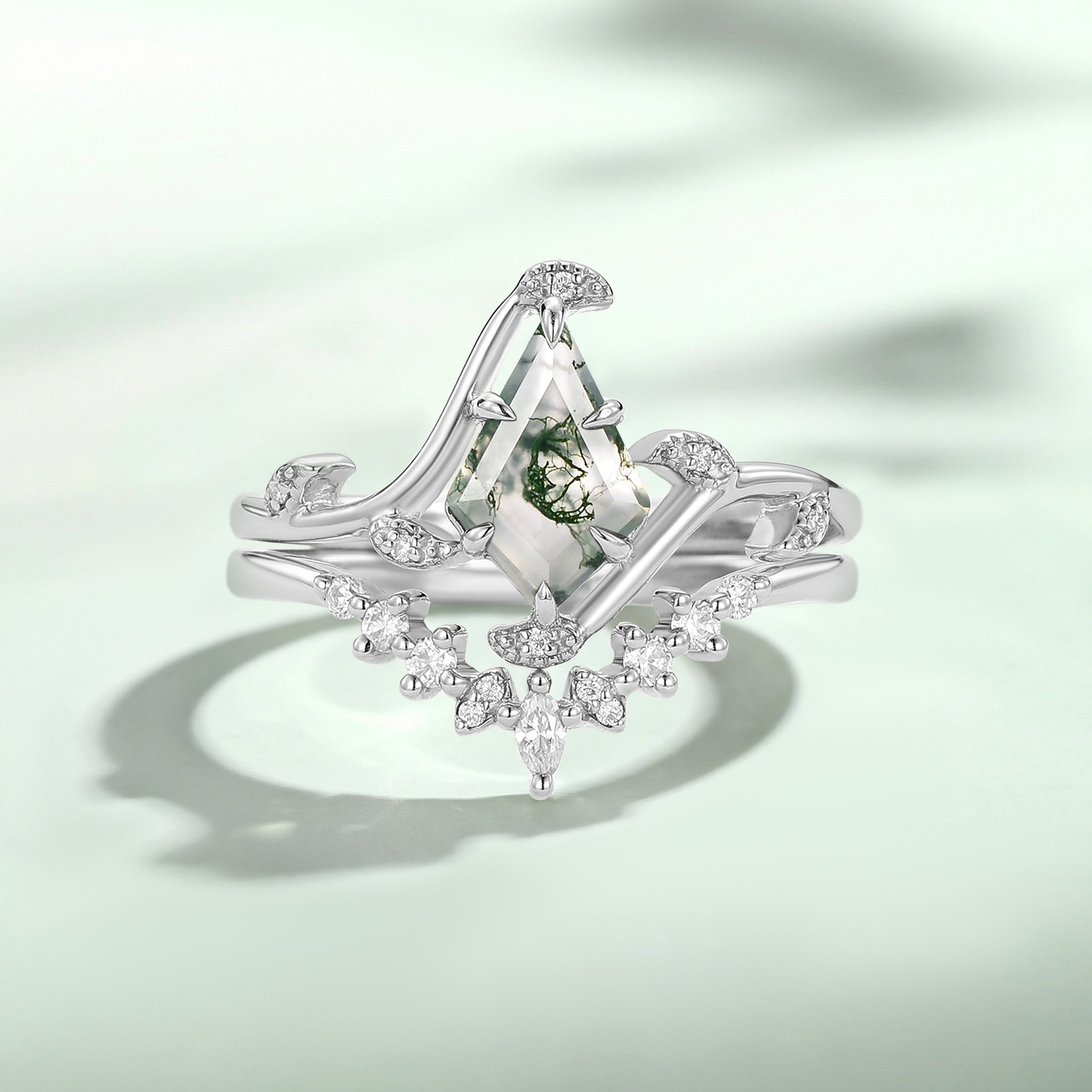 Kite Cut Moss Agate Leafy Engagement Ring Set 2pcs - Ivy