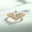 Pear Cut Moss Agate Leaf Ring Set 2pcs - Aureolin