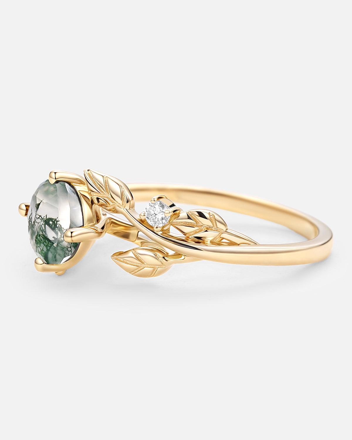 Every piece in the Summer Moss Agate Engagement Ring series is made to mirror the brightness of summer and the sincerity of true love. At its core, a transparent-based moss agate shines with a gentle luminosity—light passes through the clear base, making the moss patterns look like they’re floating in air, delicate yet unhidden. This is the magic of the series—it doesn’t just celebrate summer; it honors the truth of love. The transparent-based moss agate doesn’t hide its beauty, and neither should your heart, because True love reveals true heart. This ring turns that idea into something you can wear, eternal and bright, no matter the season.