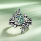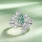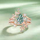 Leafy Kite Cut Moss Agate Engagement Ring Set 3pcs - Kairi
