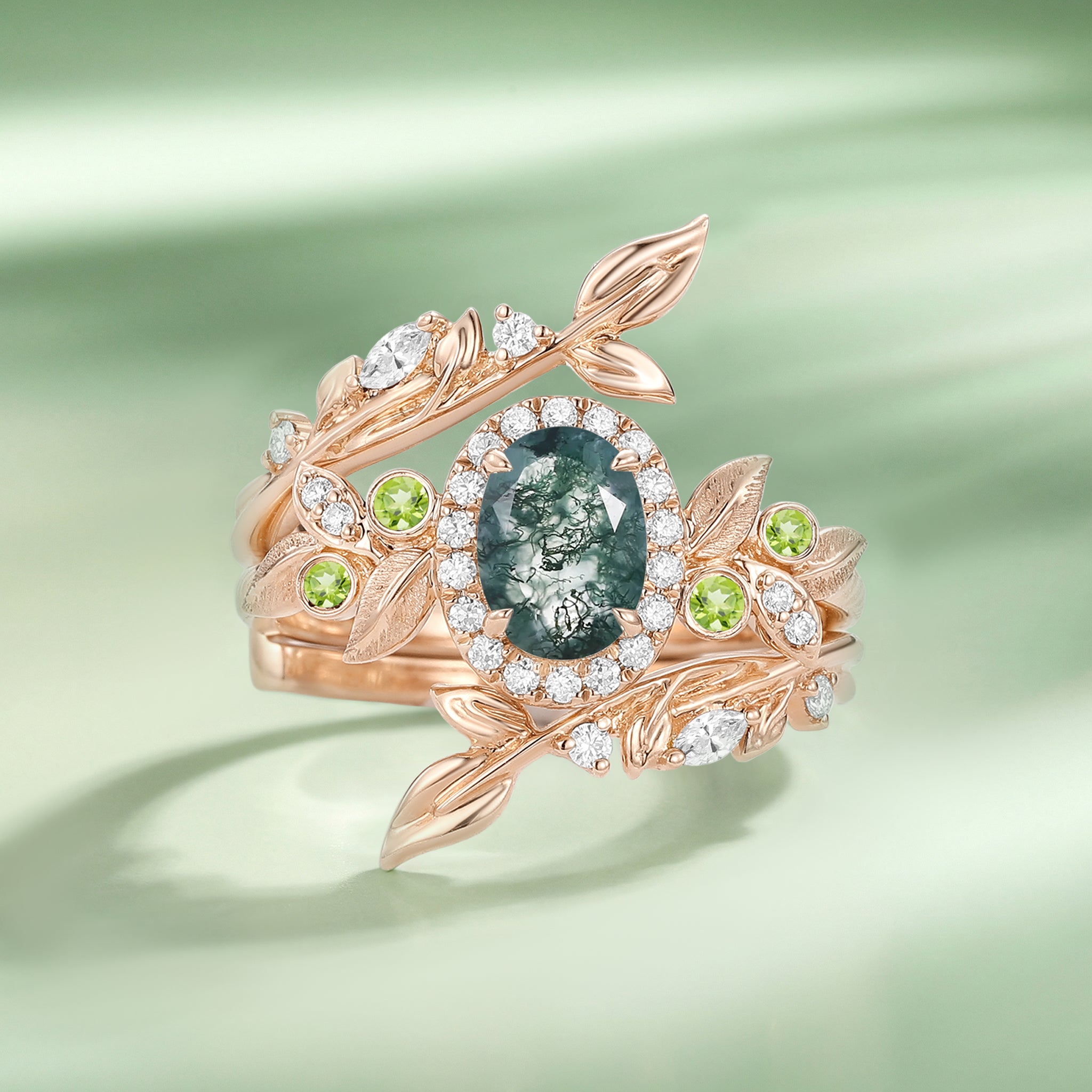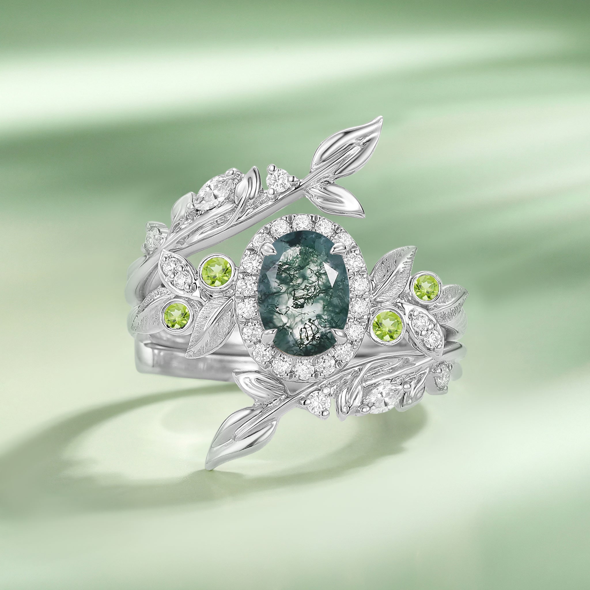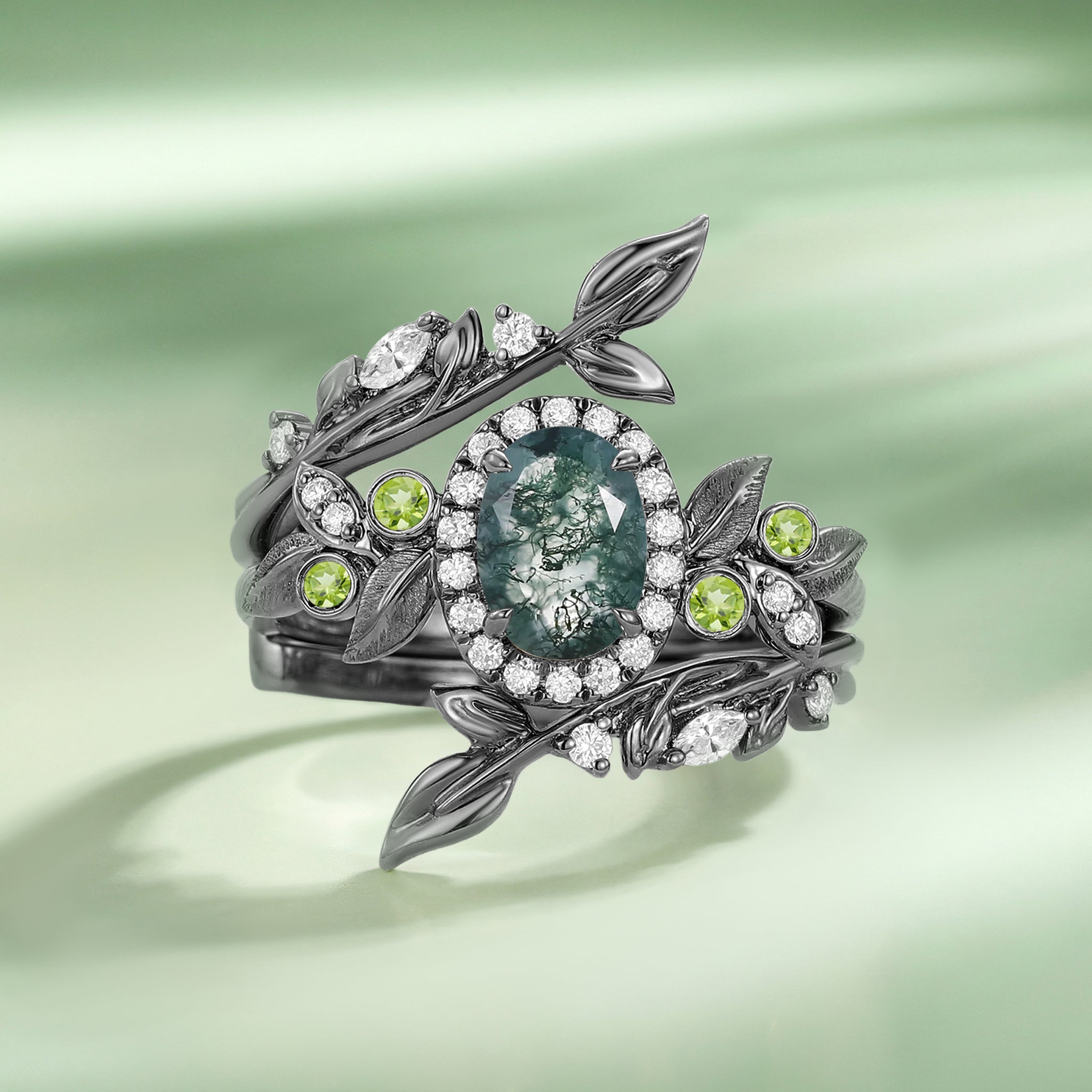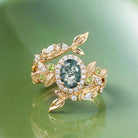 Nature Inspired - Oval Moss Agate Vine Enhancer Ring Set 2pcs - Veyra