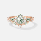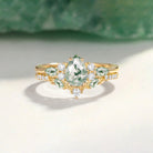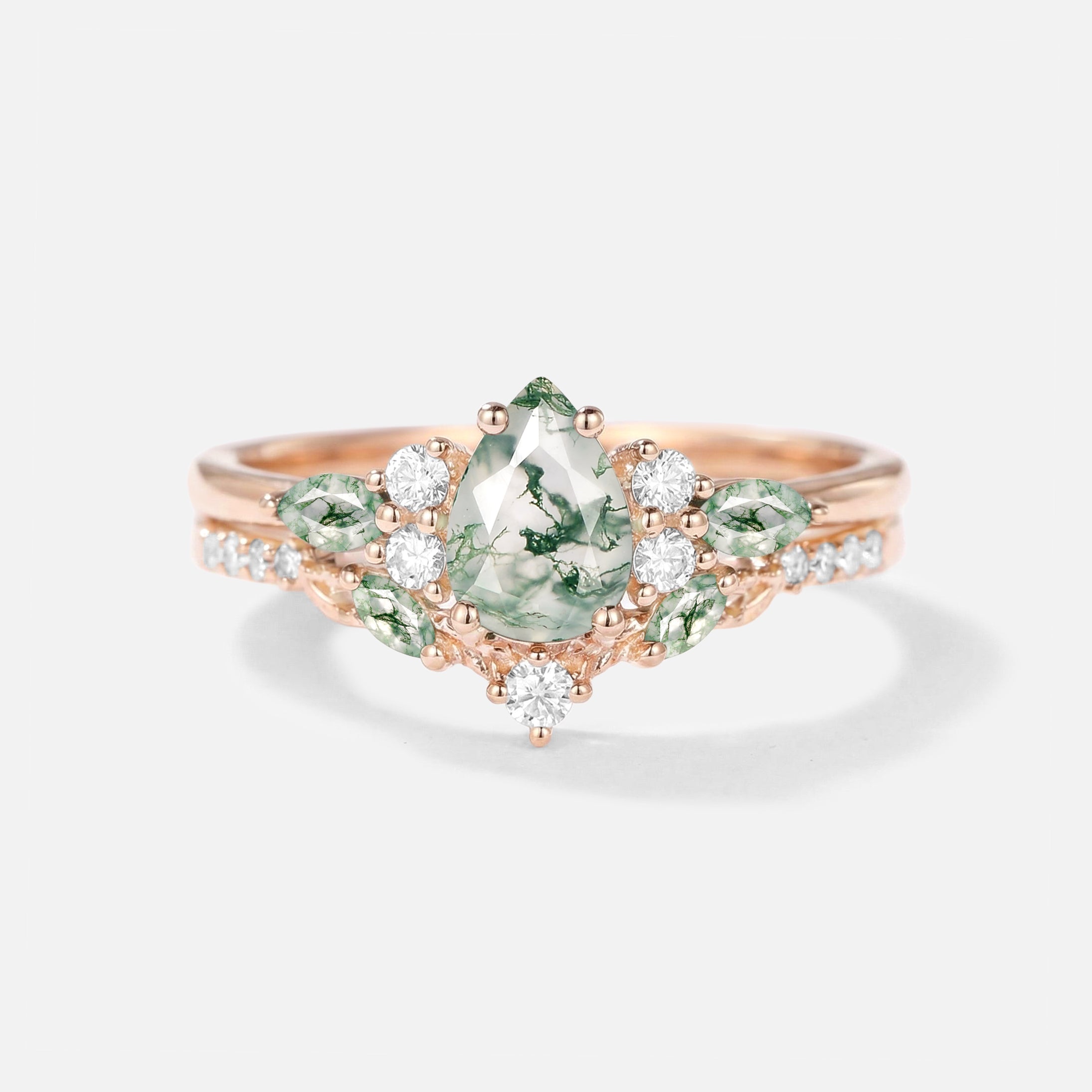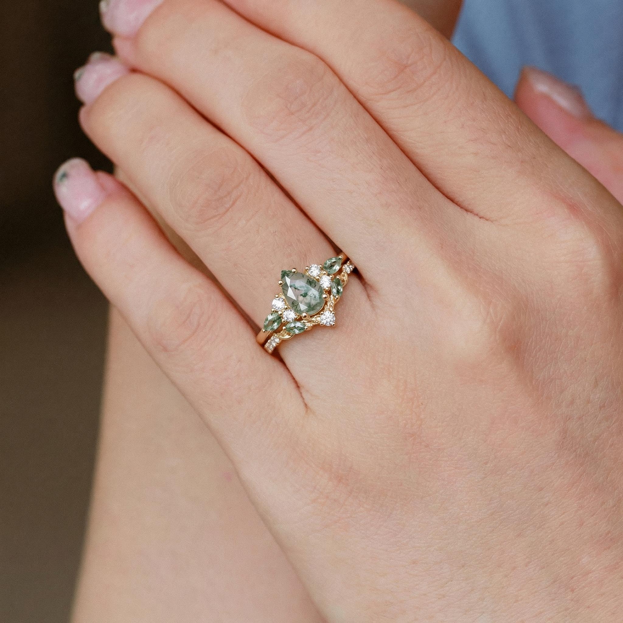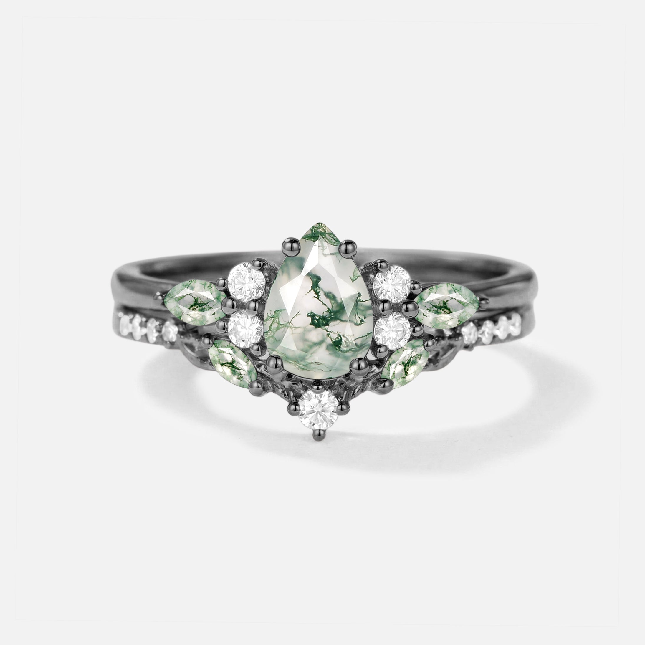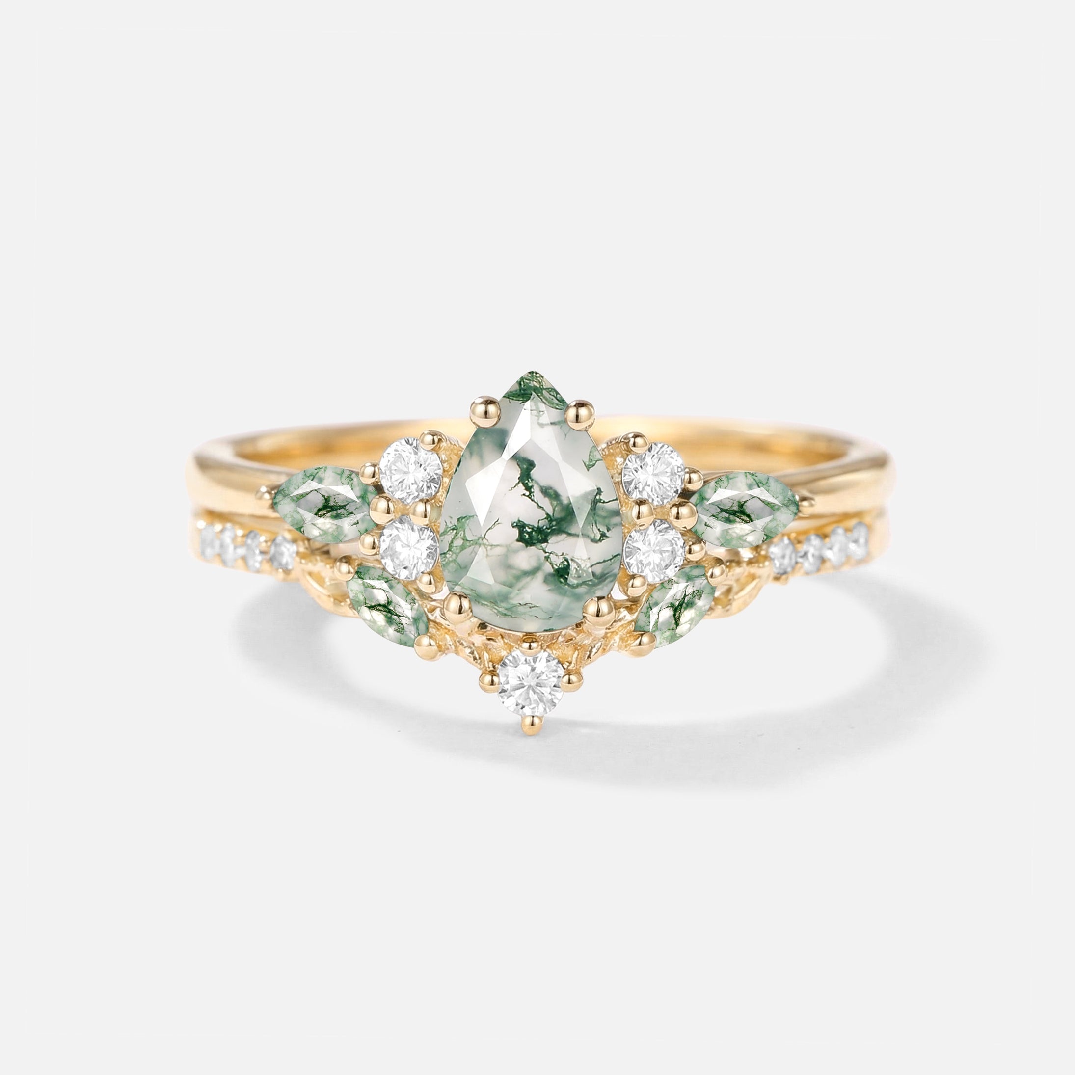 Pear Cut Green Moss Agate Engagement Ring Set 2pcs - Aine