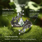 Featuring a kite-cut moss agate center stone surrounded by hand-engraved vines, the main ring structurally interlocks with its cage band. Like a vine that grows stronger as it climbs, true love embraces life’s twists with unwavering grace. This ring honors love not as a static gem, but as a living bond—rooted in commitment, yet ever-evolving.