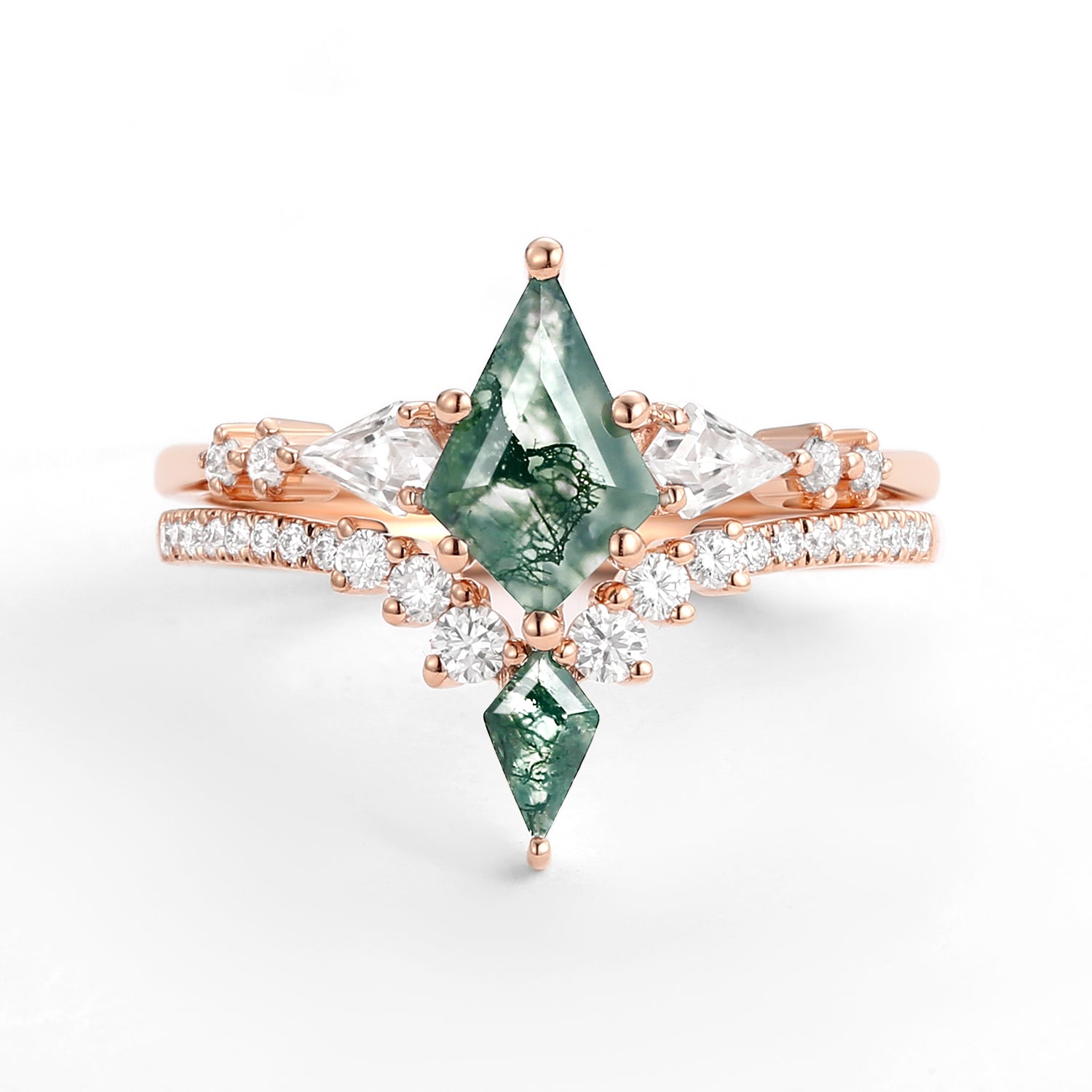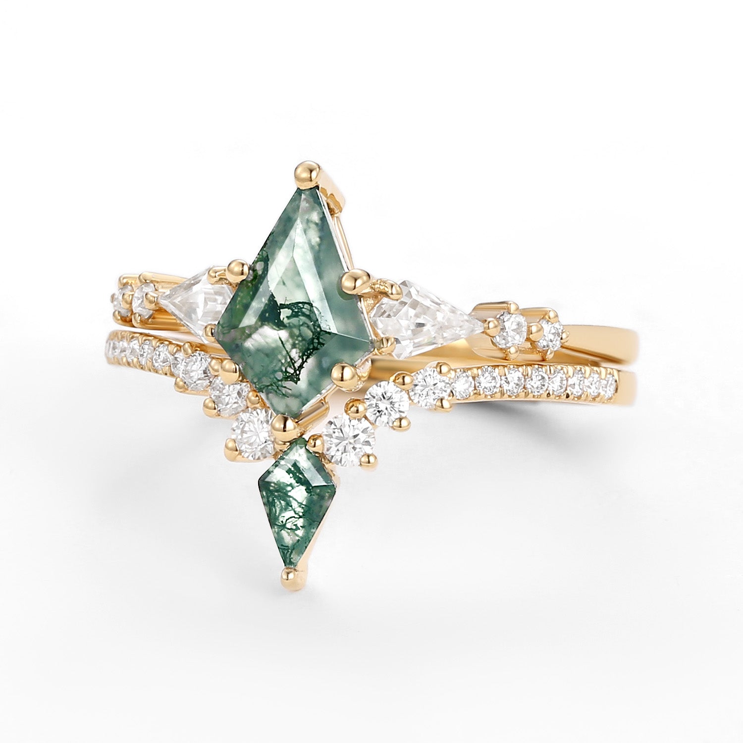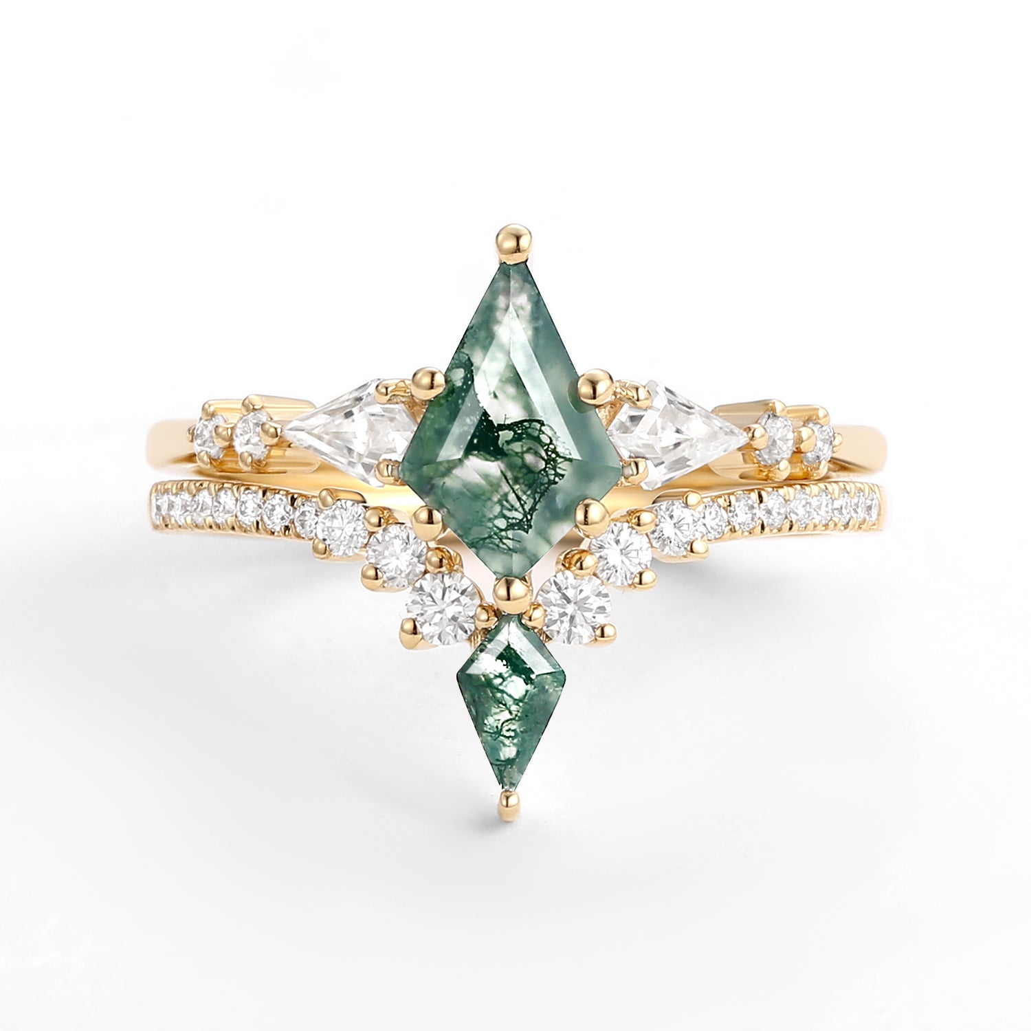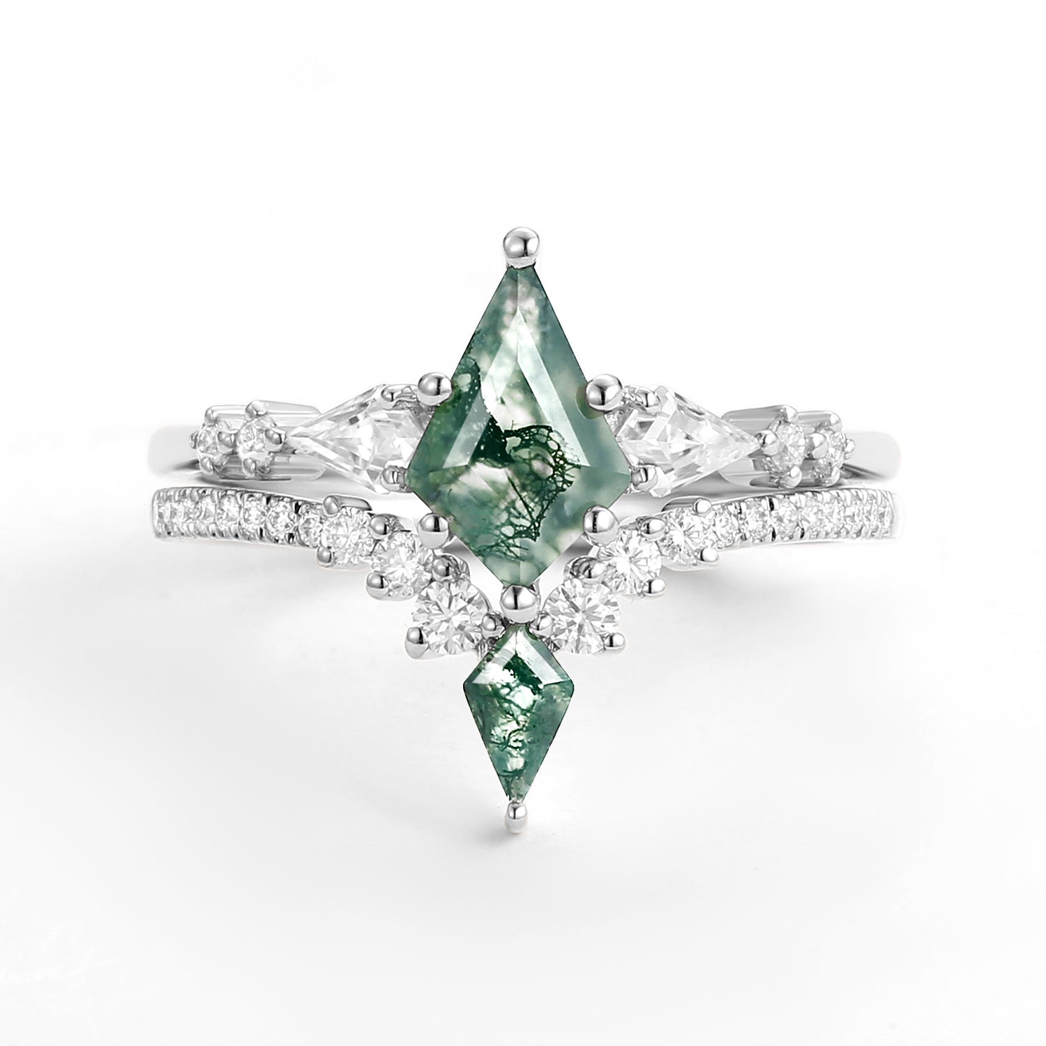 Twin Flames - Women Kite Moss Agate Wedding Ring Sets 2pcs - Zendaya