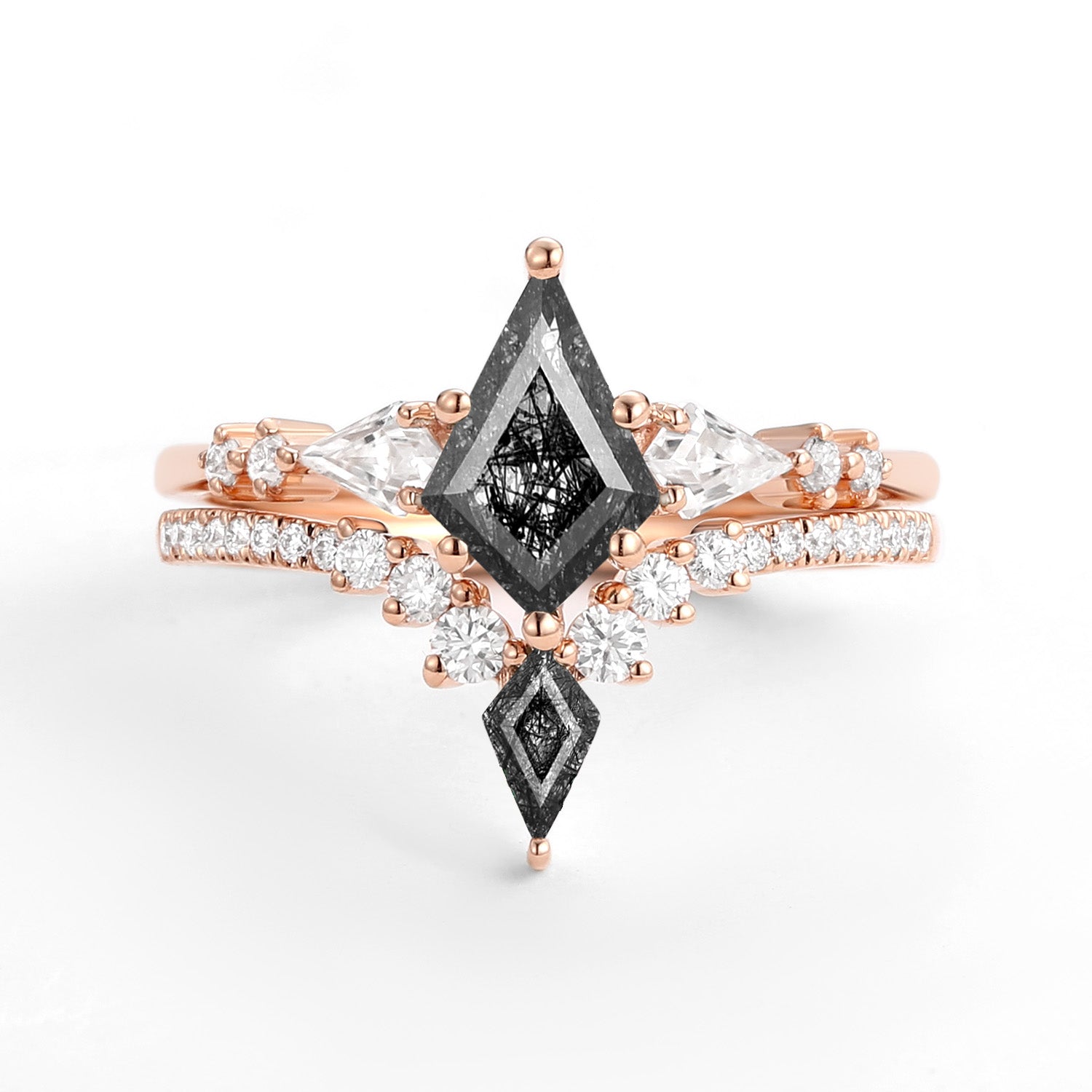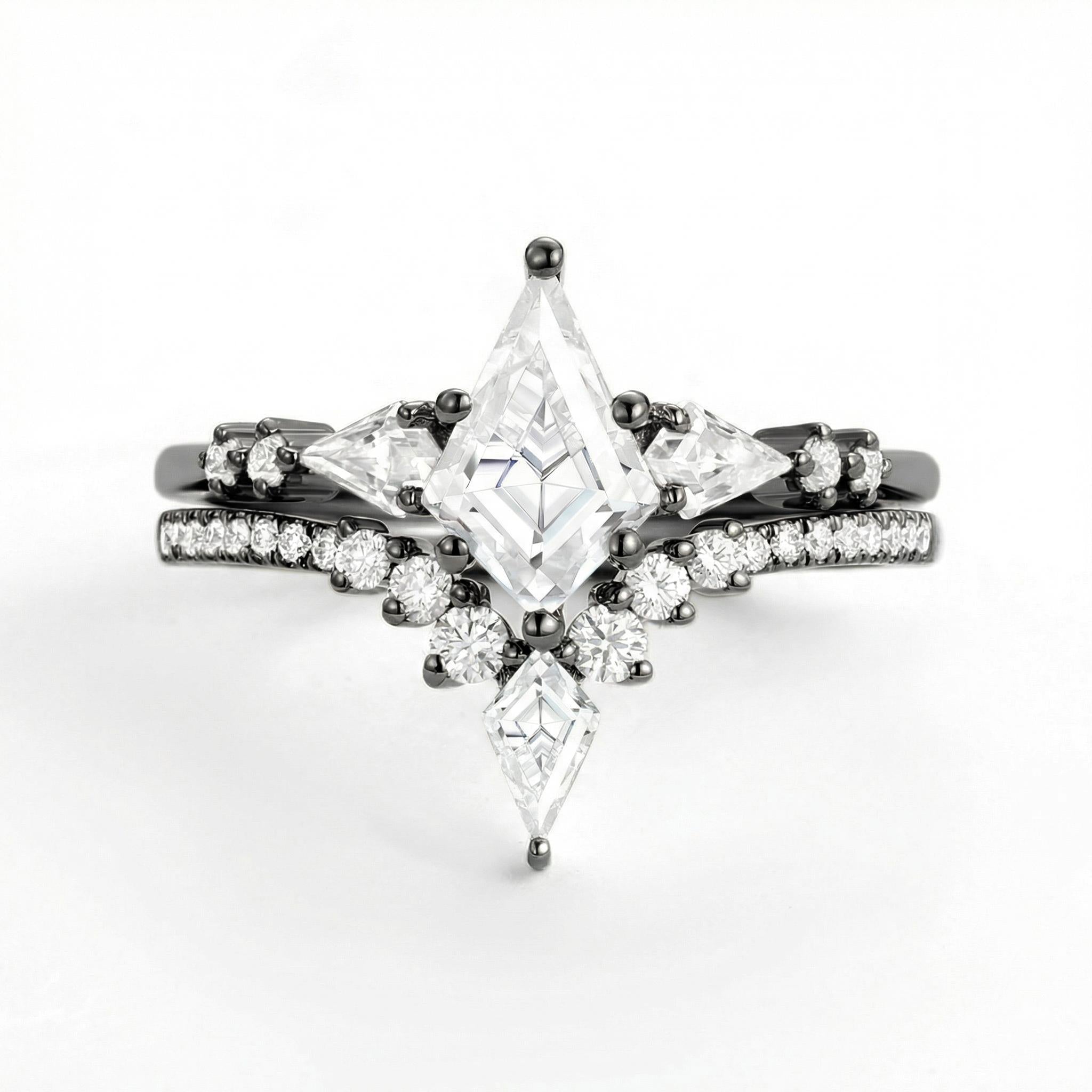 - Colourless Moissanite Accents, the kite-shaped stone on the side stones change together with the center stone.