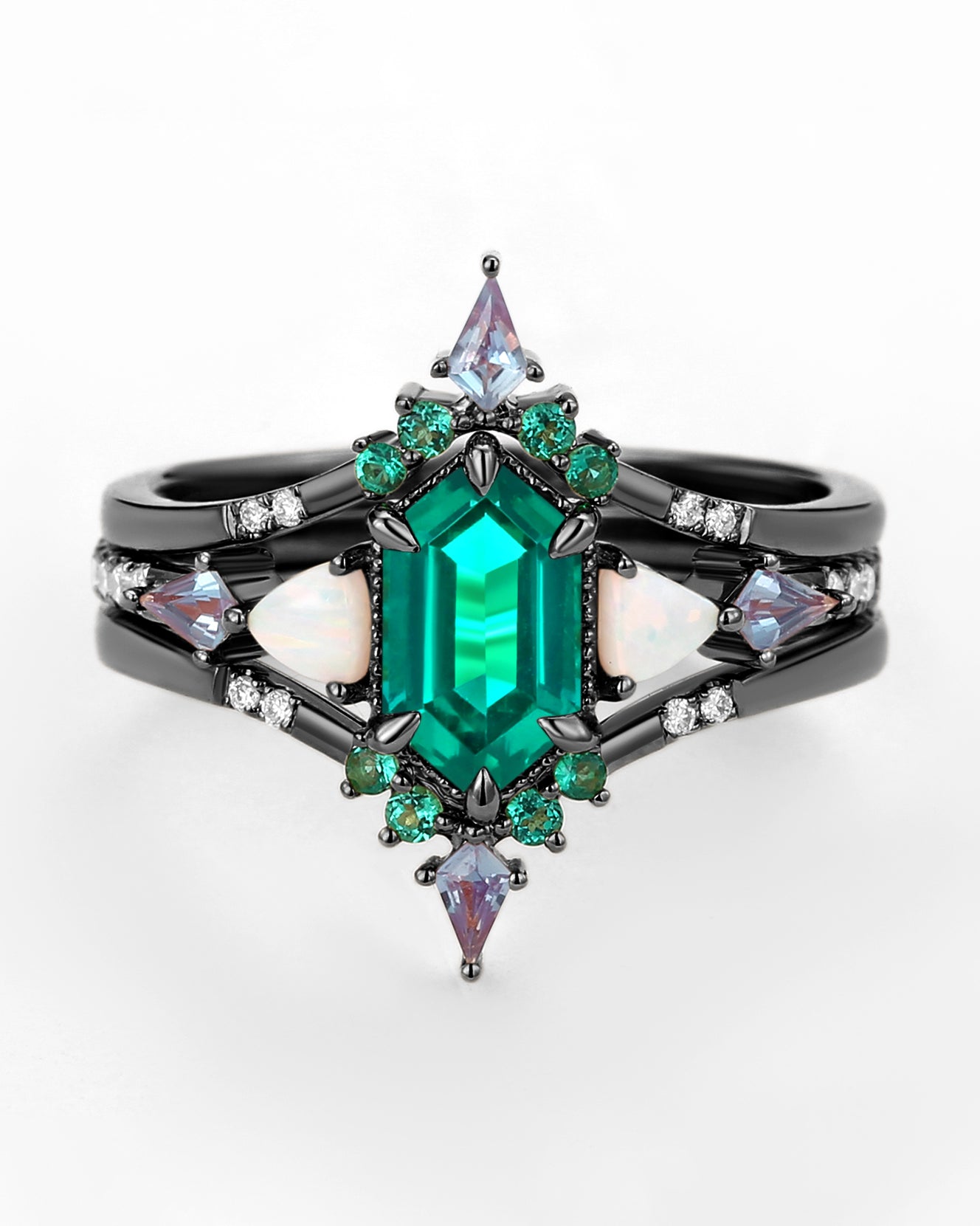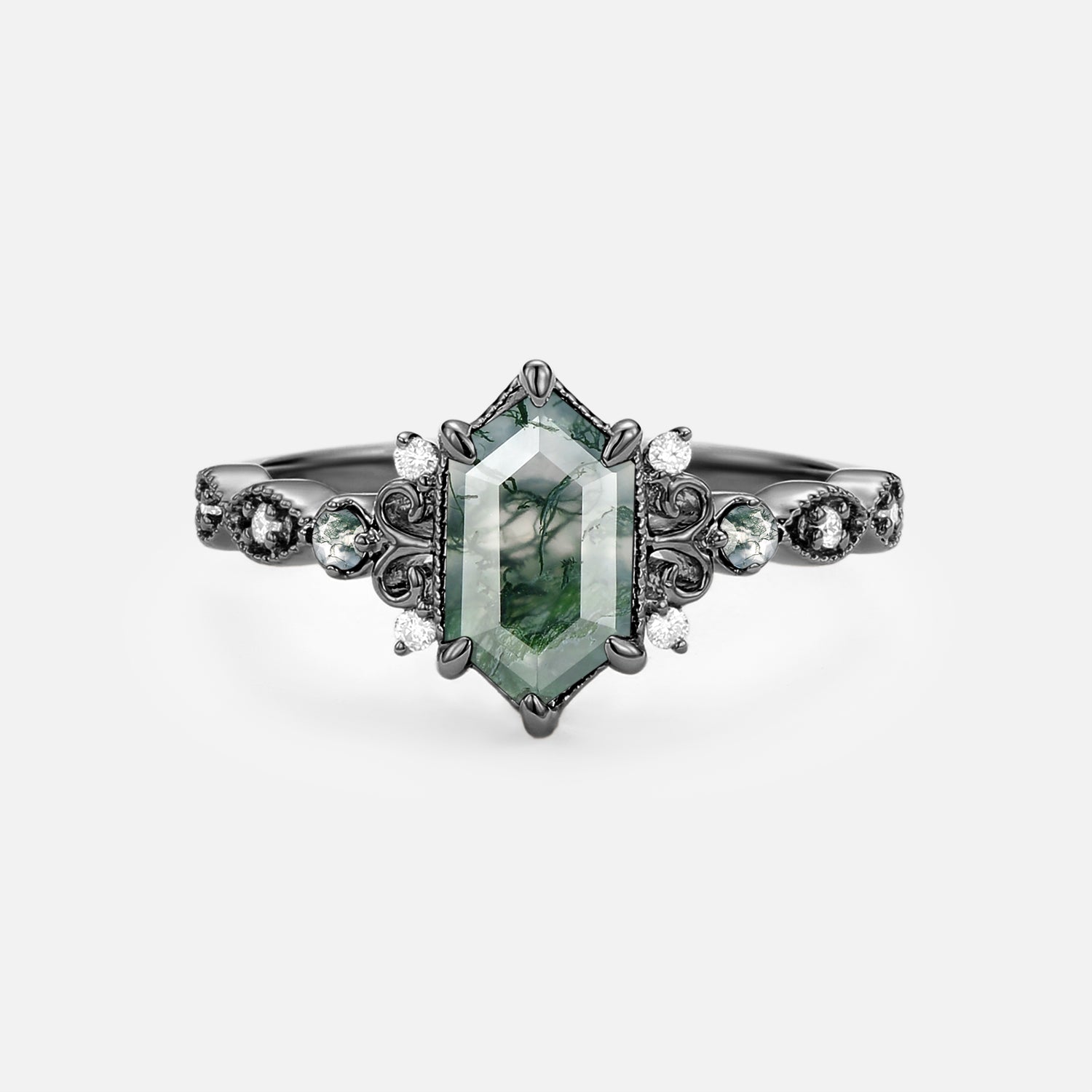 The One-of-a-Kind unique engagement rings features Kite shaped and hexagon stones. The Moss Agate engagement rings are one of these unique engagement rings for women, each with different textures, and you can find unique affordable engagement rings here in felicegals . Break the traditional matching rules and find a natural stone that represents your unique love, commemorating your one-of-a-kind love story.