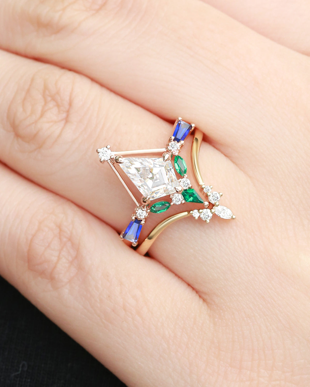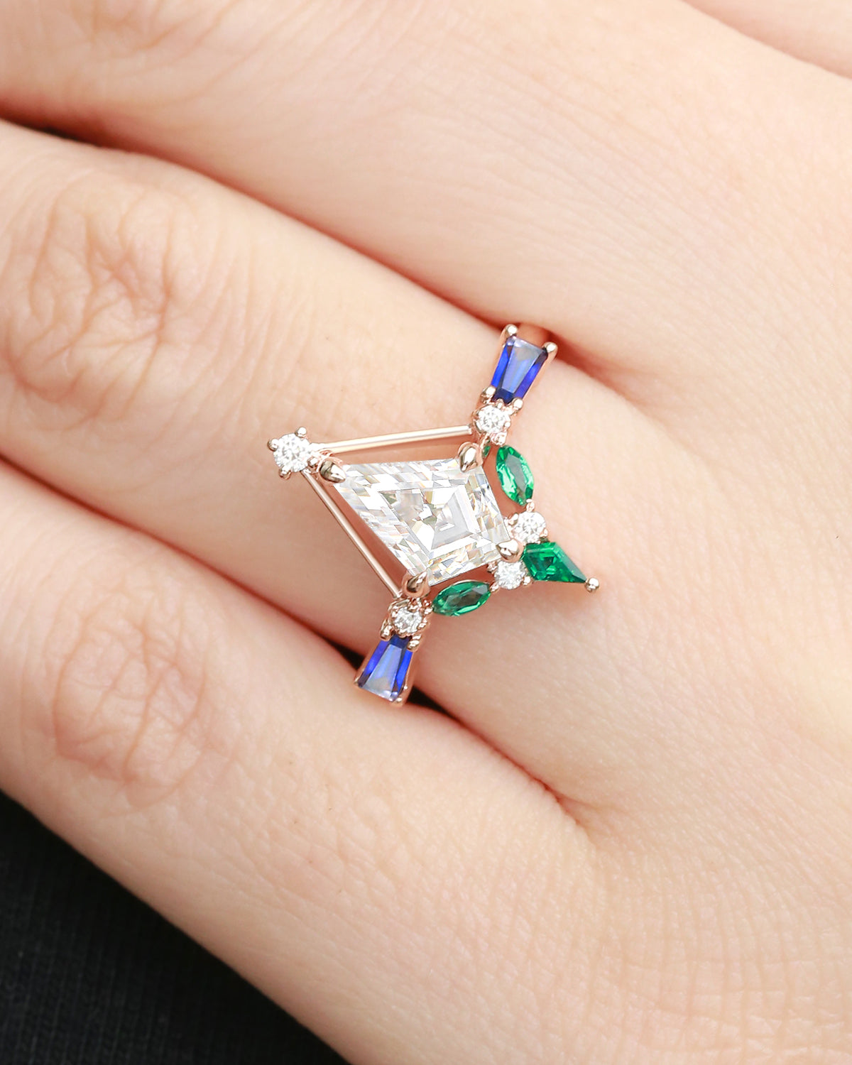 The One-of-a-Kind unique engagement rings features Kite shaped and hexagon stones. The Moss Agate engagement rings are one of these unique engagement rings for women, each with different textures, and you can find unique affordable engagement rings here in felicegals . Break the traditional matching rules and find a natural stone that represents your unique love, commemorating your one-of-a-kind love story.