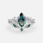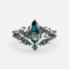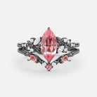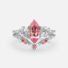 Marquise Lab Pink Sapphire Leafy Engagement Ring Sets 2pcs - Peony