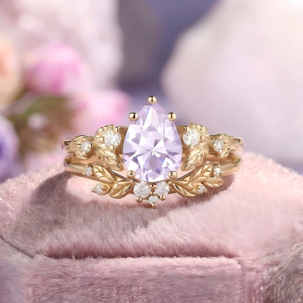 Pear Cut Lab Lavender Sapphire Engagement Ring Set - Lilia