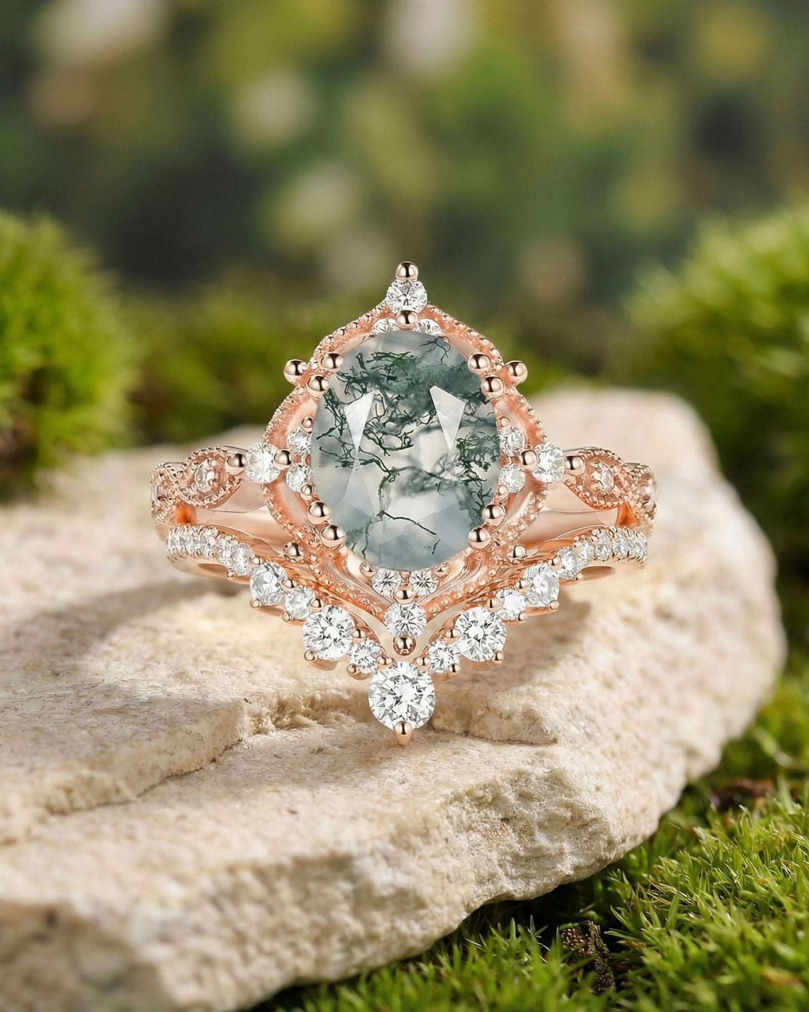 Where retro elegance dances with nature’s quiet art—our Vintage Inspired Moss Agate Rings redefine timeless charm, putting handpicked moss agate at the center of designs that nod to decades of romantic style.