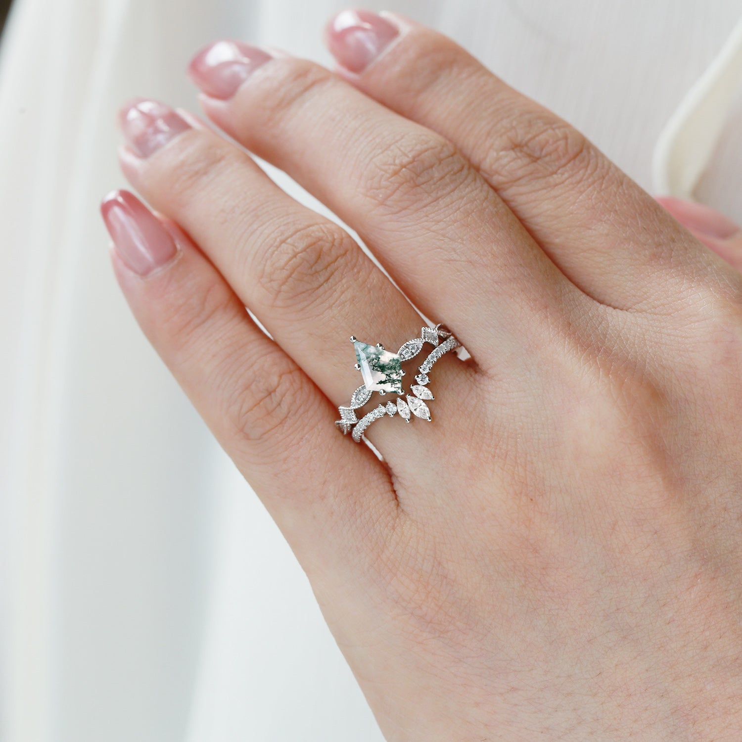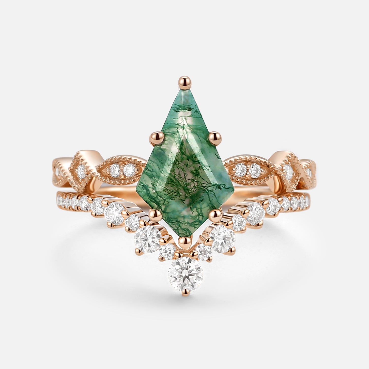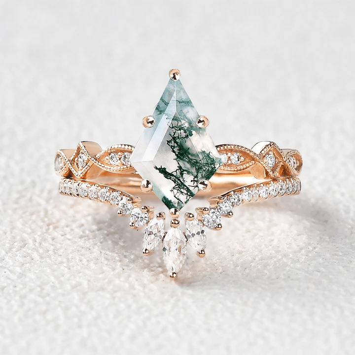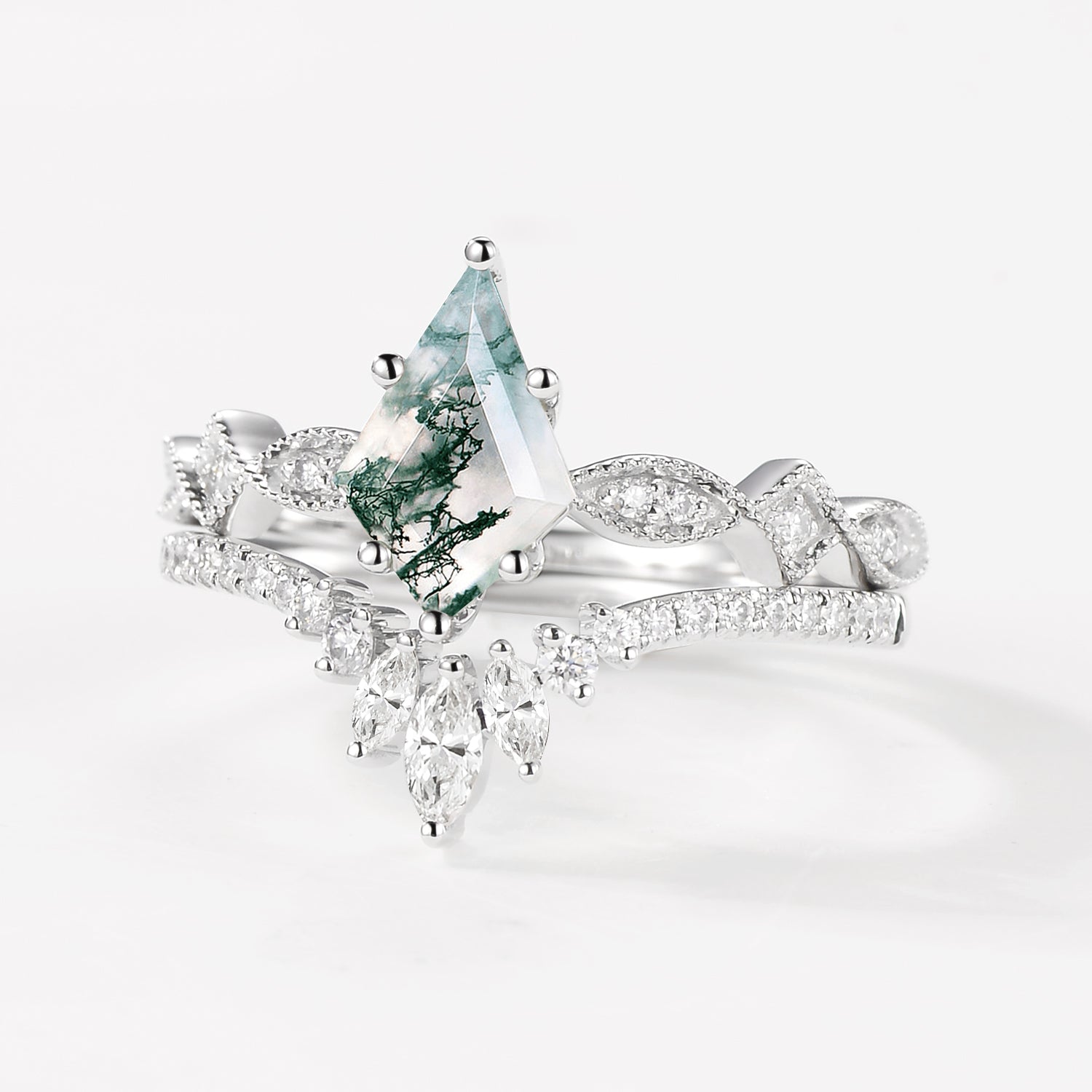 Unique Kite Moss Agate Engagement Ring Sets 2pcs