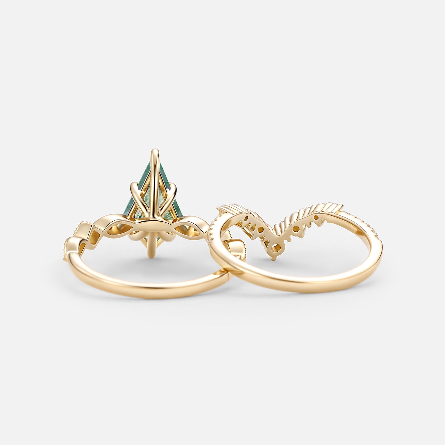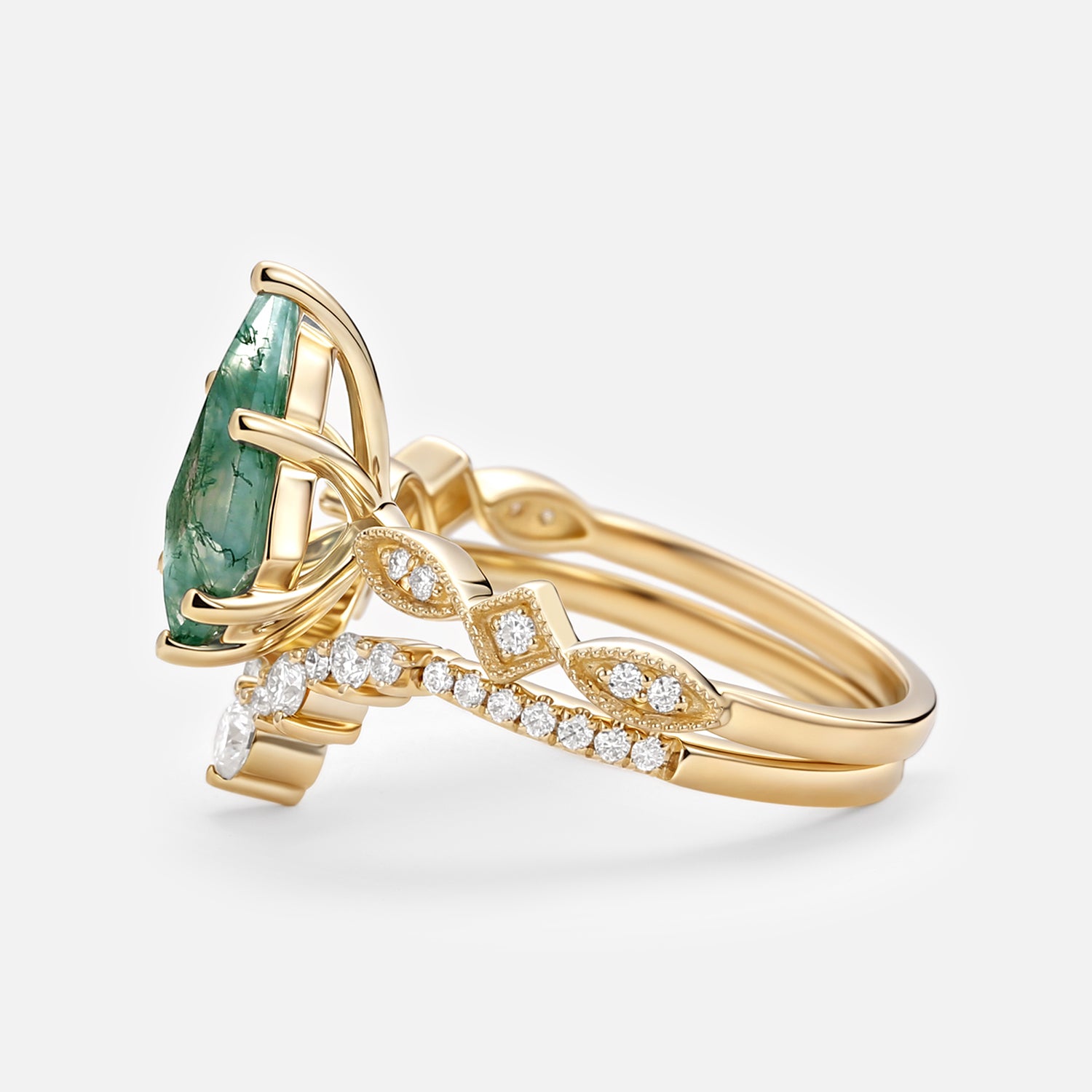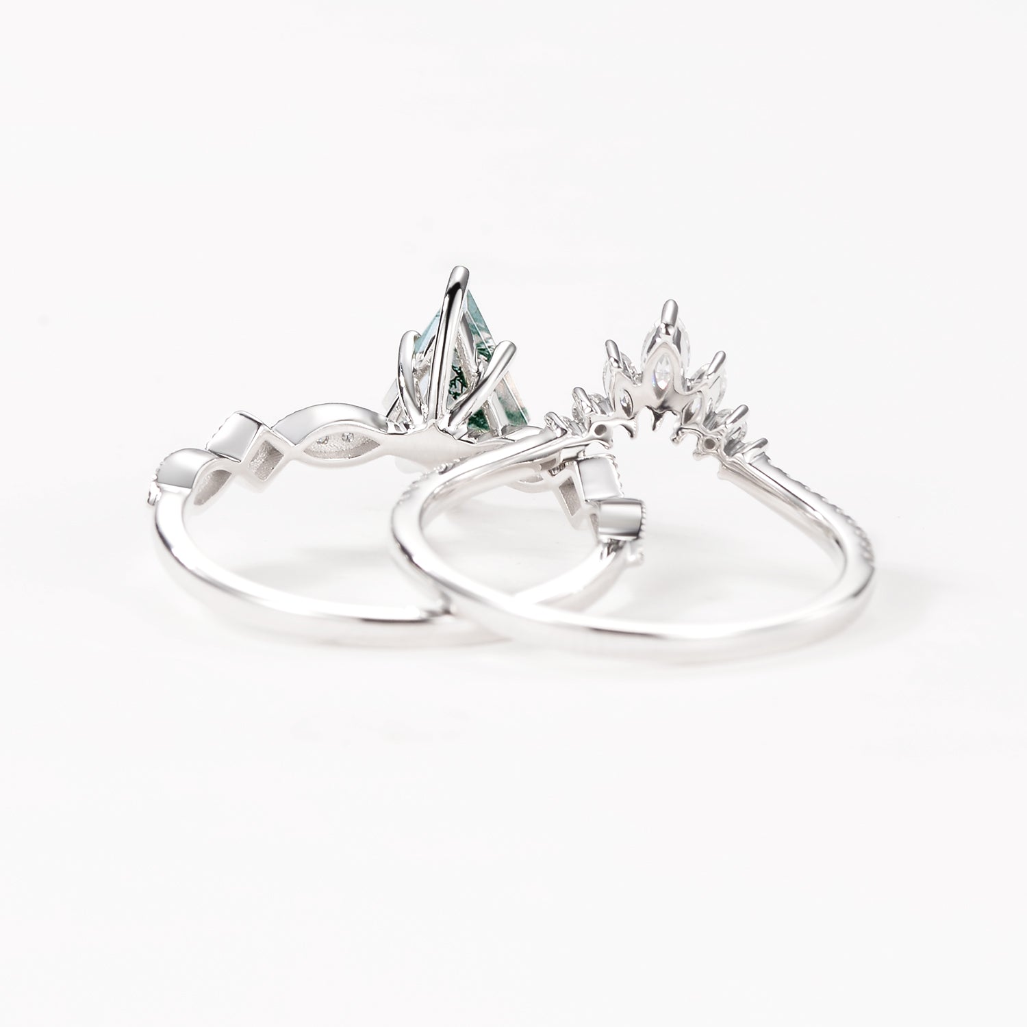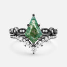 Unique Kite Moss Agate Engagement Ring Sets 2pcs