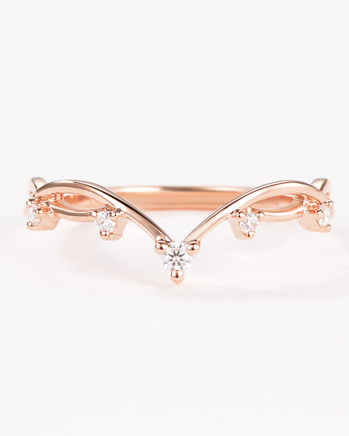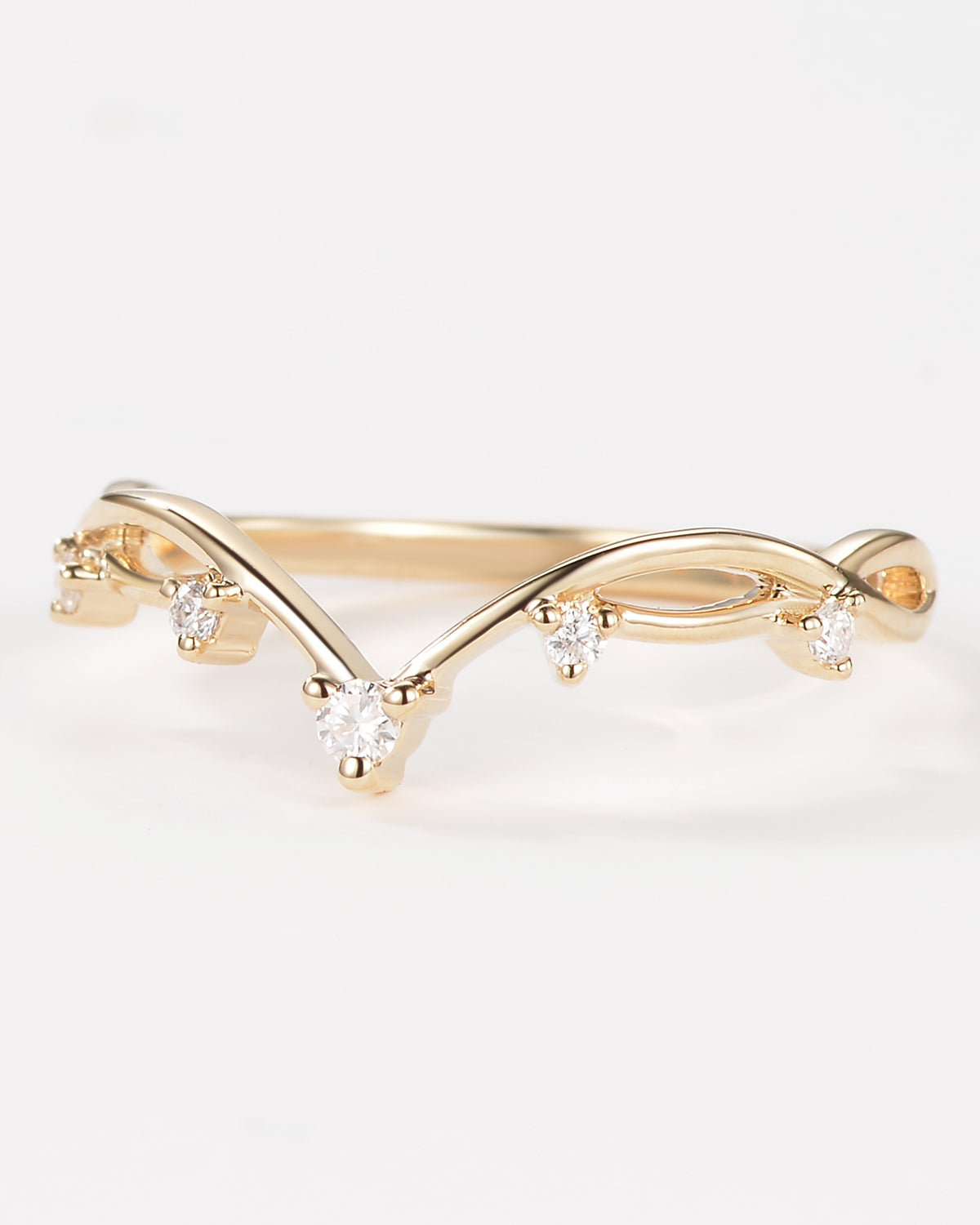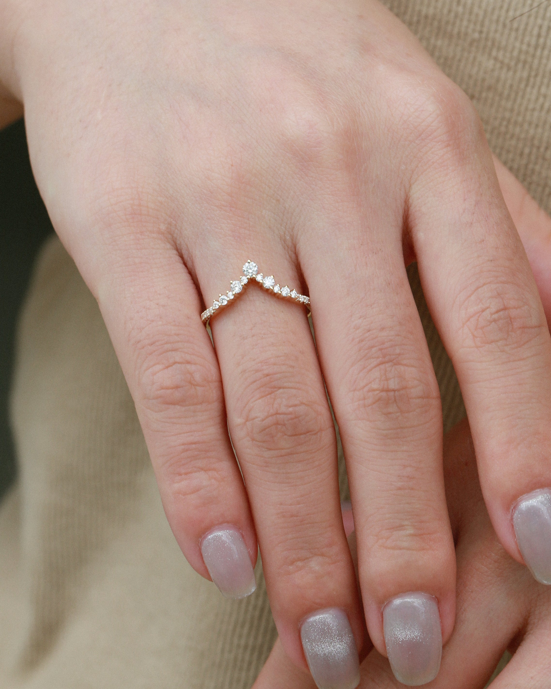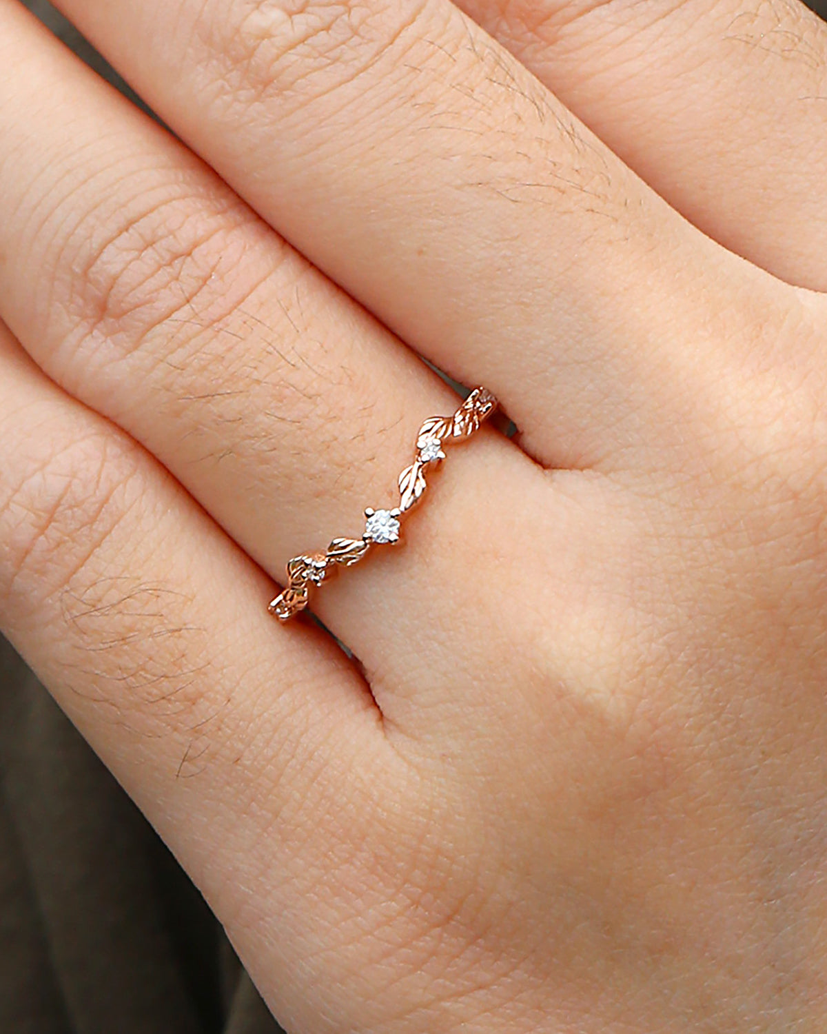 Our wedding bands are available in curved bands and straight bands. You can wear bands alone for a simple and elegant look, or you can match them with an engagement ring, not just a 2-piece set, a 3-piece set, but also a 5-piece set, we will create a perfectly coordinated set for you. No matter what ring you choose we will help you fit your engagement ring. Our wedding rings are made from the solid gold to ensure they will last a lifetime.