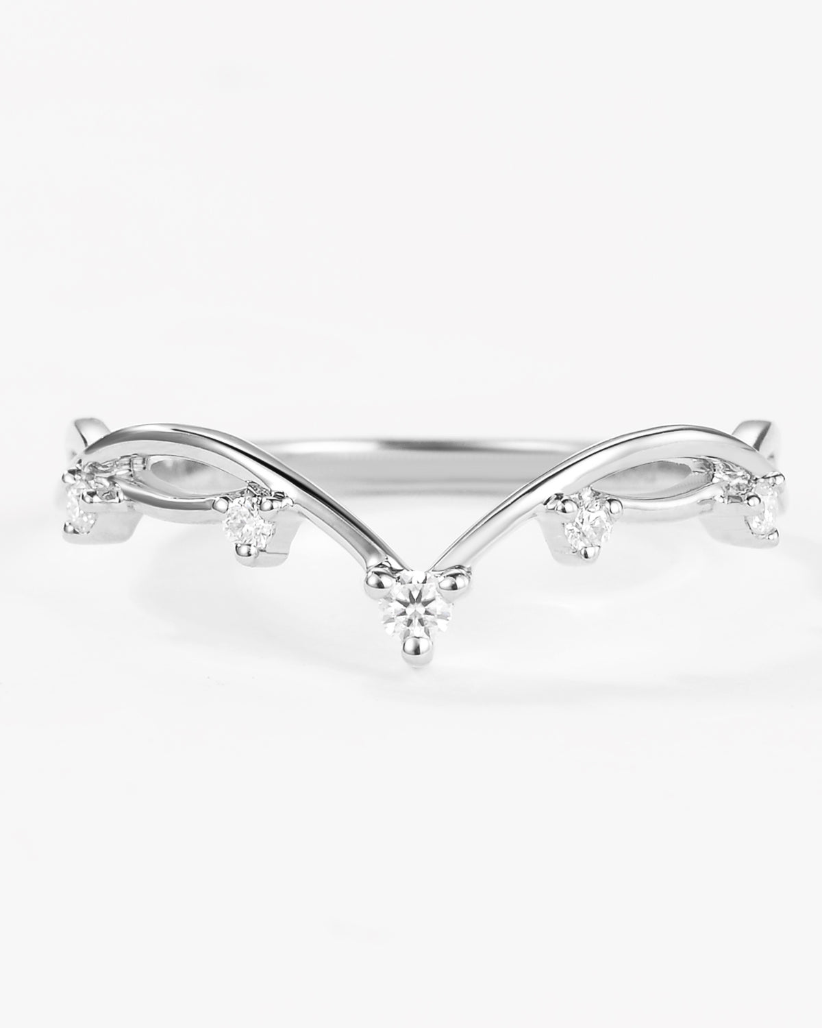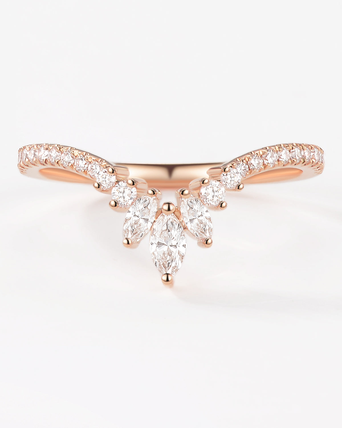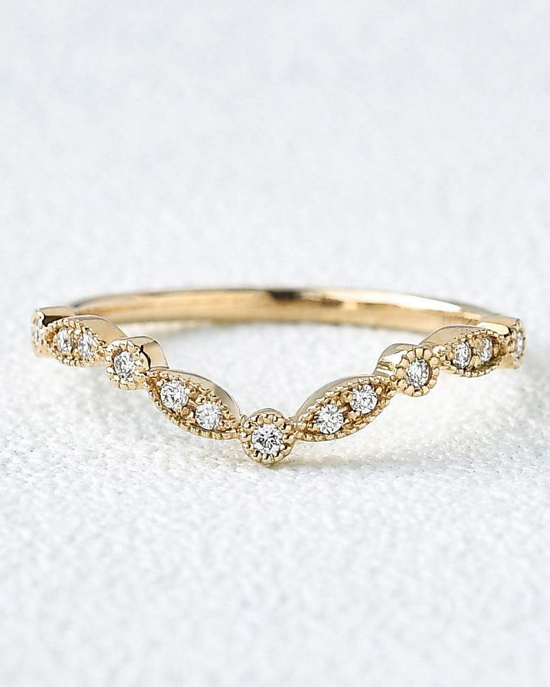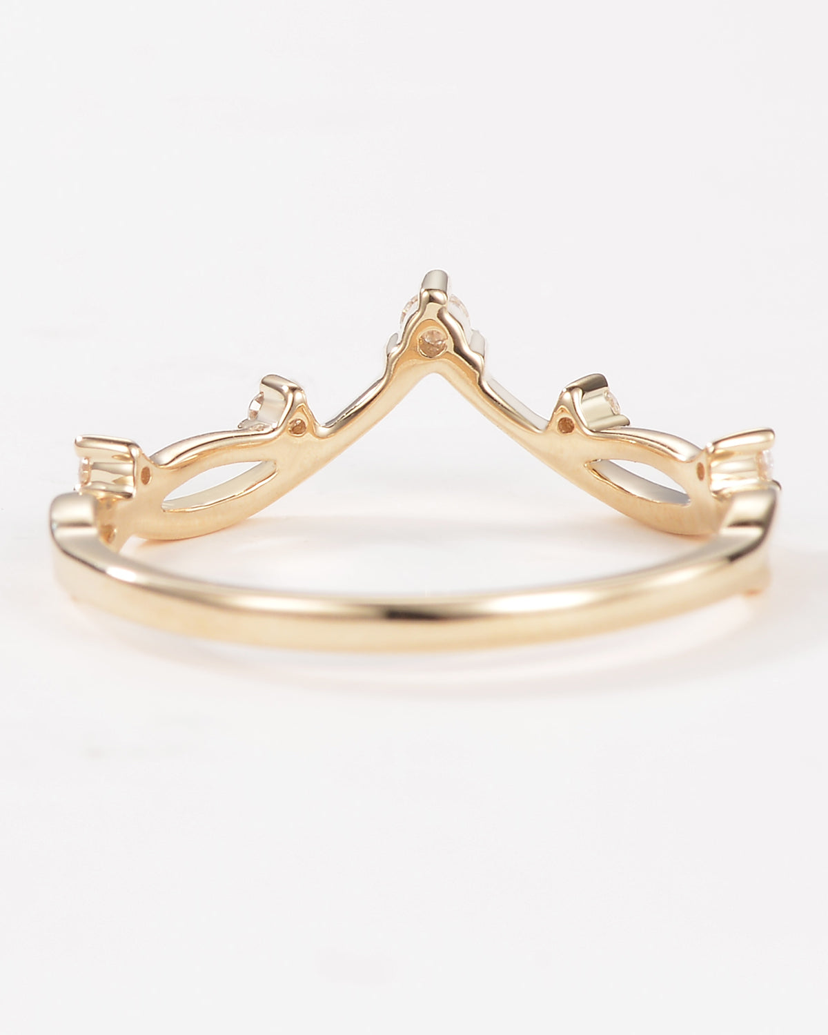 Our wedding bands are available in curved bands and straight bands. You can wear bands alone for a simple and elegant look, or you can match them with an engagement ring, not just a 2-piece set, a 3-piece set, but also a 5-piece set, we will create a perfectly coordinated set for you. No matter what ring you choose we will help you fit your engagement ring. Our wedding rings are made from the solid gold to ensure they will last a lifetime.