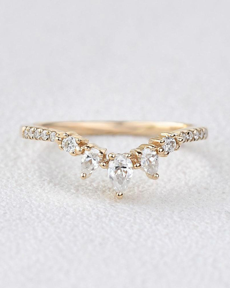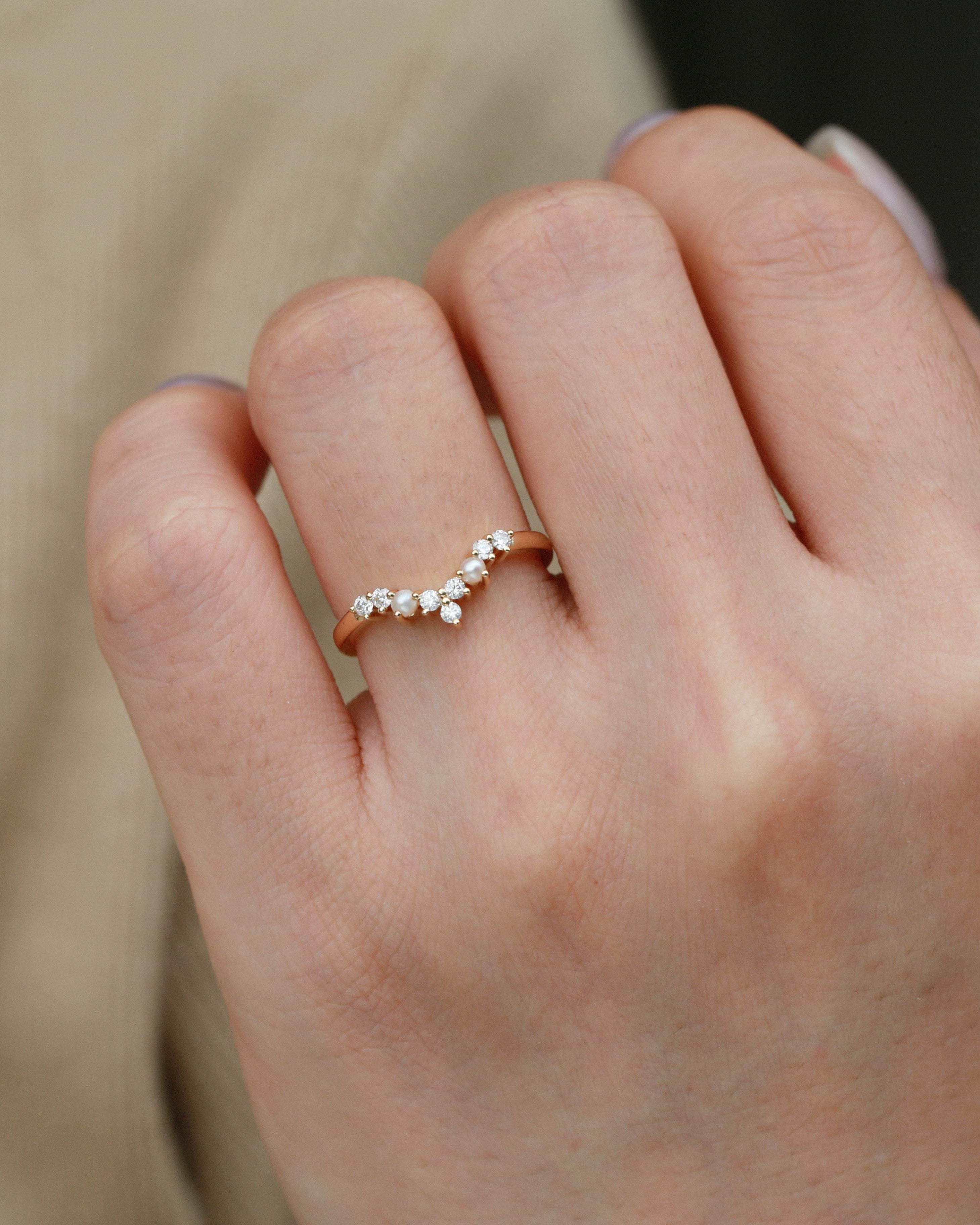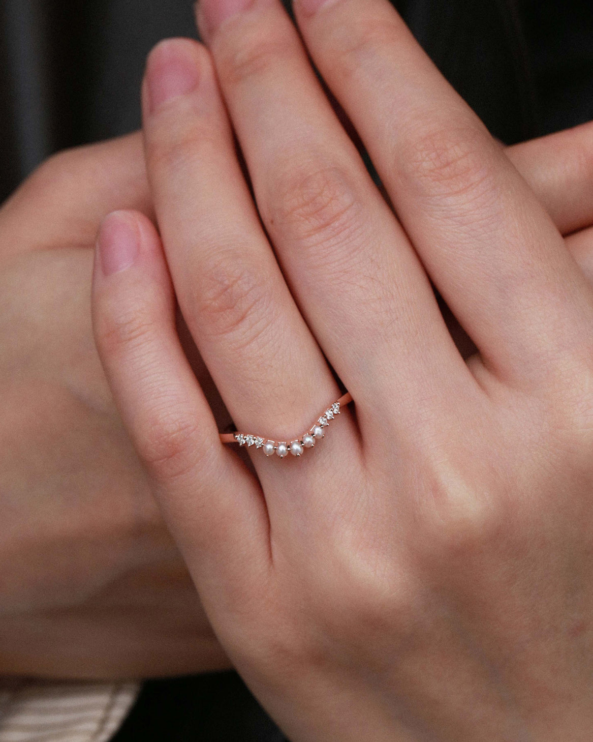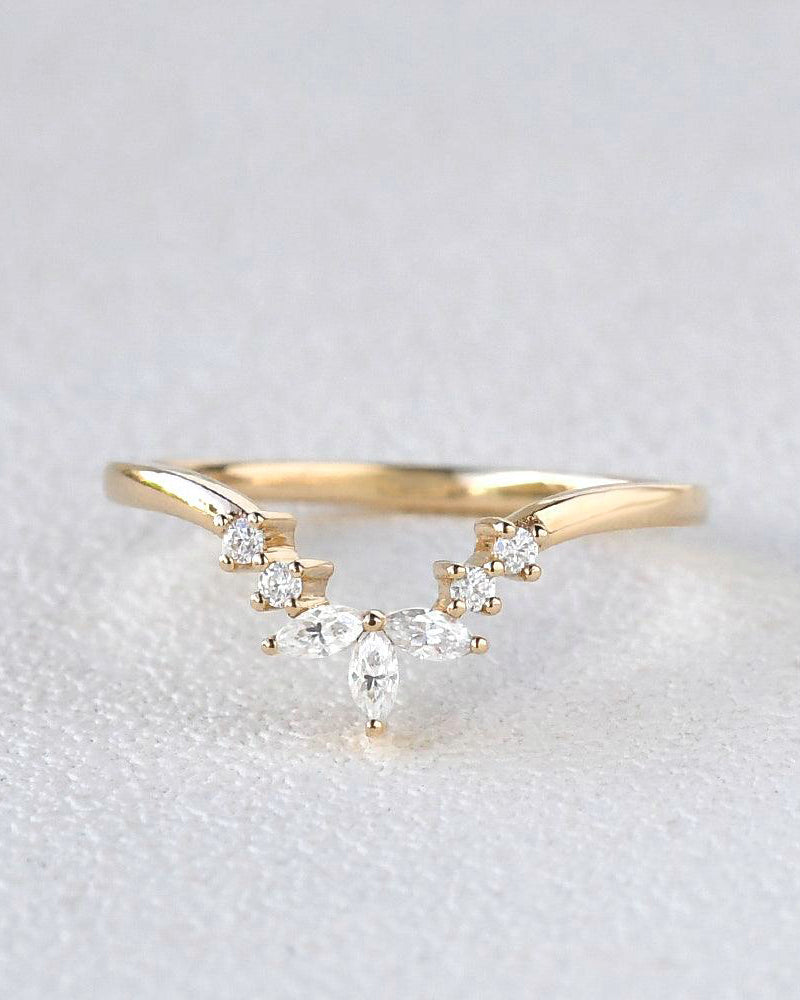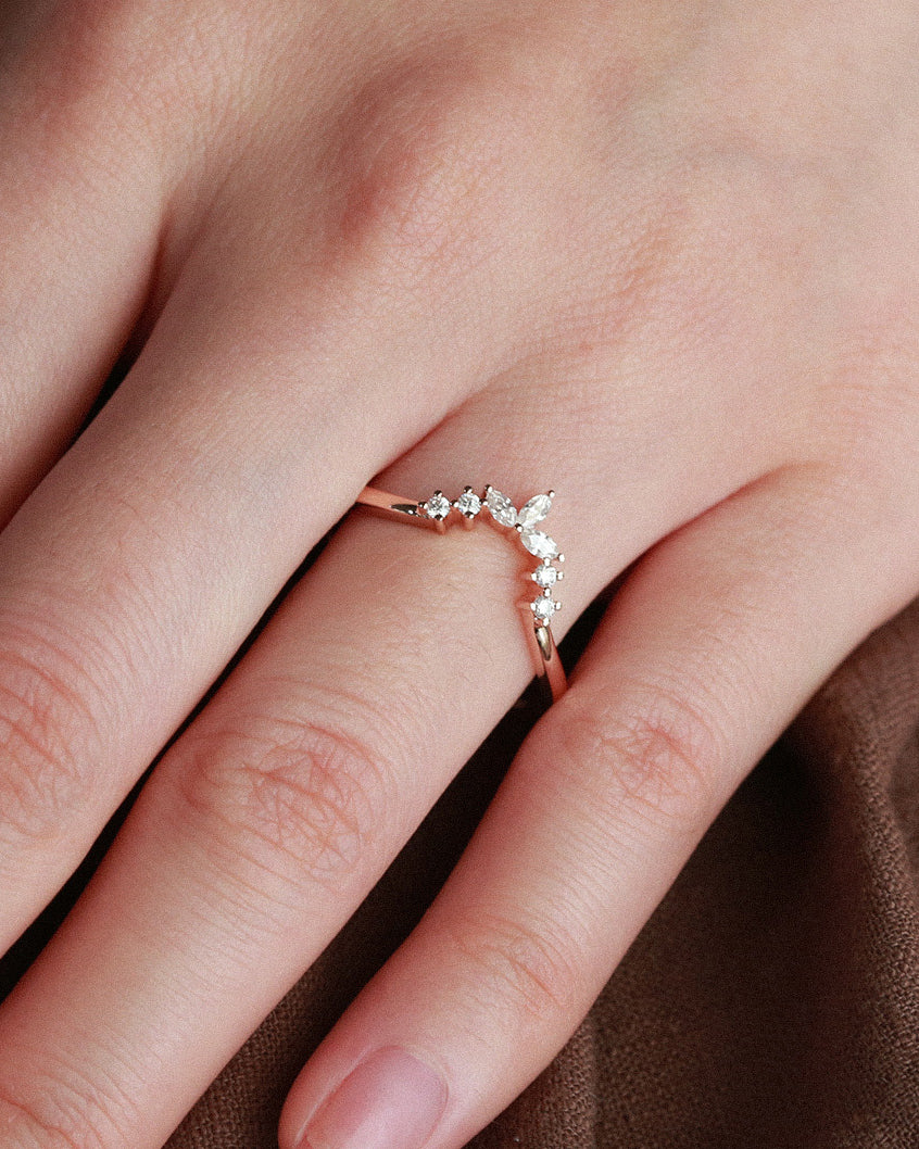 Our wedding bands are available in curved bands and straight bands. You can wear bands alone for a simple and elegant look, or you can match them with an engagement ring, not just a 2-piece set, a 3-piece set, but also a 5-piece set, we will create a perfectly coordinated set for you. No matter what ring you choose we will help you fit your engagement ring. Our wedding rings are made from the solid gold to ensure they will last a lifetime.