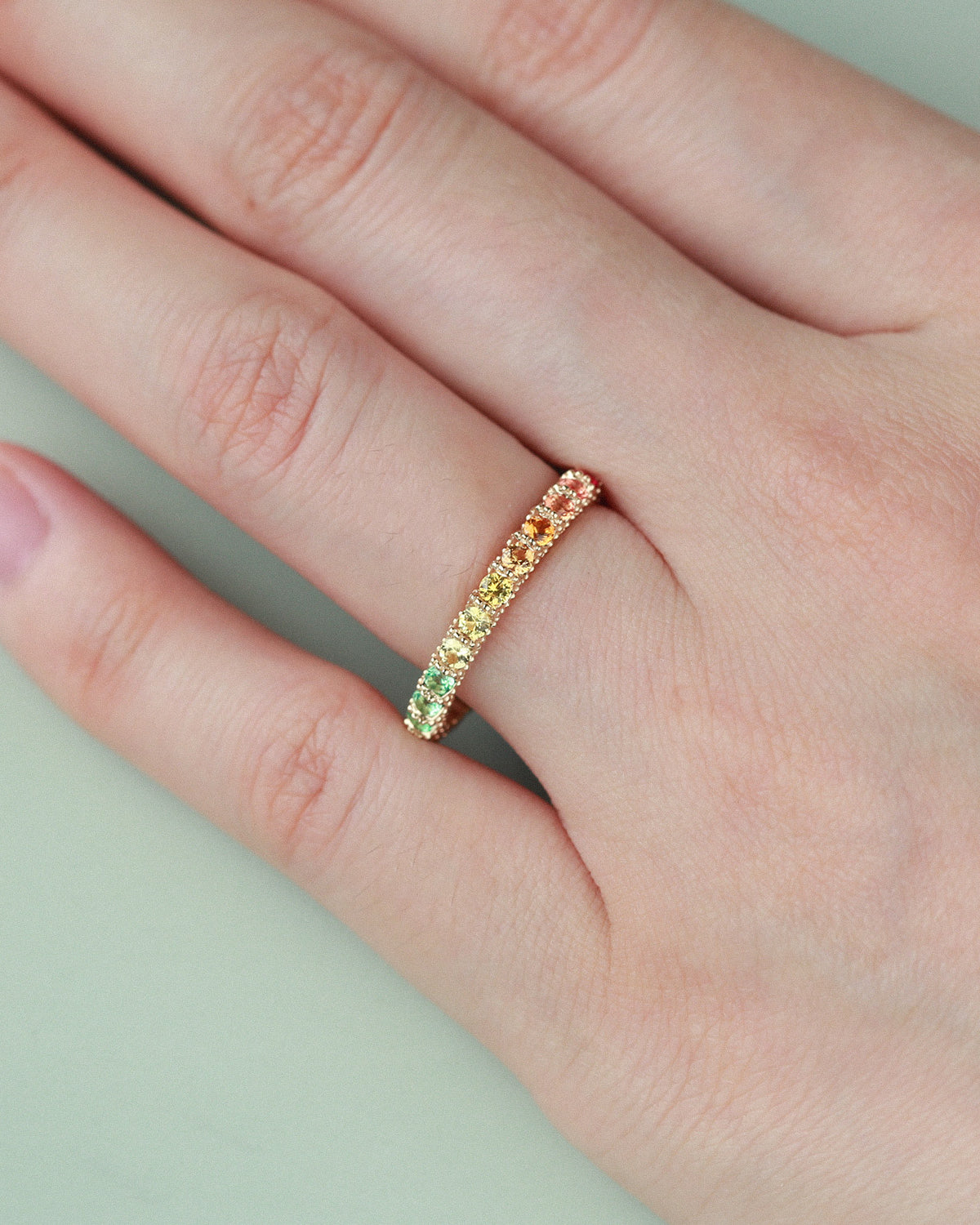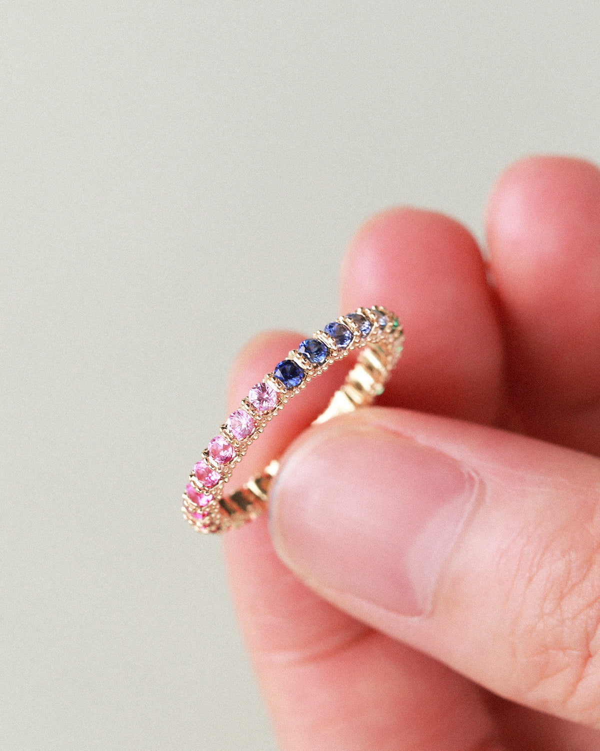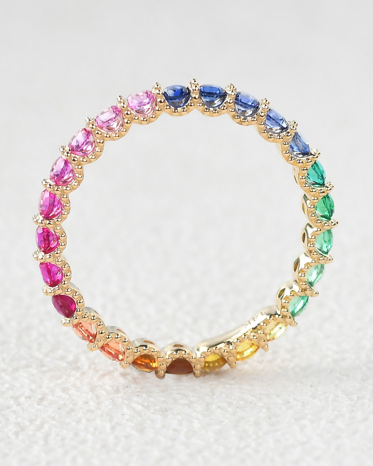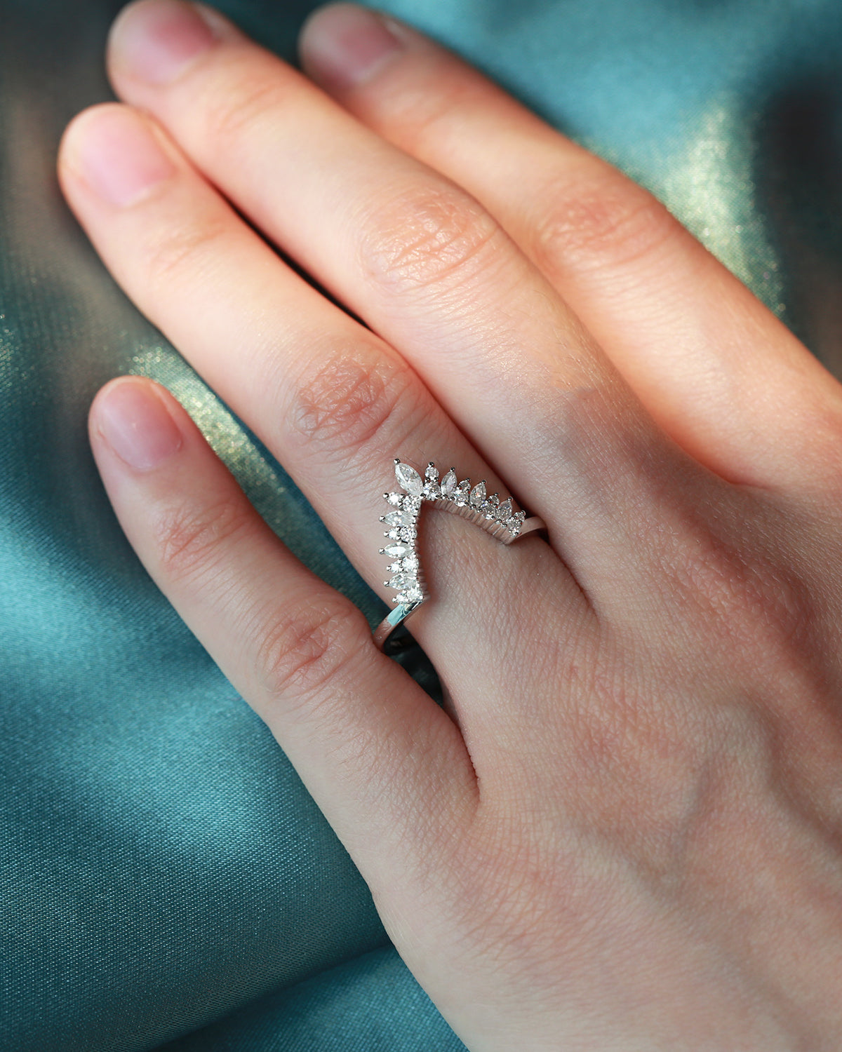 Our wedding bands are available in curved bands and straight bands. You can wear bands alone for a simple and elegant look, or you can match them with an engagement ring, not just a 2-piece set, a 3-piece set, but also a 5-piece set, we will create a perfectly coordinated set for you. No matter what ring you choose we will help you fit your engagement ring. Our wedding rings are made from the solid gold to ensure they will last a lifetime.