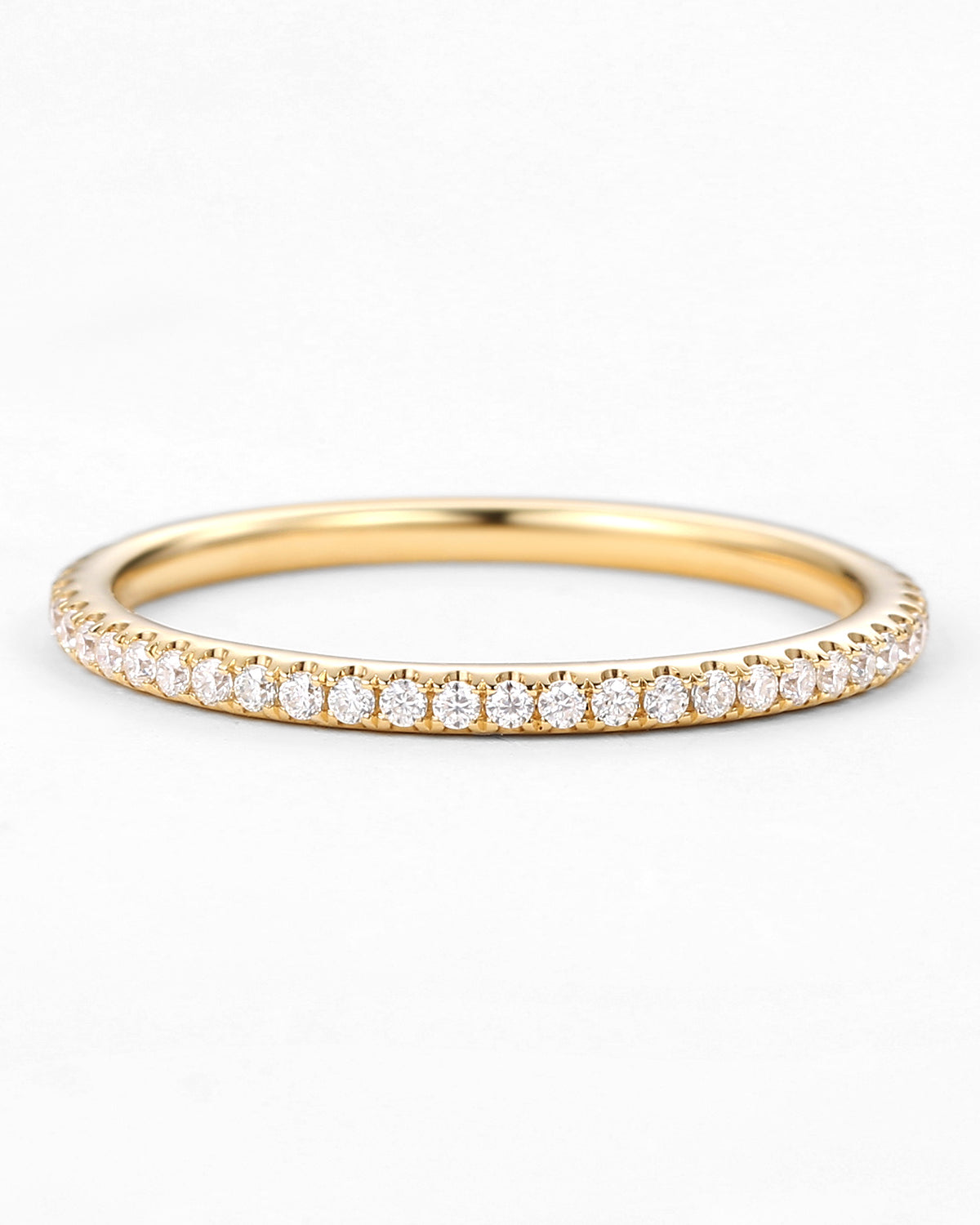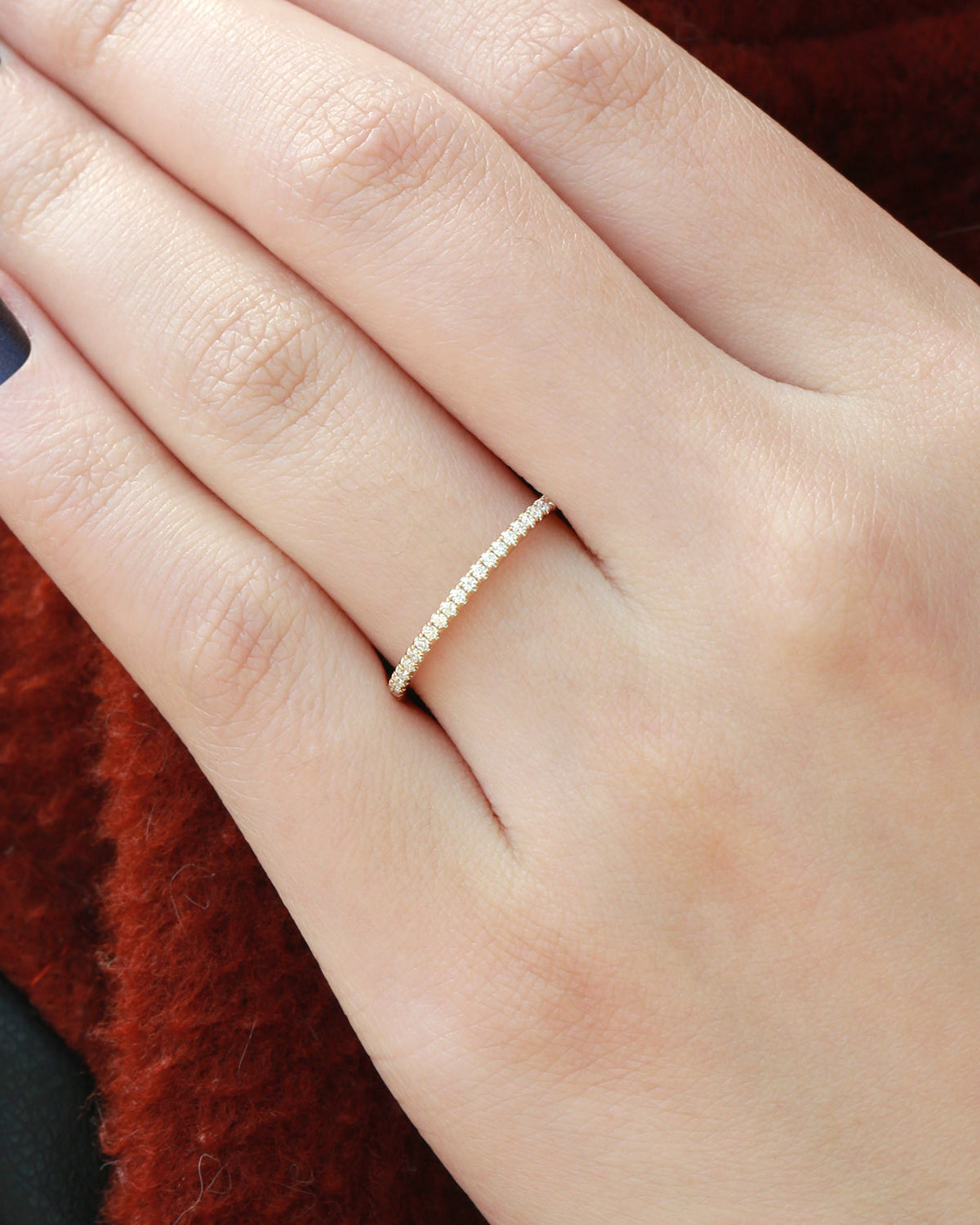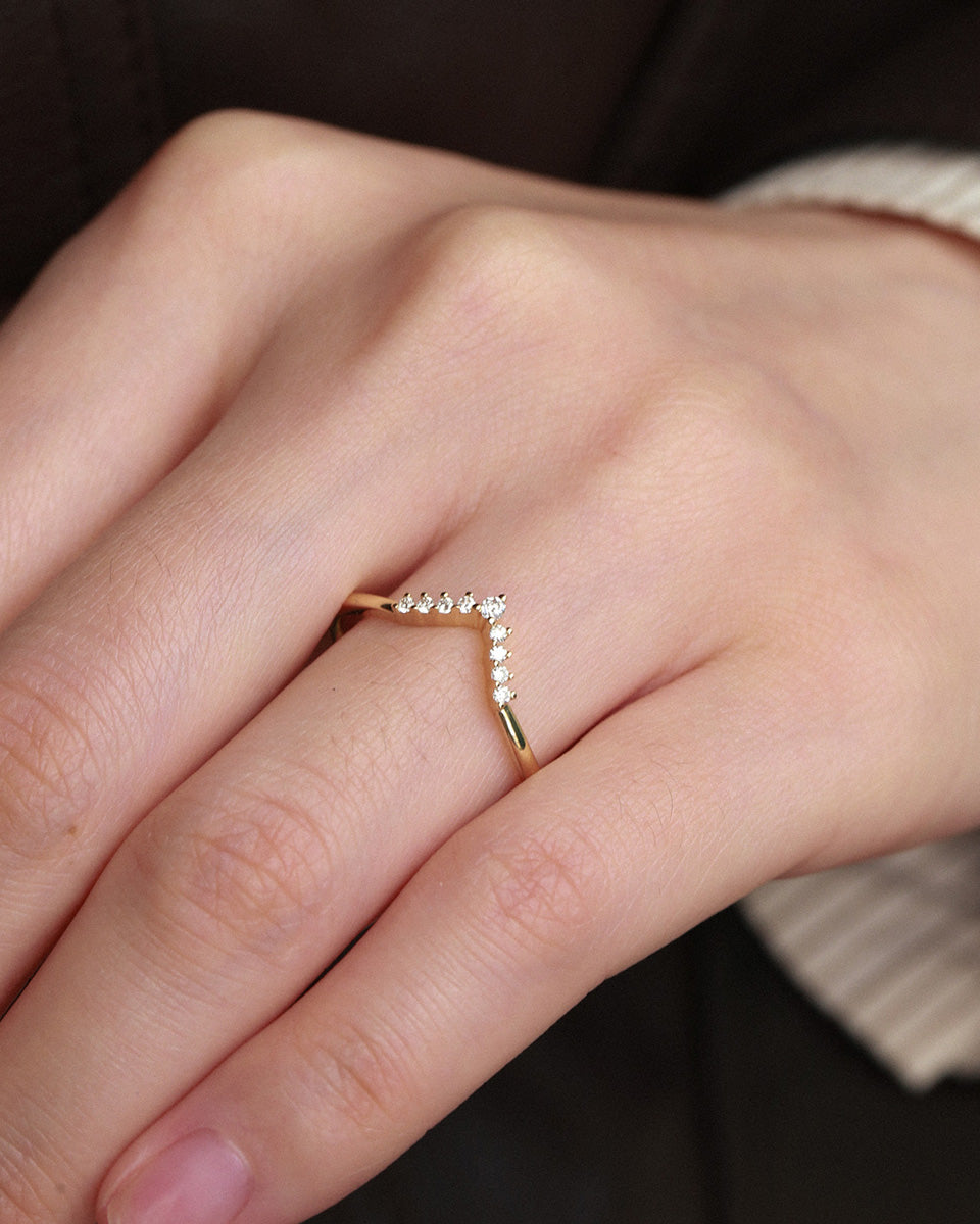 Our wedding bands are available in curved bands and straight bands. You can wear bands alone for a simple and elegant look, or you can match them with an engagement ring, not just a 2-piece set, a 3-piece set, but also a 5-piece set, we will create a perfectly coordinated set for you. No matter what ring you choose we will help you fit your engagement ring. Our wedding rings are made from the solid gold to ensure they will last a lifetime.