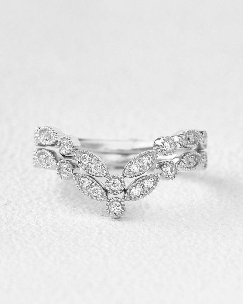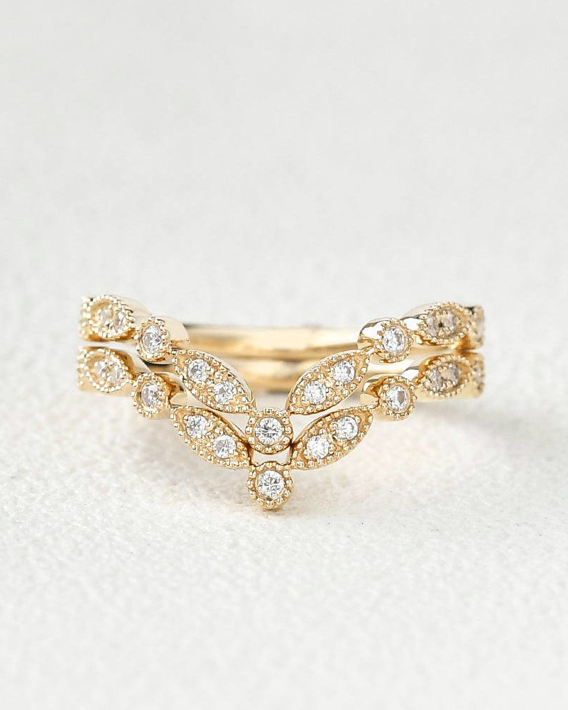 Our wedding bands are available in curved bands and straight bands. You can wear bands alone for a simple and elegant look, or you can match them with an engagement ring, not just a 2-piece set, a 3-piece set, but also a 5-piece set, we will create a perfectly coordinated set for you. No matter what ring you choose we will help you fit your engagement ring. Our wedding rings are made from the solid gold to ensure they will last a lifetime.